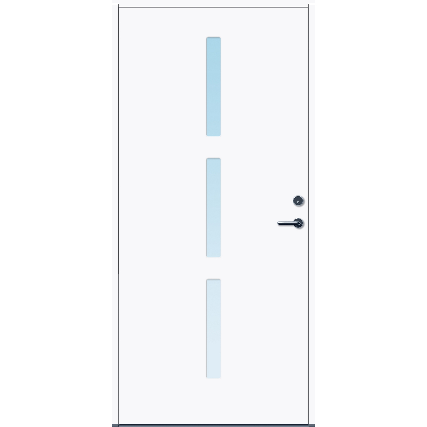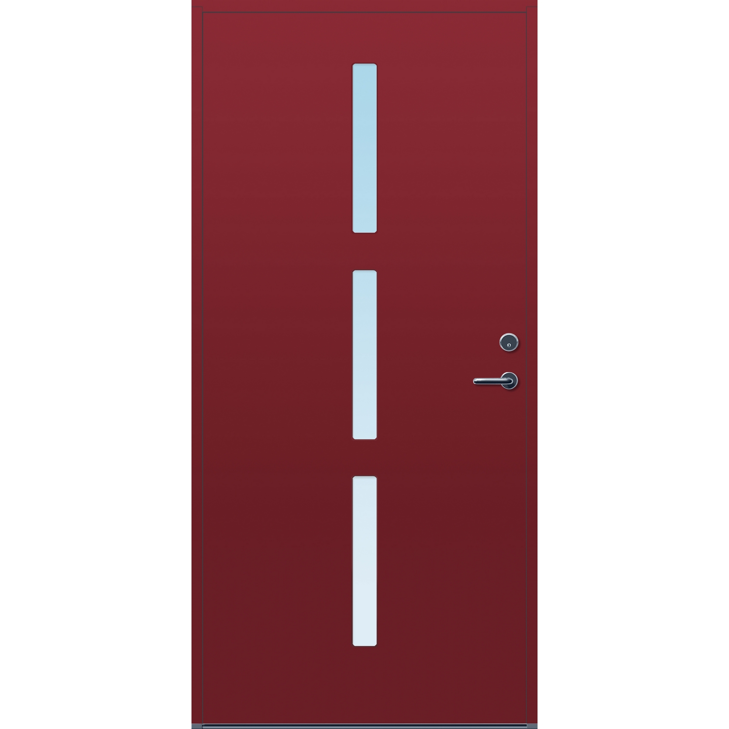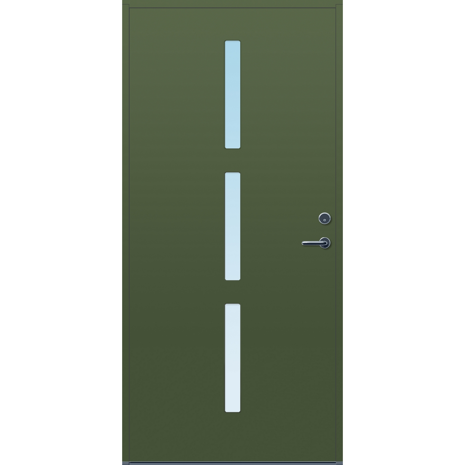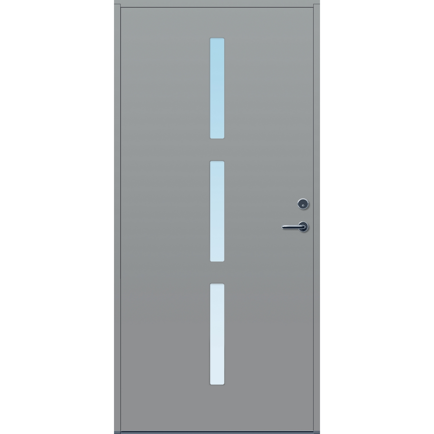 Minimalistiske ytterdører med stilrent uttrykk, uten glasslister på utsiden og med skjulte hengsler. Dørene har en bladkonstruksjon av furu ramtre med 54 mm freonfritt isolasjonsmateriale. På begge sider er det limt 0,4 millimeter aluminium og 4 millimeter HDF. Både dør og karm er grunnet med 2 strøk 2-komponent syreherdet grunning og 1 strøk vannbasert toppstrøk. Toppstrøk på andre farger enn hvit er også 2-komponent.