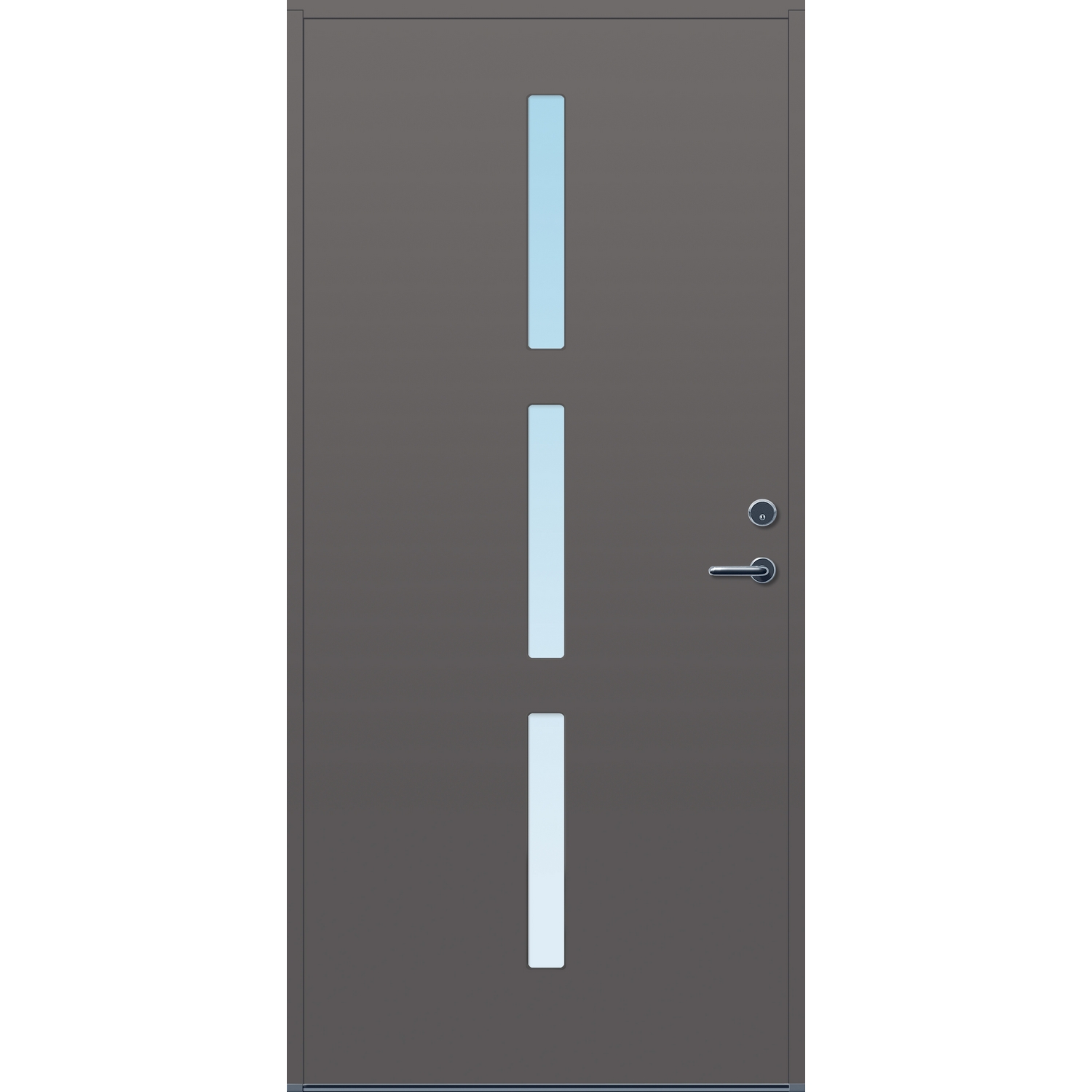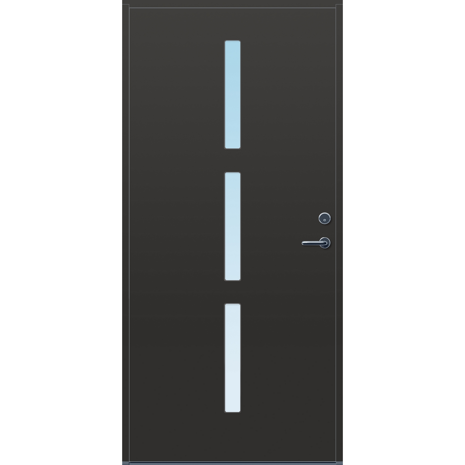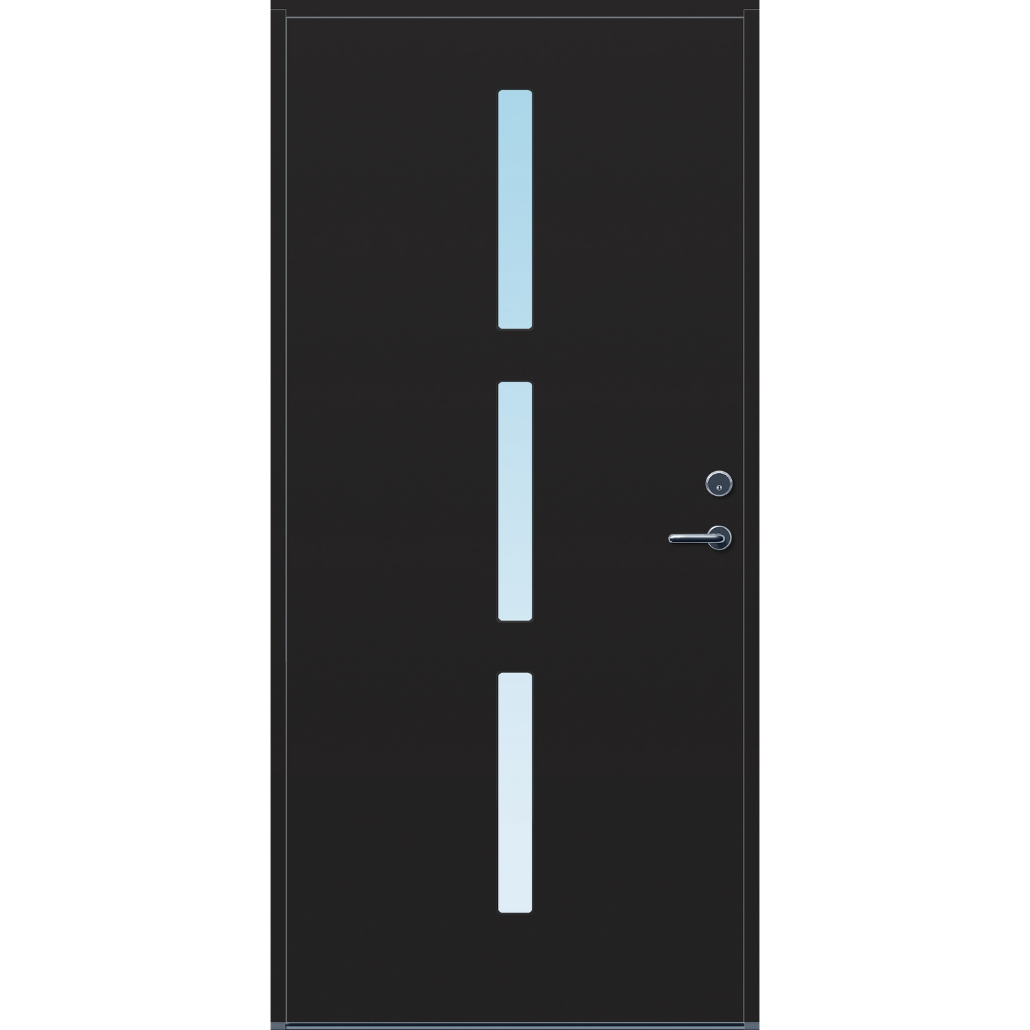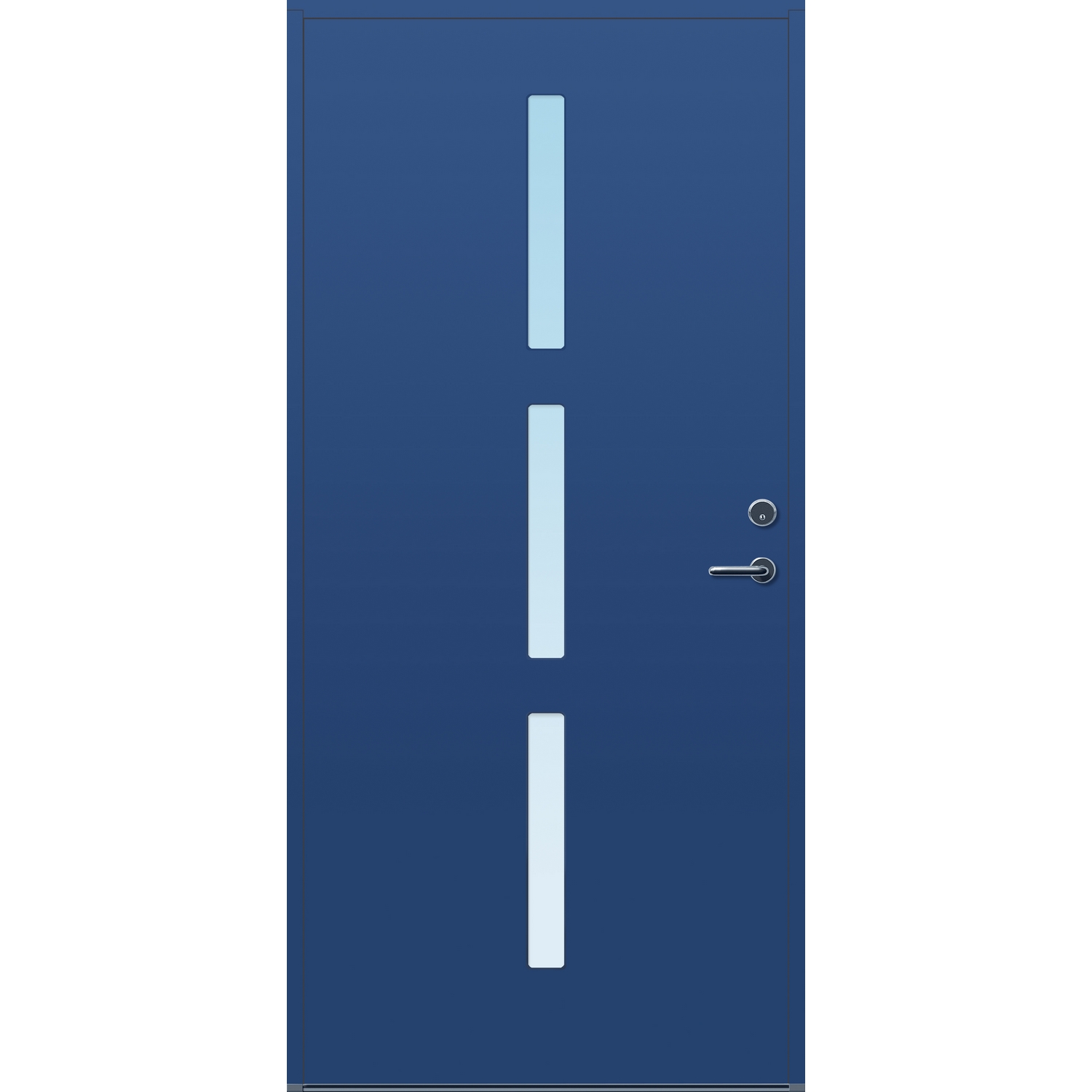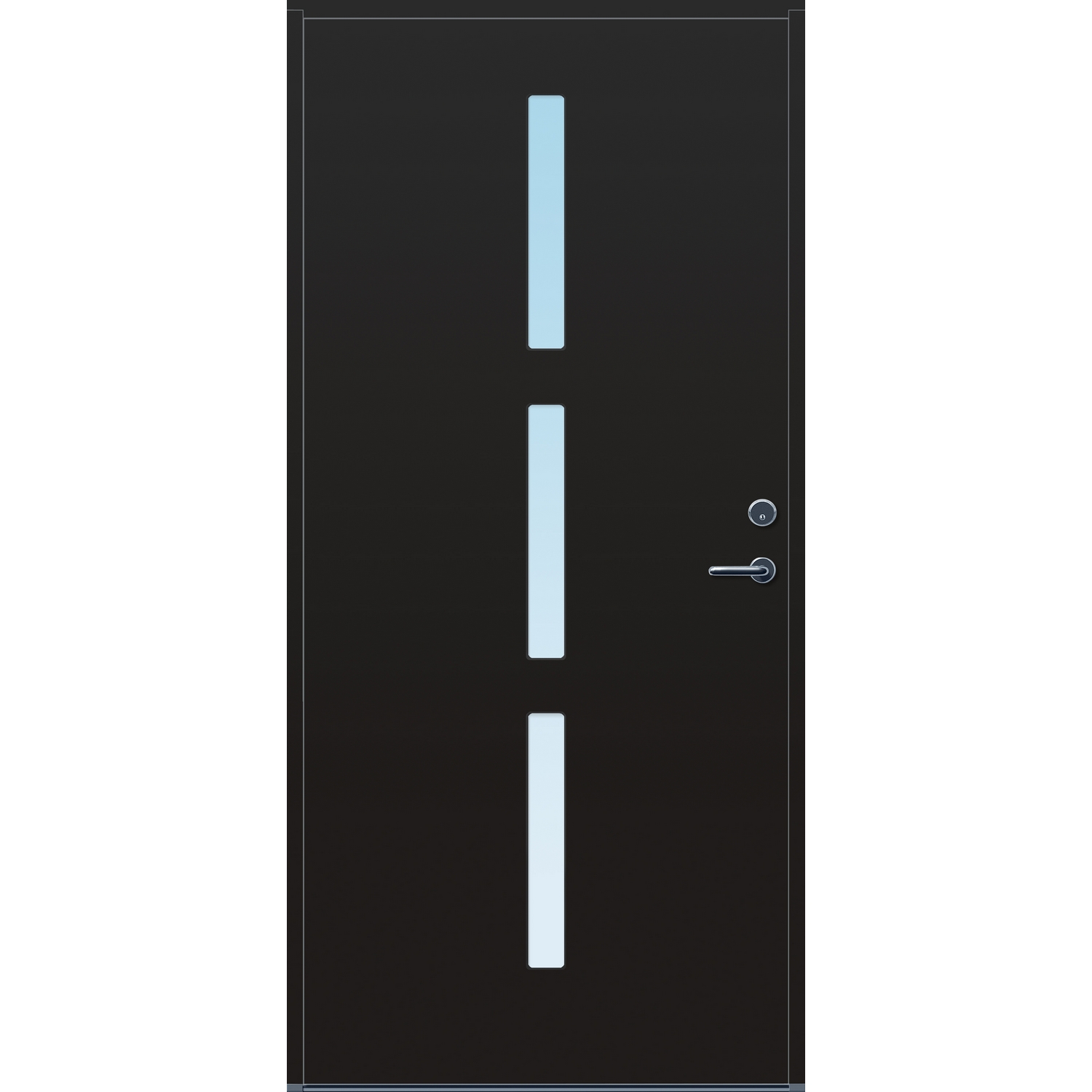 Minimalistiske ytterdører med stilrent uttrykk, uten glasslister på utsiden og med skjulte hengsler. Dørene har en bladkonstruksjon av furu ramtre med 54 mm freonfritt isolasjonsmateriale. På begge sider er det limt 0,4 millimeter aluminium og 4 millimeter HDF. Både dør og karm er grunnet med 2 strøk 2-komponent syreherdet grunning og 1 strøk vannbasert toppstrøk. Toppstrøk på andre farger enn hvit er også 2-komponent.