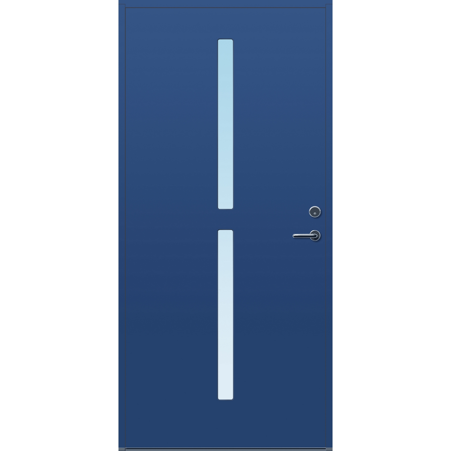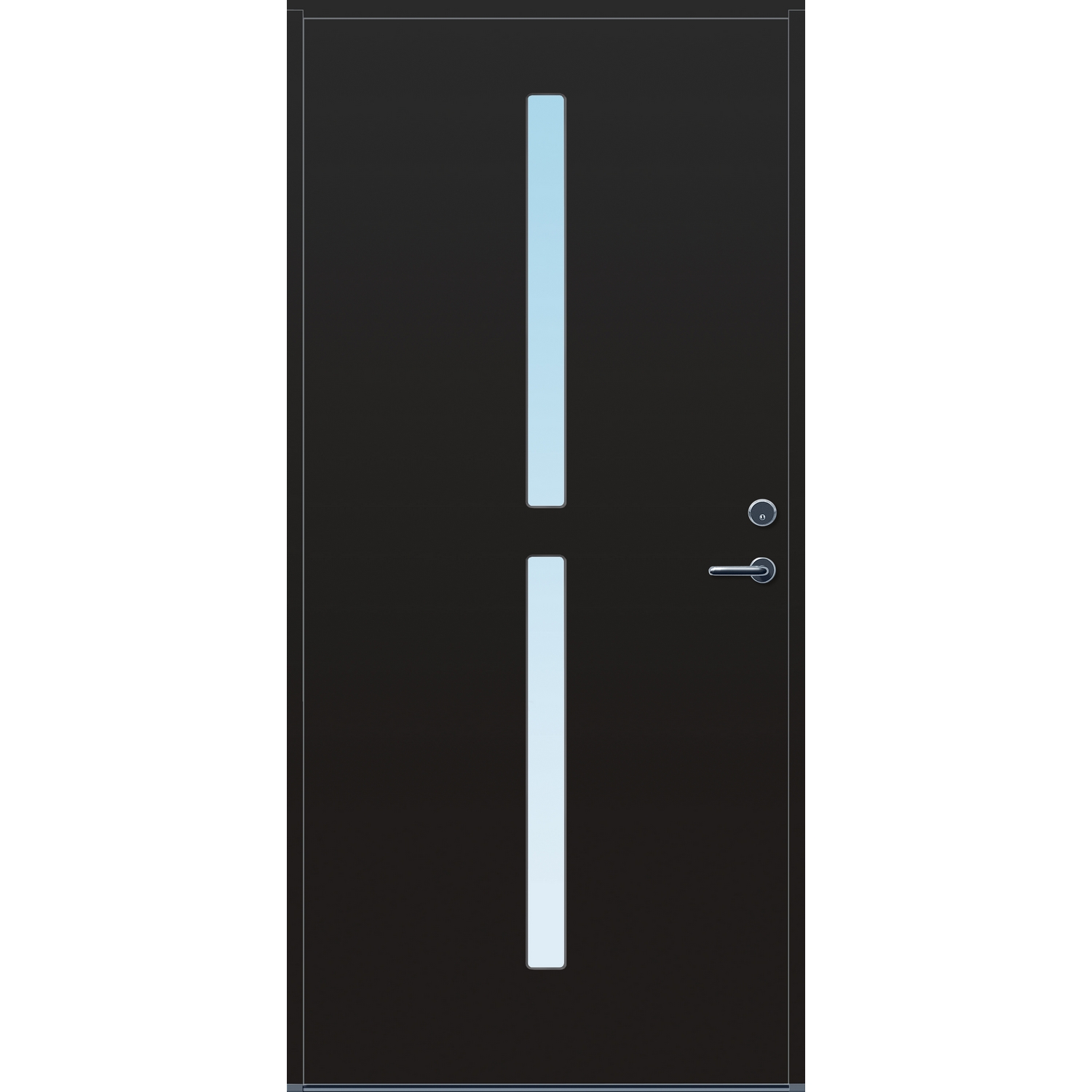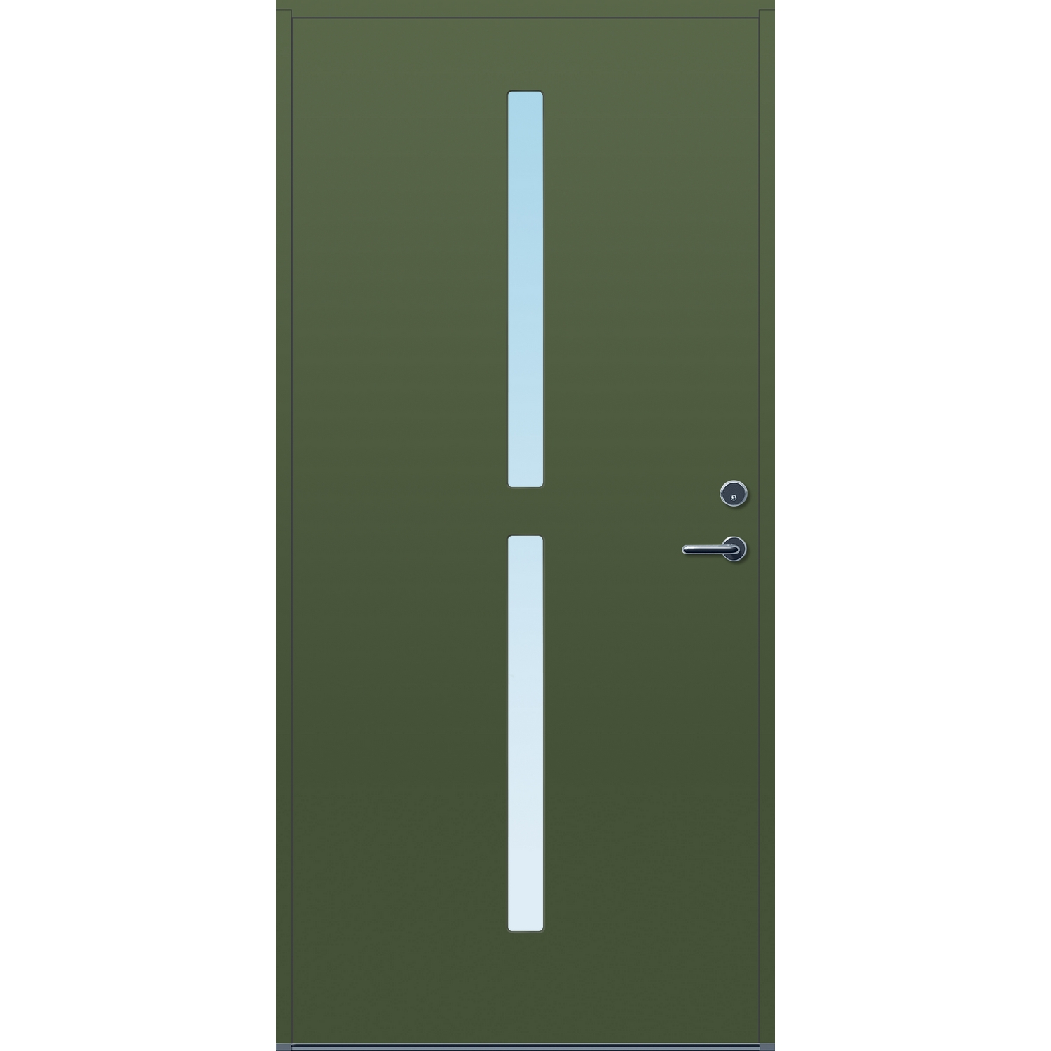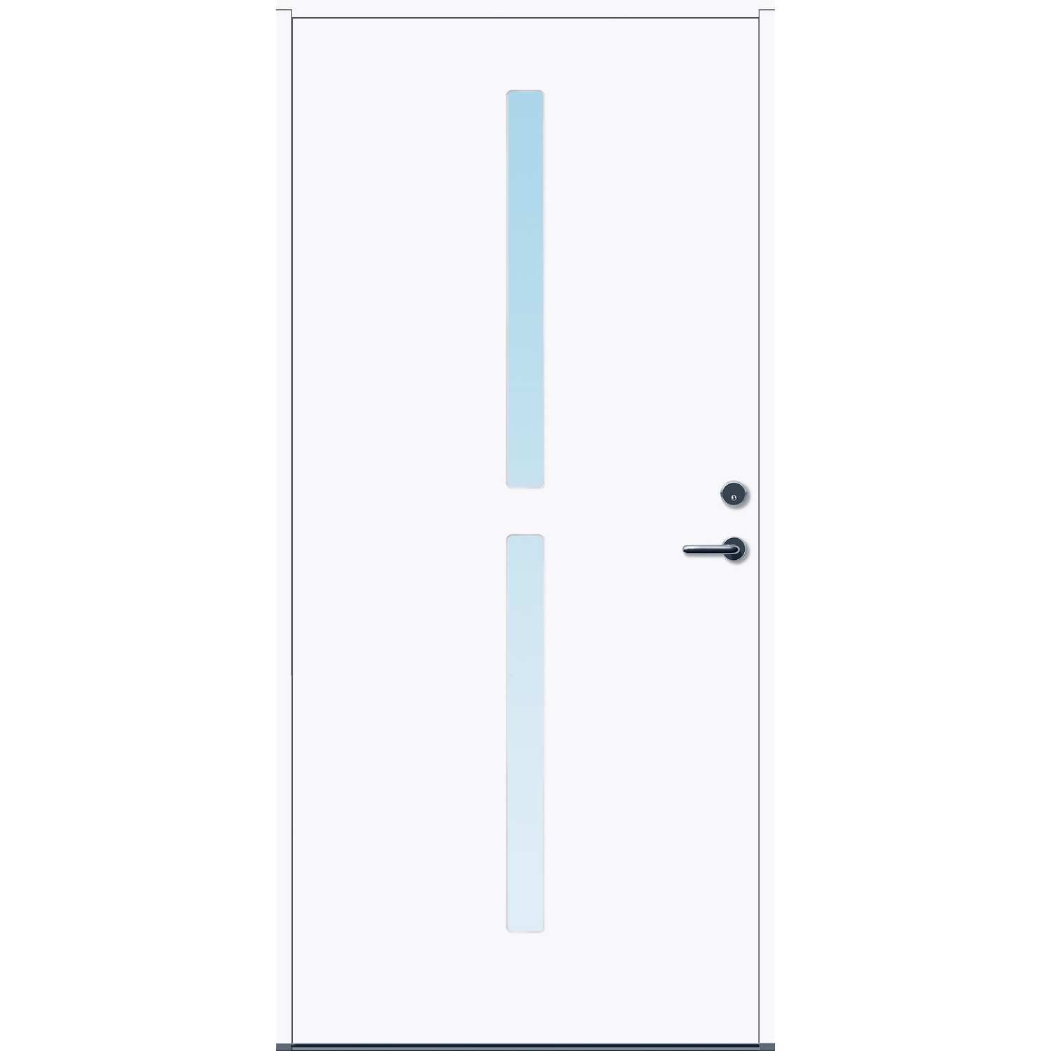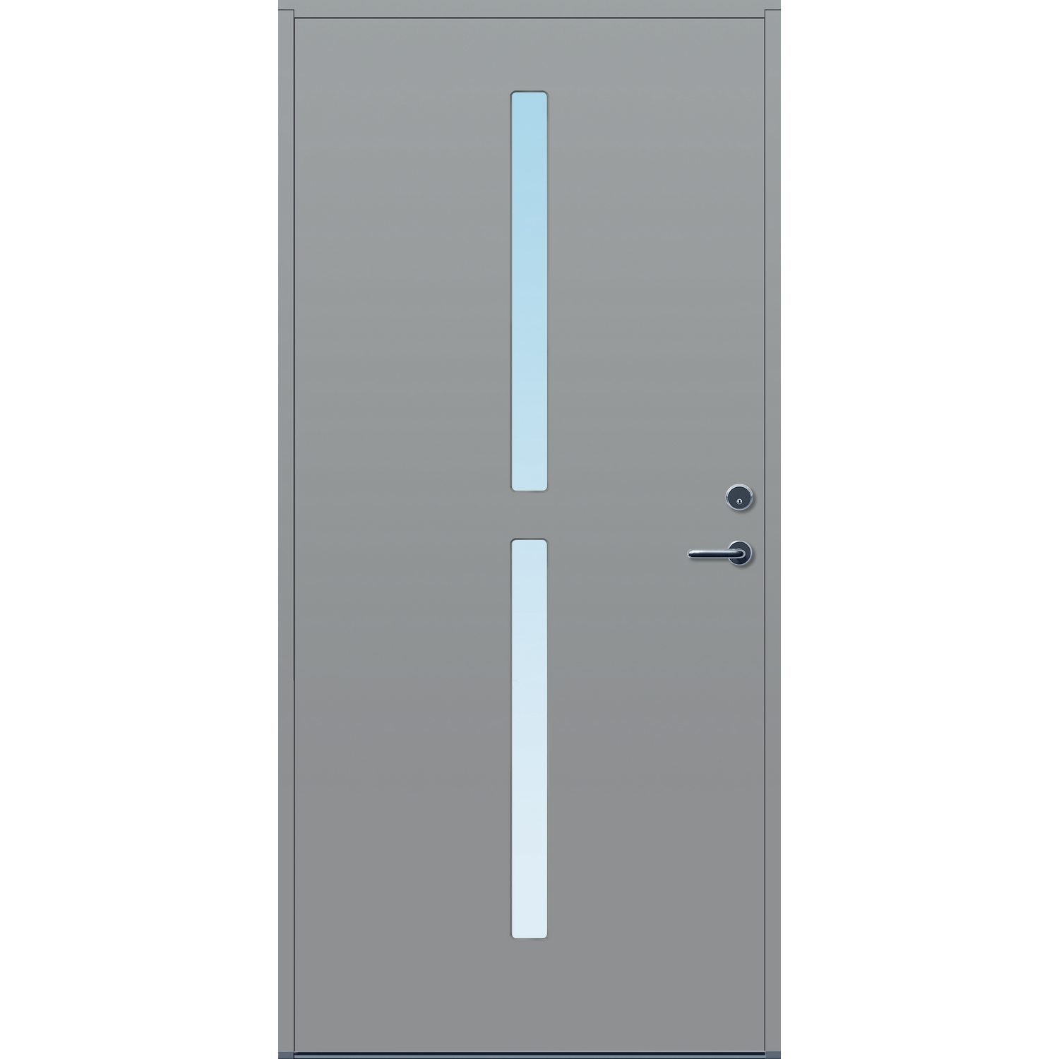Minimalistiske ytterdører med stilrent uttrykk, uten glasslister på utsiden og med skjulte hengsler. Dørene har en bladkonstruksjon av furu ramtre med 54 mm freonfritt isolasjonsmateriale. På begge sider er det limt 0,4 millimeter aluminium og 4 millimeter HDF. Både dør og karm er grunnet med 2 strøk 2-komponent syreherdet grunning og 1 strøk vannbasert toppstrøk. Toppstrøk på andre farger enn hvit er også 2-komponent.