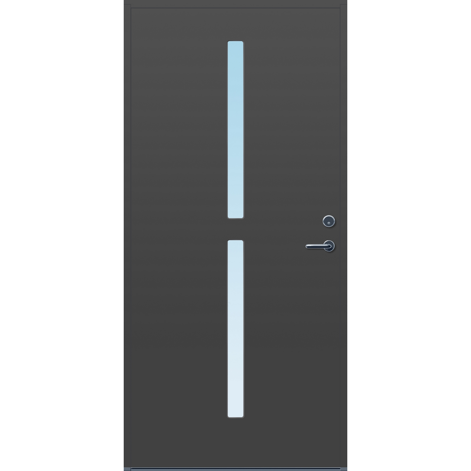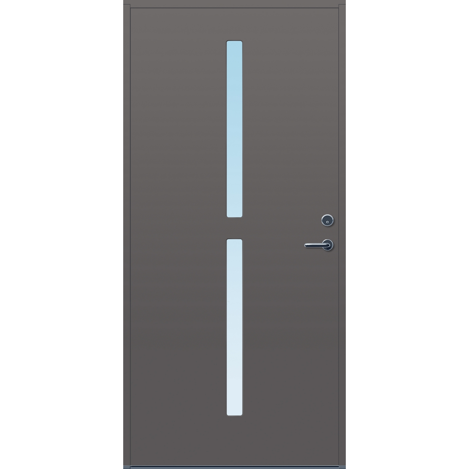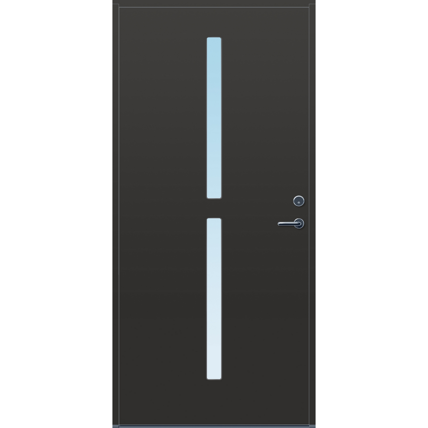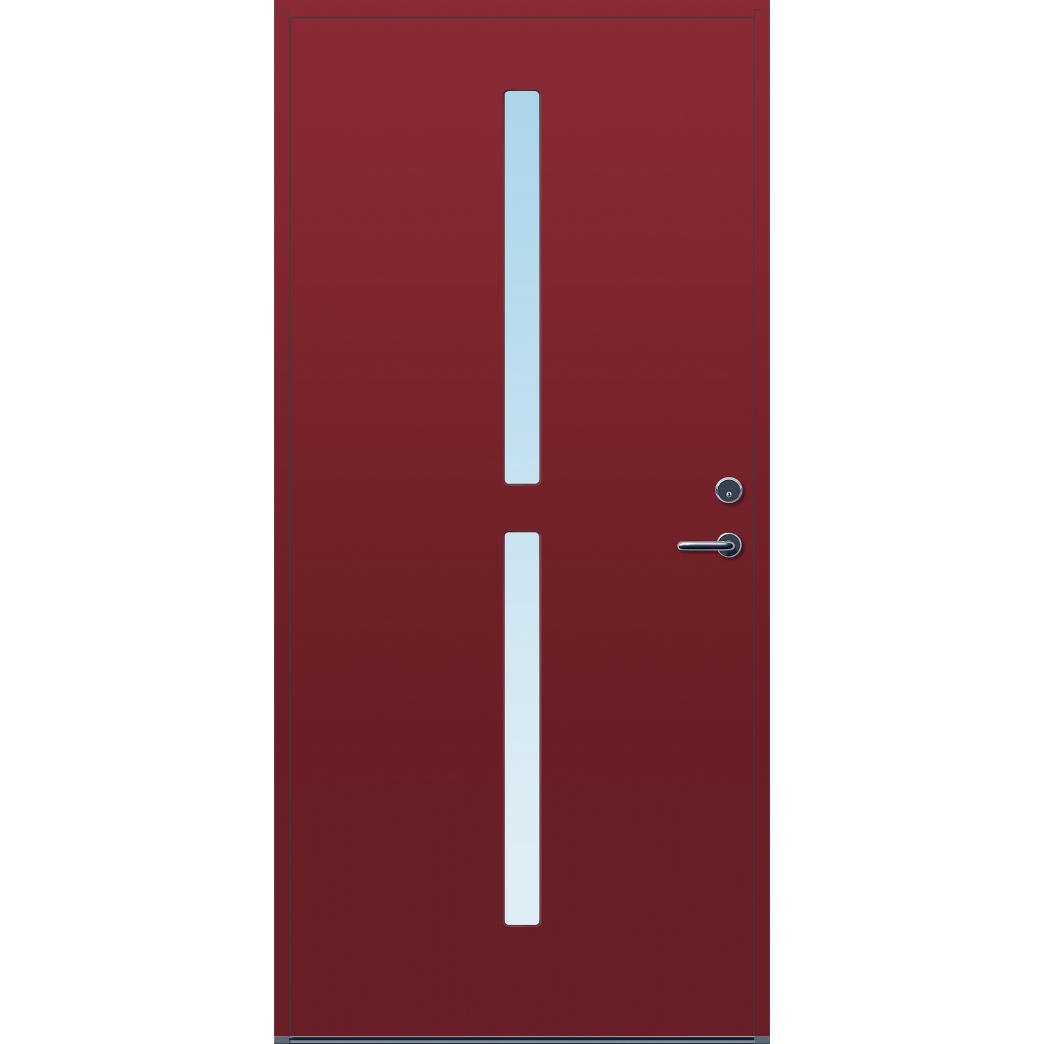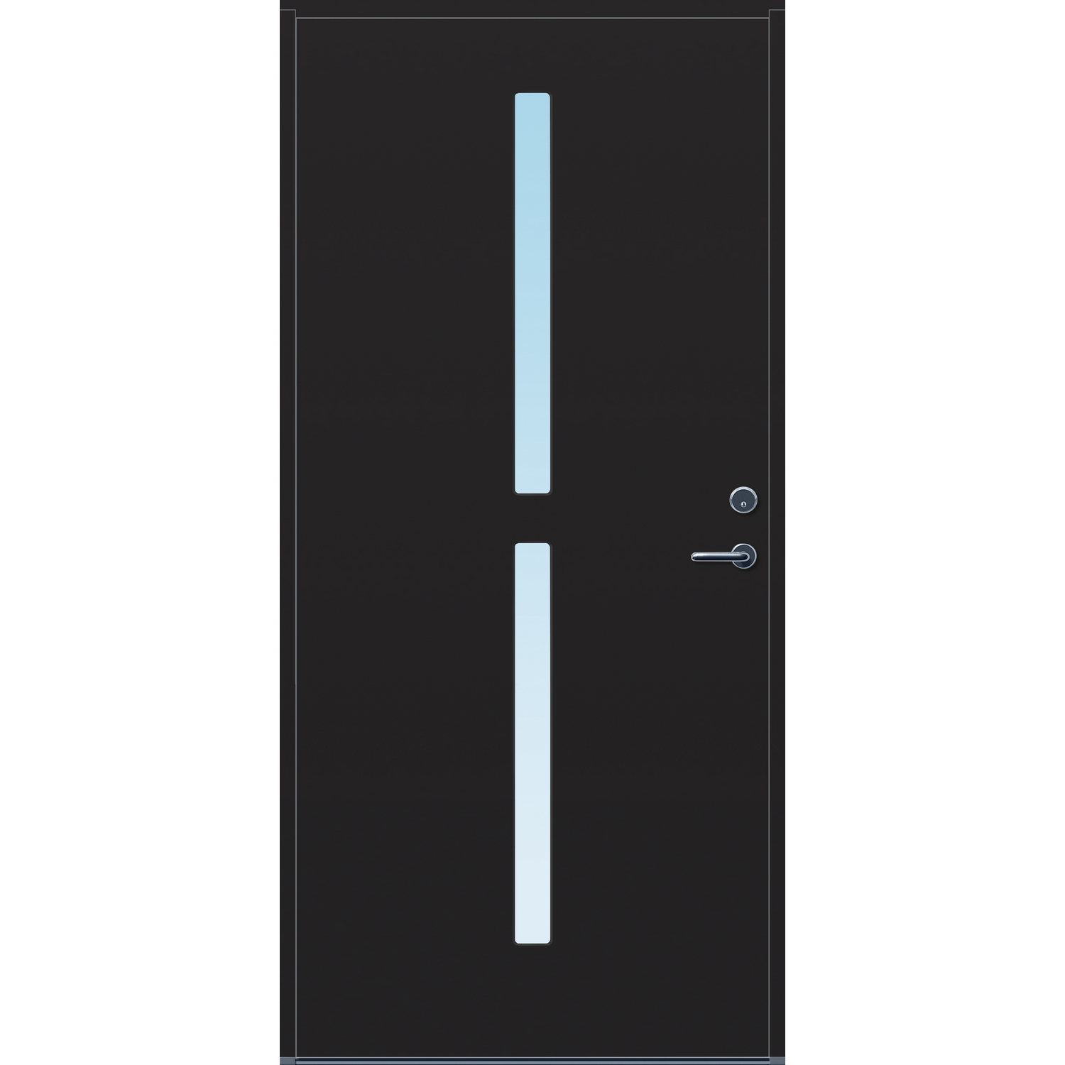 Minimalistiske ytterdører med stilrent uttrykk, uten glasslister på utsiden og med skjulte hengsler. Dørene har en bladkonstruksjon av furu ramtre med 54 mm freonfritt isolasjonsmateriale. På begge sider er det limt 0,4 millimeter aluminium og 4 millimeter HDF. Både dør og karm er grunnet med 2 strøk 2-komponent syreherdet grunning og 1 strøk vannbasert toppstrøk. Toppstrøk på andre farger enn hvit er også 2-komponent.