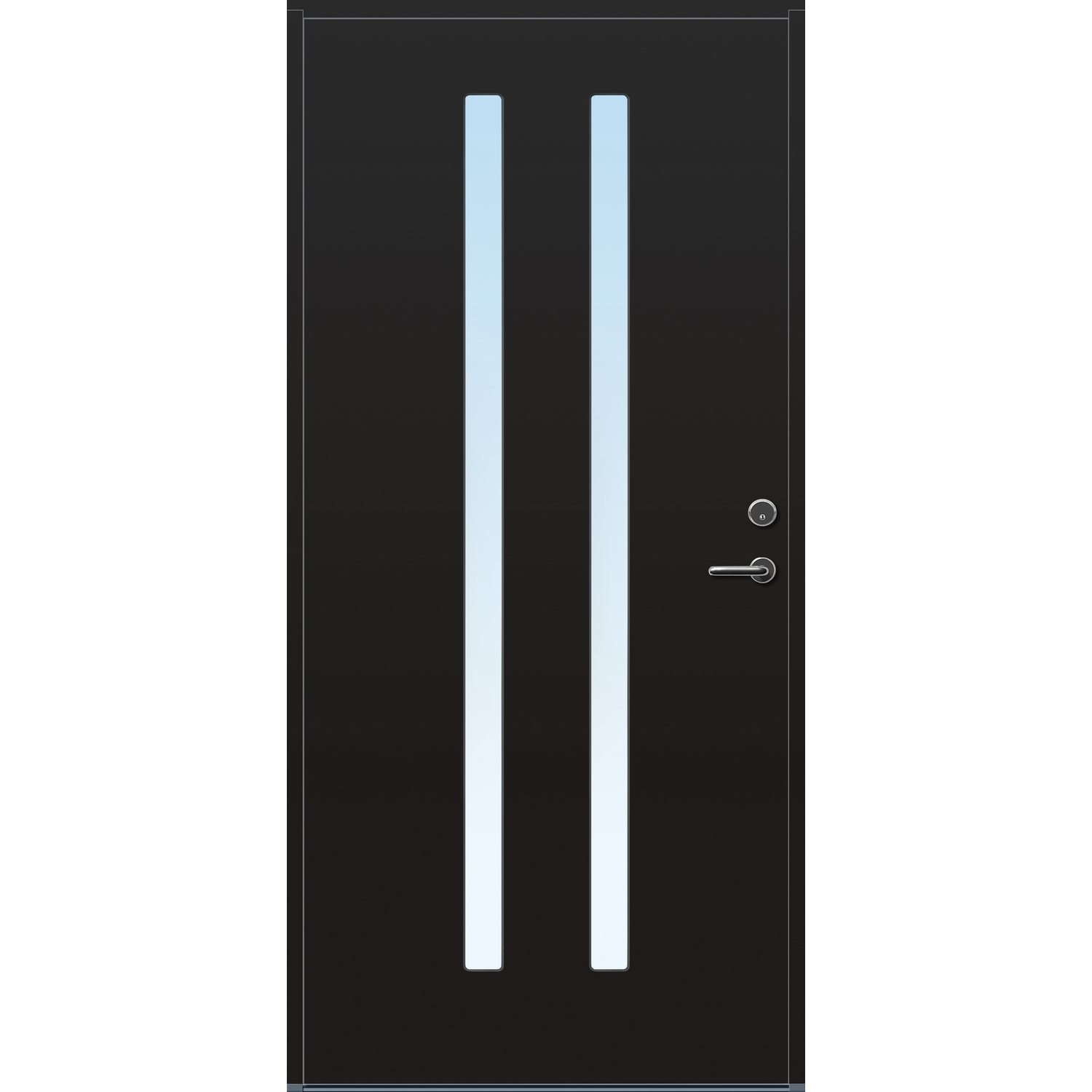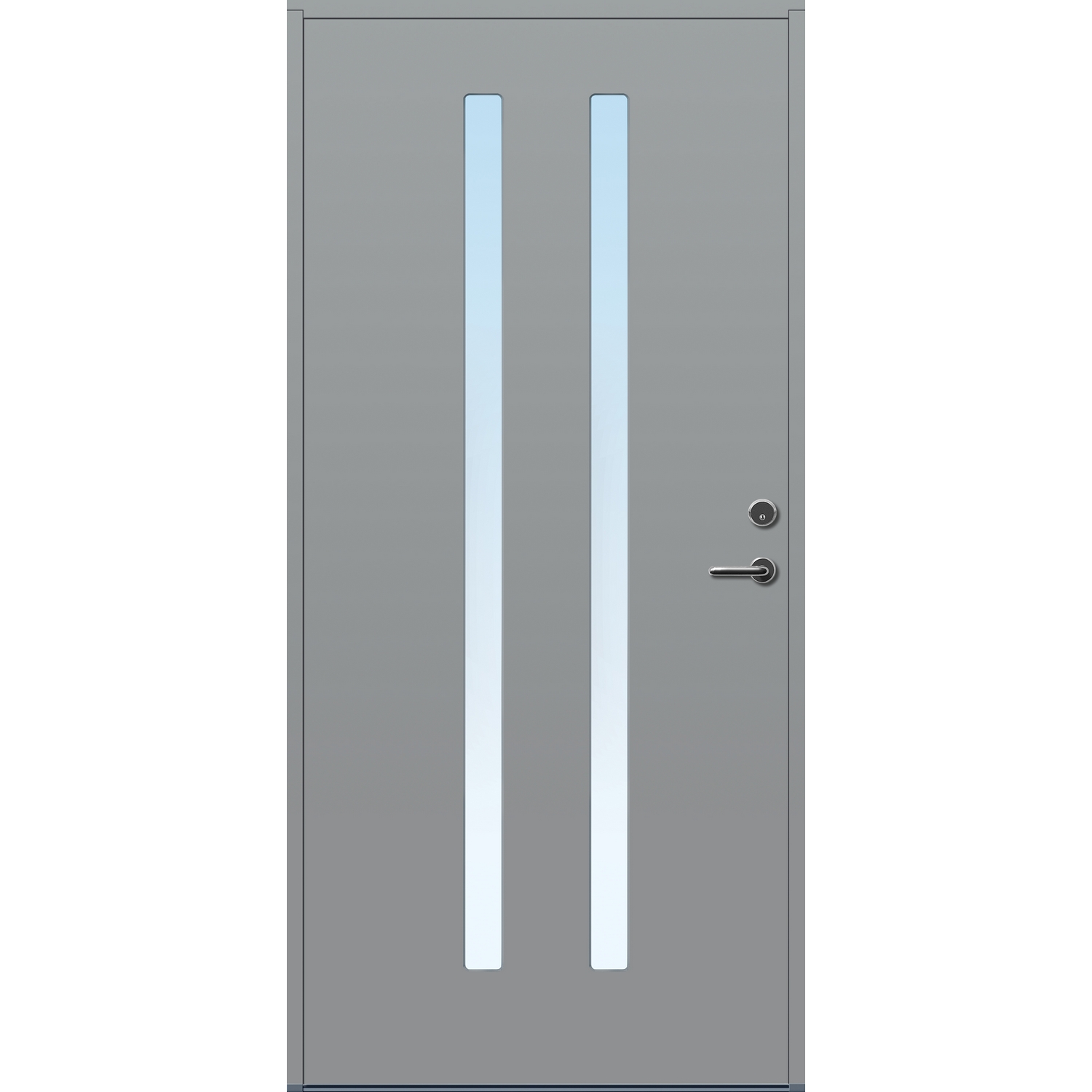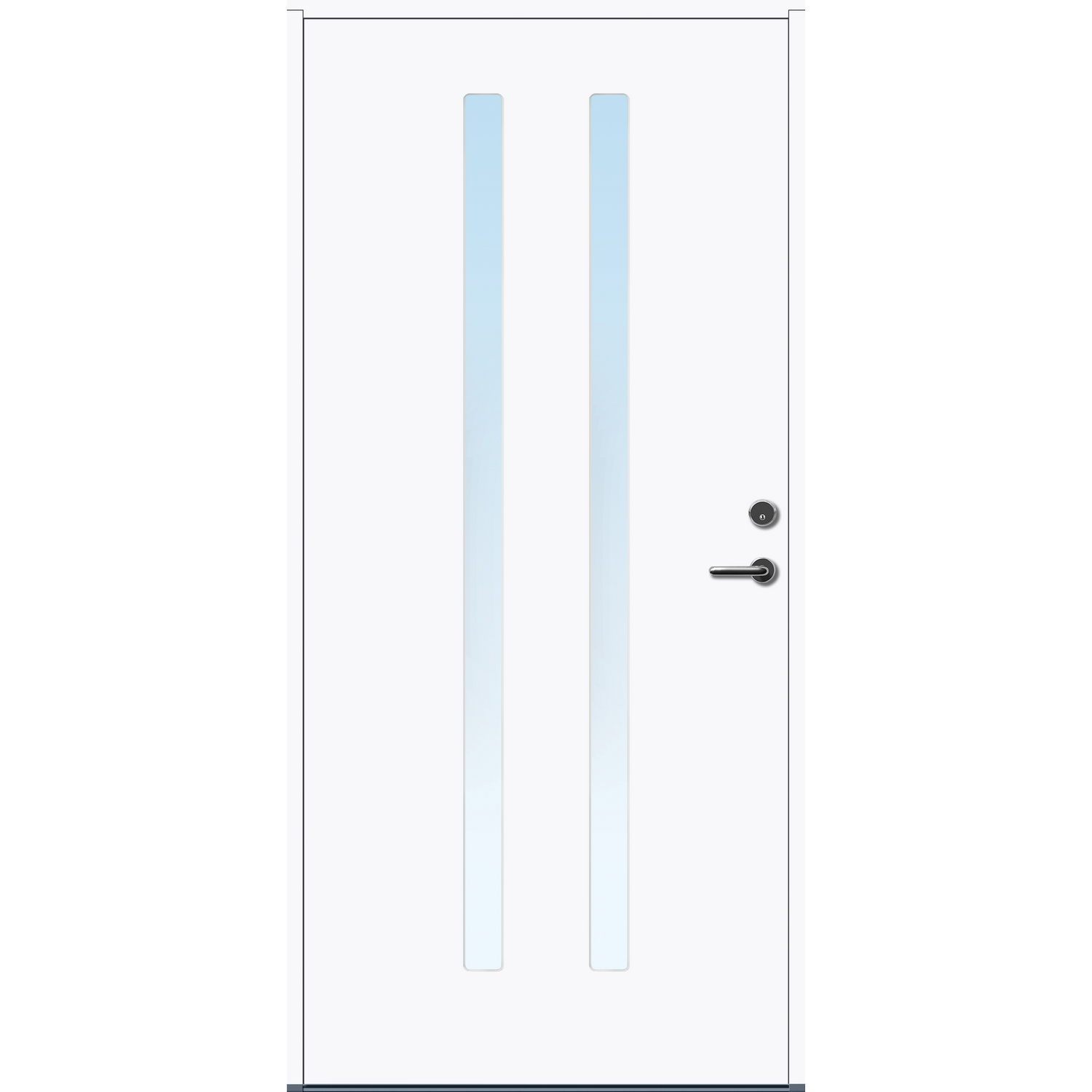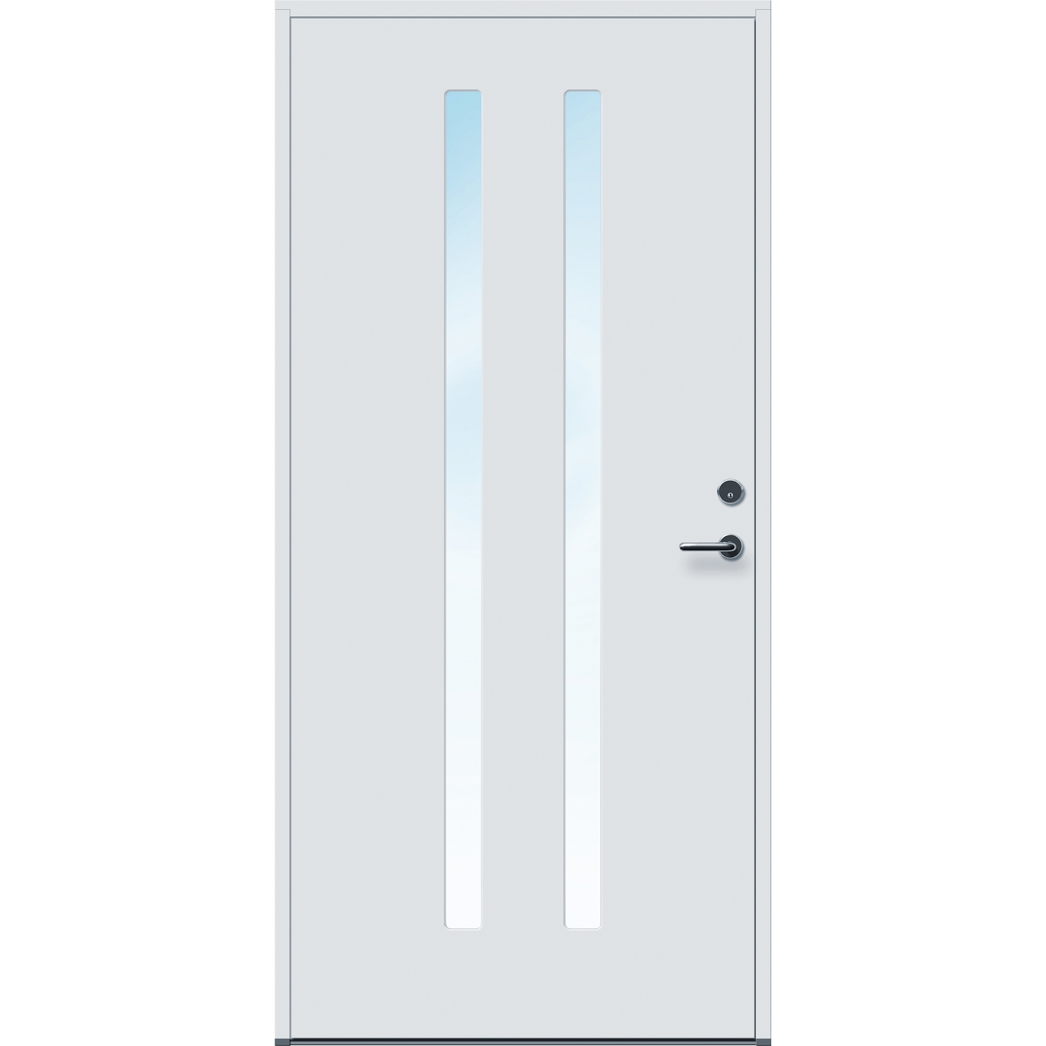Minimalistiske ytterdører med stilrent uttrykk, uten glasslister på utsiden og med skjulte hengsler. Dørene har en bladkonstruksjon av furu ramtre med 54 mm freonfritt isolasjonsmateriale. På begge sider er det limt 0,4 millimeter aluminium og 4 millimeter HDF. Både dør og karm er grunnet med 2 strøk 2-komponent syreherdet grunning og 1 strøk vannbasert toppstrøk. Toppstrøk på andre farger enn hvit er også 2-komponent.