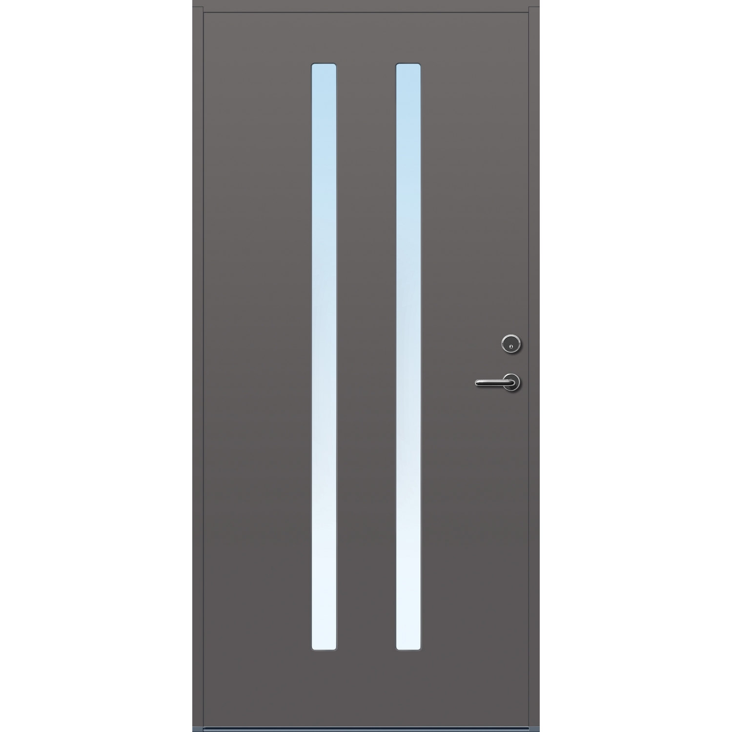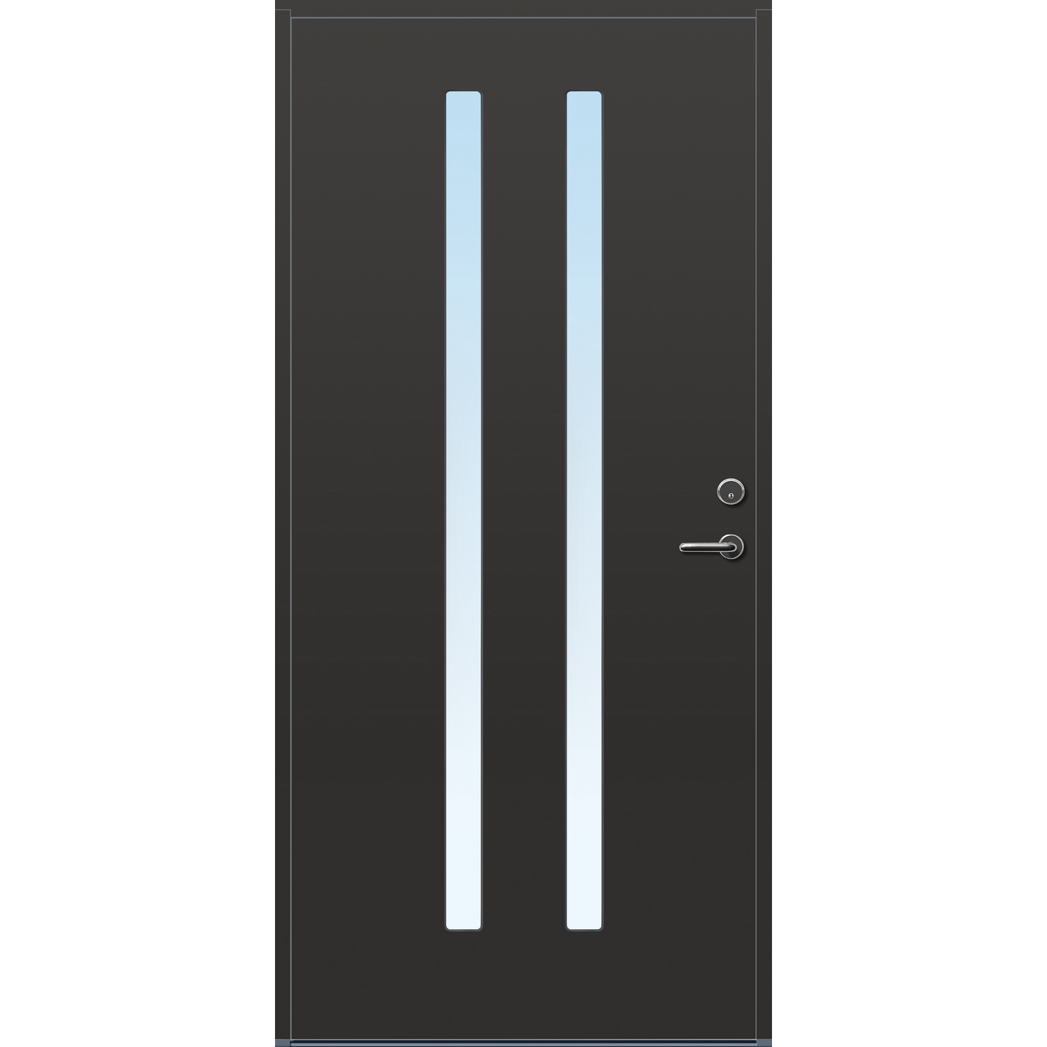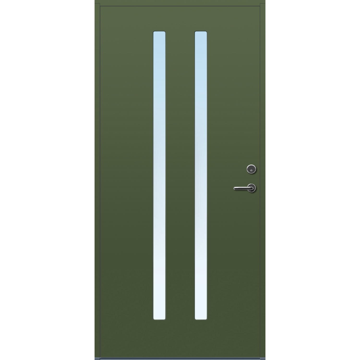 Minimalistiske ytterdører med stilrent uttrykk, uten glasslister på utsiden og med skjulte hengsler. Dørene har en bladkonstruksjon av furu ramtre med 54 mm freonfritt isolasjonsmateriale. På begge sider er det limt 0,4 millimeter aluminium og 4 millimeter HDF. Både dør og karm er grunnet med 2 strøk 2-komponent syreherdet grunning og 1 strøk vannbasert toppstrøk. Toppstrøk på andre farger enn hvit er også 2-komponent.