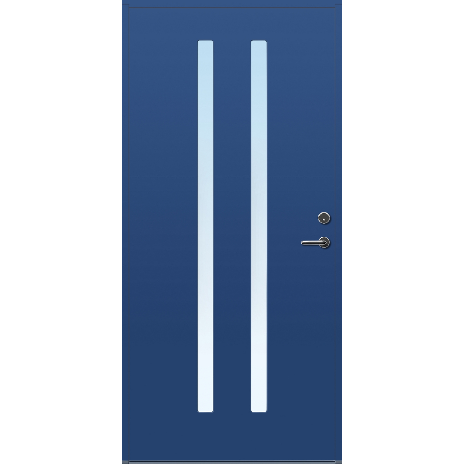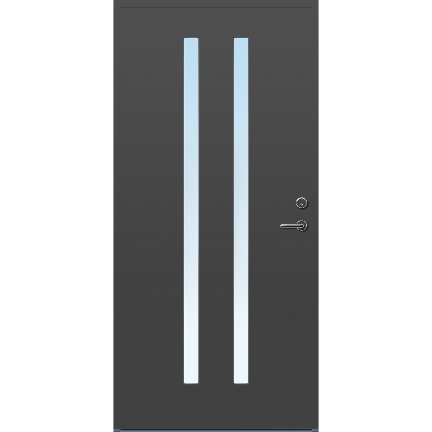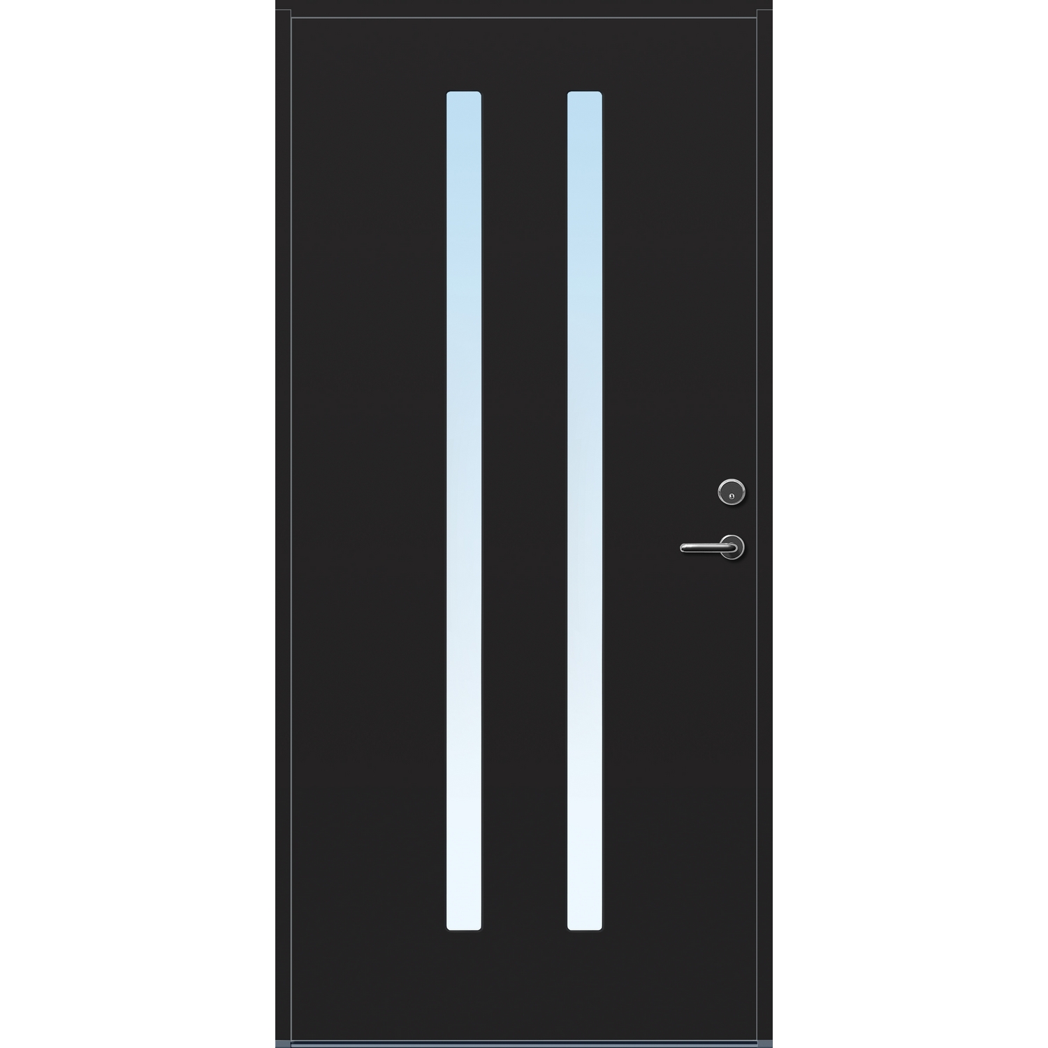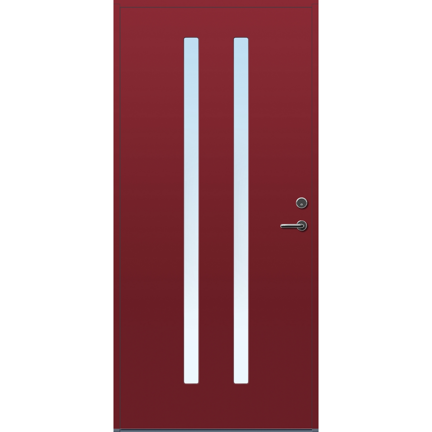 Minimalistiske ytterdører med stilrent uttrykk, uten glasslister på utsiden og med skjulte hengsler. Dørene har en bladkonstruksjon av furu ramtre med 54 mm freonfritt isolasjonsmateriale. På begge sider er det limt 0,4 millimeter aluminium og 4 millimeter HDF. Både dør og karm er grunnet med 2 strøk 2-komponent syreherdet grunning og 1 strøk vannbasert toppstrøk. Toppstrøk på andre farger enn hvit er også 2-komponent.