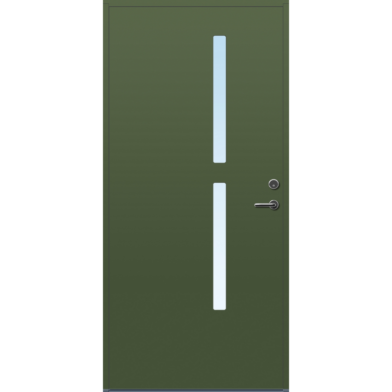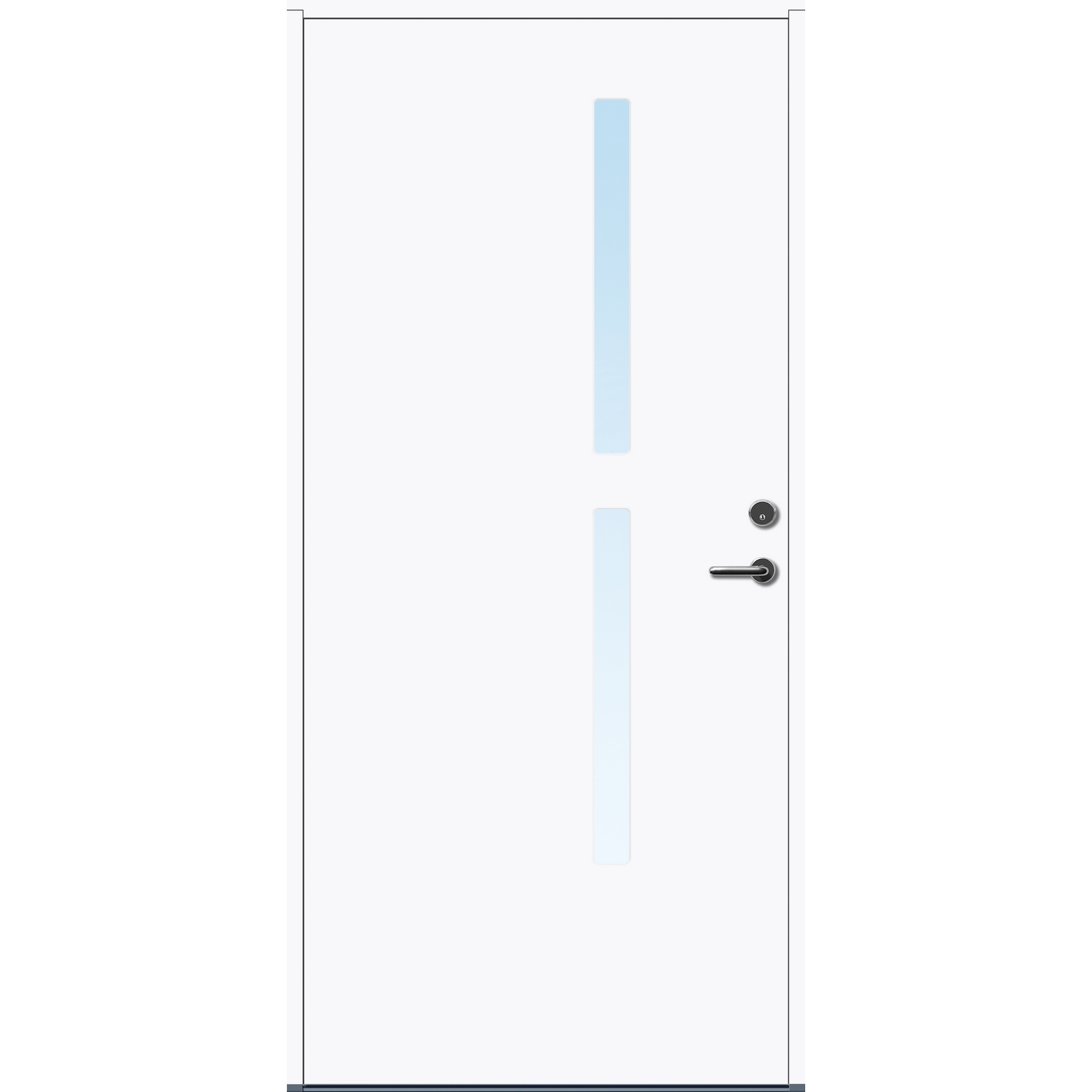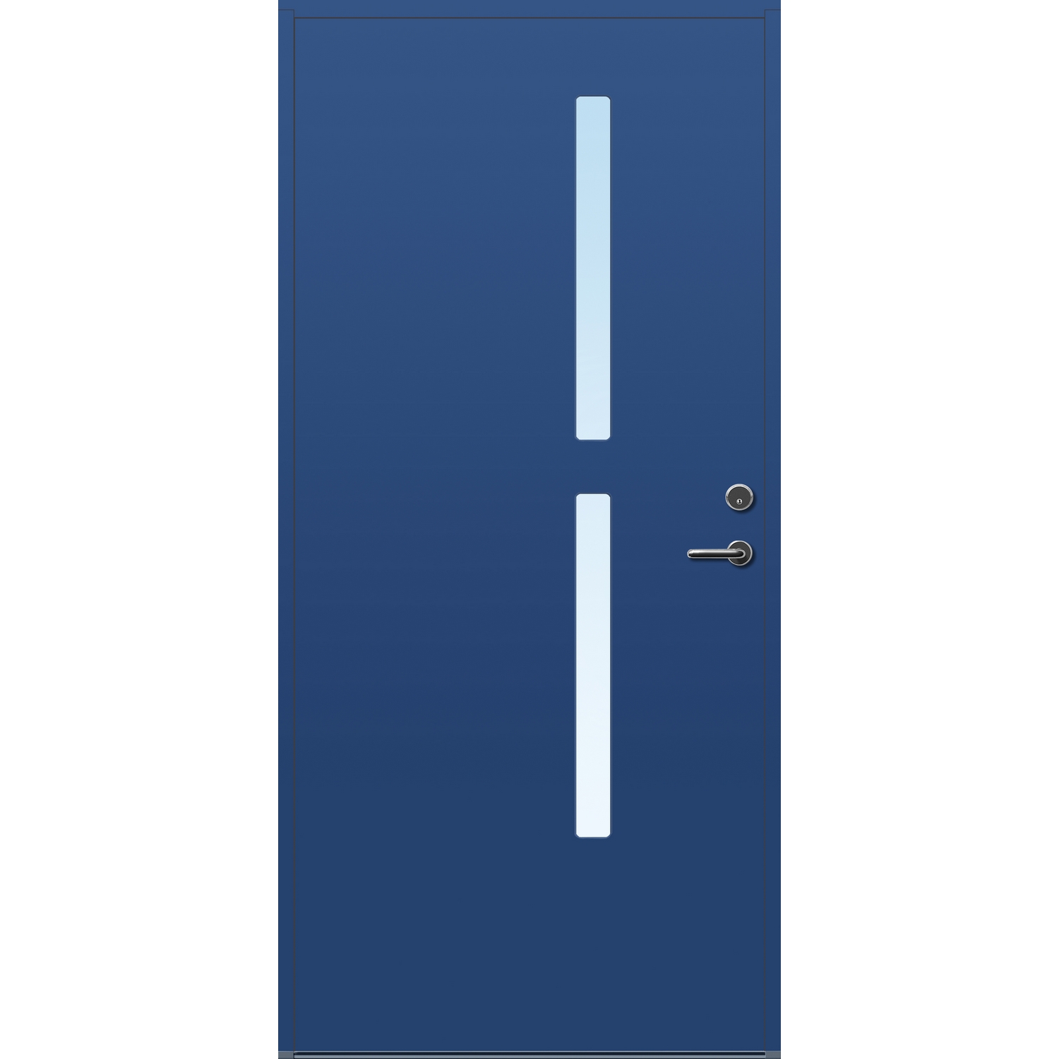 Minimalistiske ytterdører med stilrent uttrykk, uten glasslister på utsiden og med skjulte hengsler. Dørene har en bladkonstruksjon av furu ramtre med 54 mm freonfritt isolasjonsmateriale. På begge sider er det limt 0,4 millimeter aluminium og 4 millimeter HDF. Både dør og karm er grunnet med 2 strøk 2-komponent syreherdet grunning og 1 strøk vannbasert toppstrøk. Toppstrøk på andre farger enn hvit er også 2-komponent.