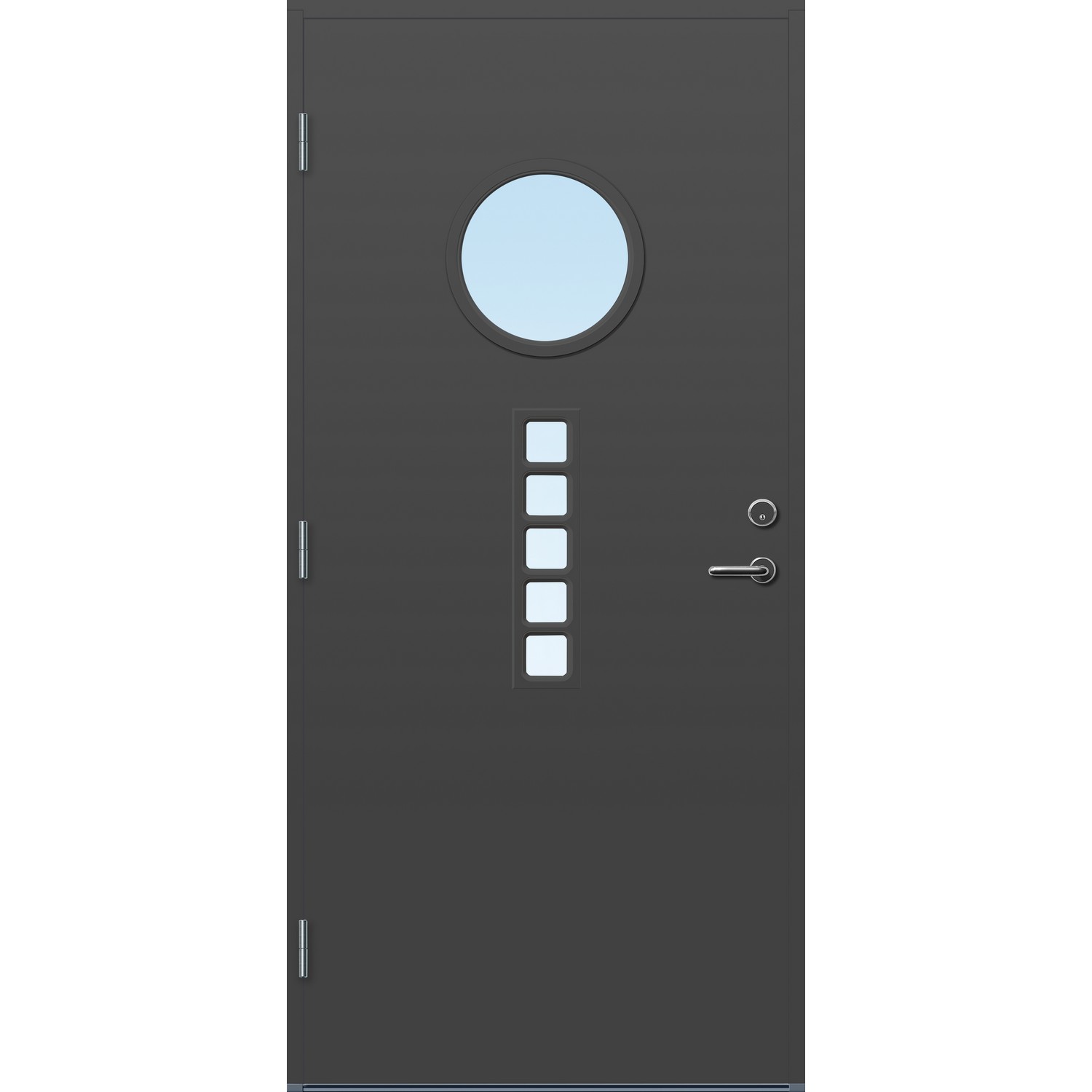 Ytterdører fra Bygg1 med glatt eller sporfrest utside. Dørene har en bladkonstruksjon av furu ramtre med 54 mm freonfritt isolasjonsmateriale. På begge sider er det limt 0,4 millimeter aluminium og 4 millimeter HDF. Både dør og karm er grunnet med 2 strøk 2-komponent syreherdet grunning og 1 strøk vannbasert toppstrøk. Toppstrøk på andre farger enn hvit er også 2-komponent.