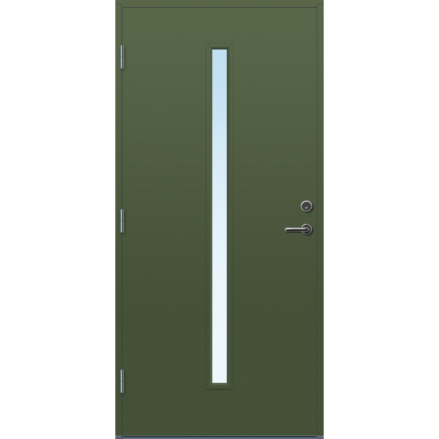 Ytterdører fra Bygg1 med glatt eller sporfrest utside. Dørene har en bladkonstruksjon av furu ramtre med 54 mm freonfritt isolasjonsmateriale. På begge sider er det limt 0,4 millimeter aluminium og 4 millimeter HDF. Både dør og karm er grunnet med 2 strøk 2-komponent syreherdet grunning og 1 strøk vannbasert toppstrøk. Toppstrøk på andre farger enn hvit er også 2-komponent.