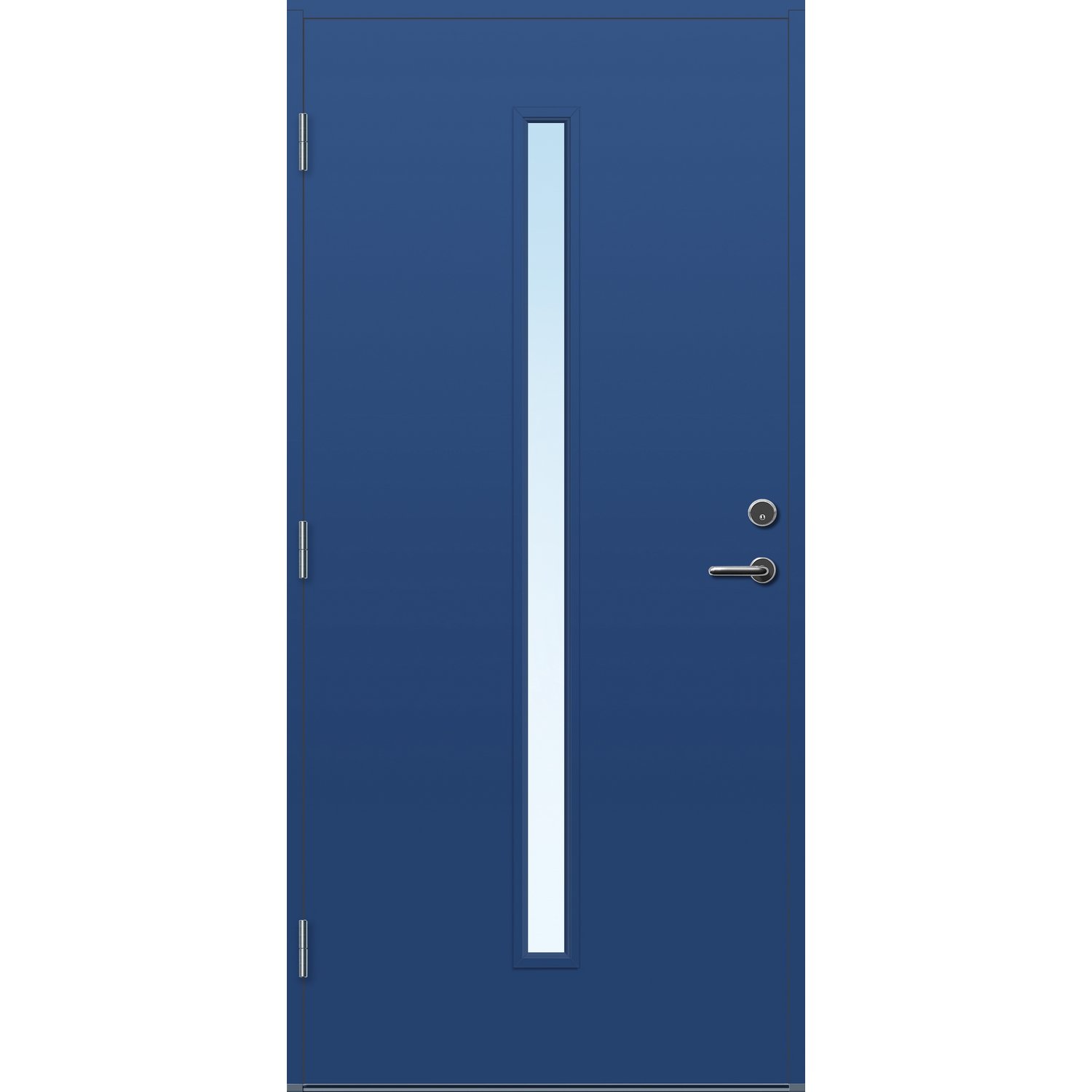Ytterdører fra Bygg1 med glatt eller sporfrest utside. Dørene har en bladkonstruksjon av furu ramtre med 54 mm freonfritt isolasjonsmateriale. På begge sider er det limt 0,4 millimeter aluminium og 4 millimeter kompaktlaminat. Både dør og karm er grunnet med 2 strøk 2-komponent syreherdet grunning og 1 strøk vannbasert toppstrøk. Toppstrøk på andre farger enn hvit er også 2-komponent.