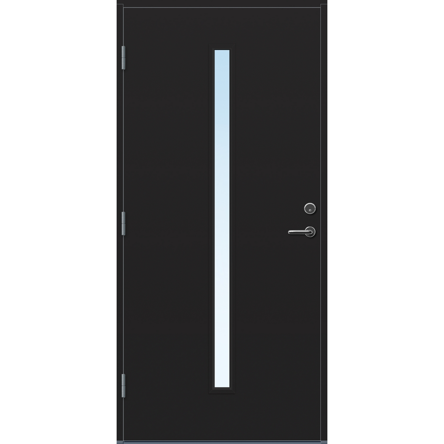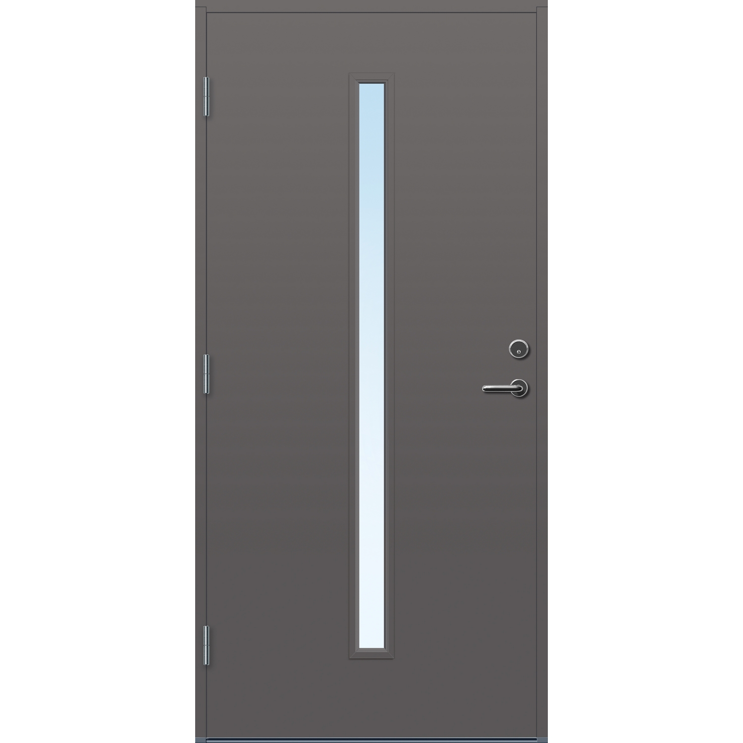 Standard ytterdør for ekstremt klima. Døren har en overflate av kompaktlaminat, som gjør de tåler mer fukt enn standard malte ytterdører. Hvis døren står svært værutsatt eller uten takoverbygg er dette vår anbefaling. Dørene har U-verdi fra 0,77 – 1,0, med 2-lags energisparende isolerglass. Pakningen er festet på dørbladet for å forhindre unødig slitasje.