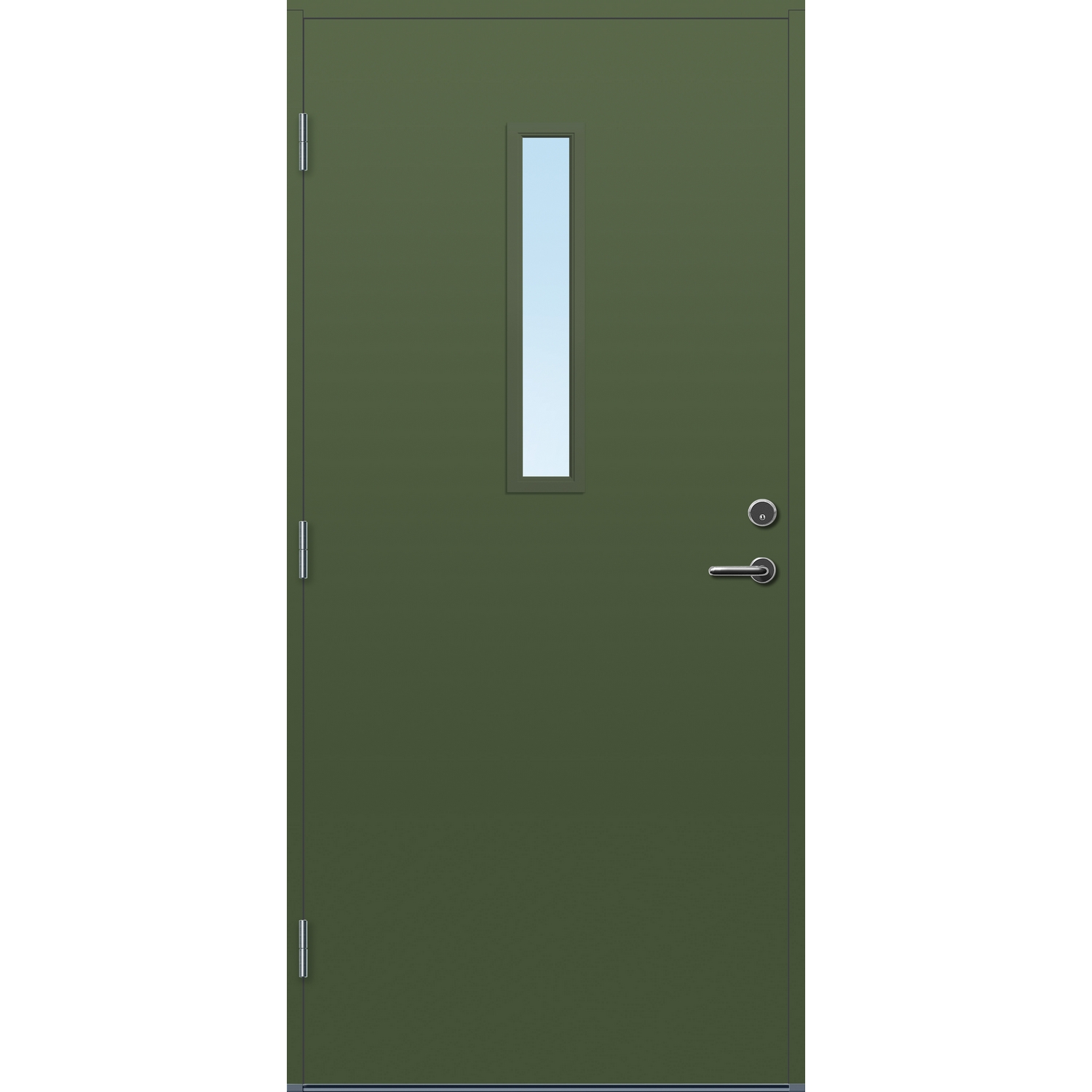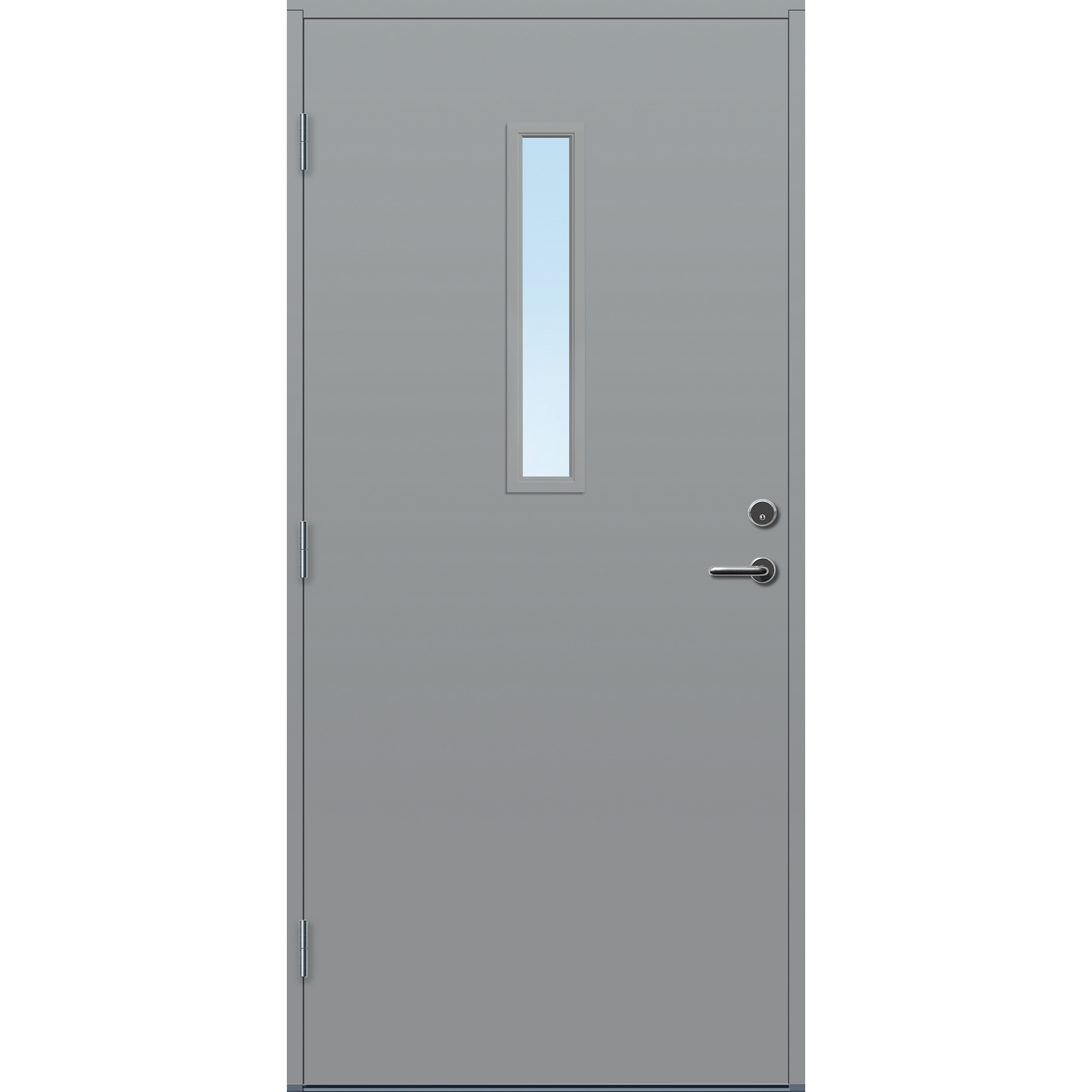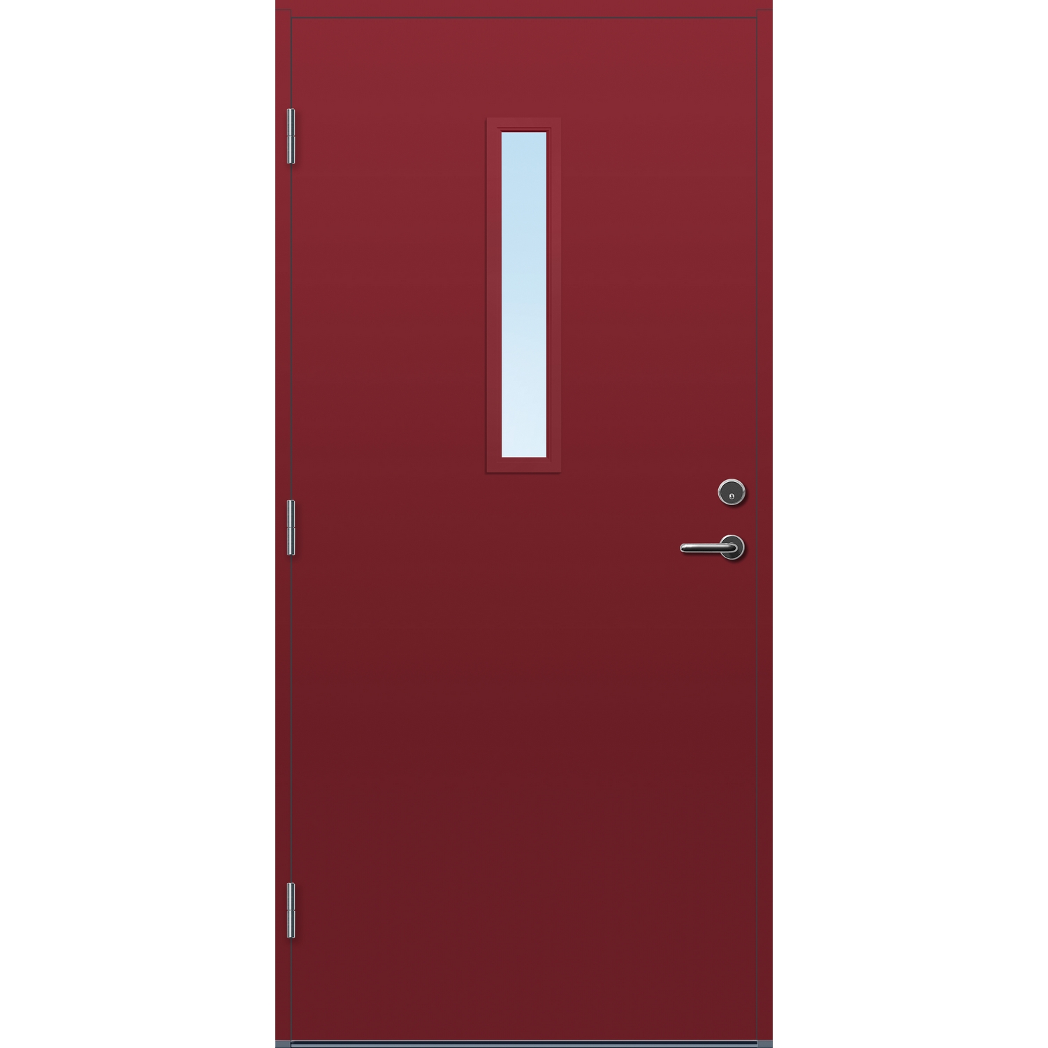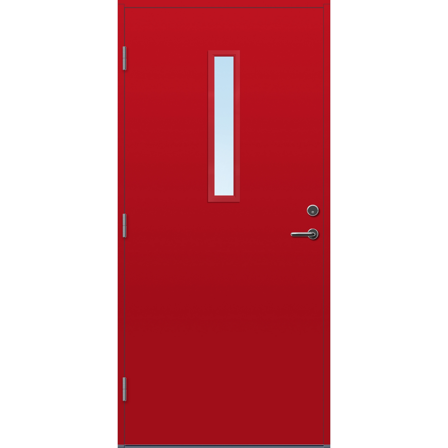 Prisgunstig ytterdør fra Bygg1 med forenklet låskasse og sylinder i forhold til standard ytterdørene. Leveres med glatt eller sporfrest utside, og dørene har en bladkonstruksjon av furu ramtre med 54 mm freonfritt isolasjonsmateriale. På begge sider er det limt 0,4 millimeter aluminium og 4 millimeter HDF. Både dør og karm er grunnet med 2 strøk 2-komponent syreherdet grunning og 1 strøk vannbasert toppstrøk. Toppstrøk på andre farger enn hvit er også 2-komponent.