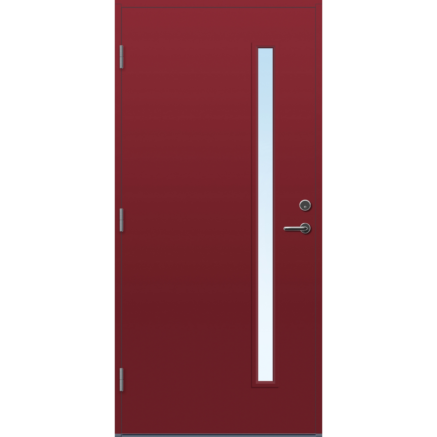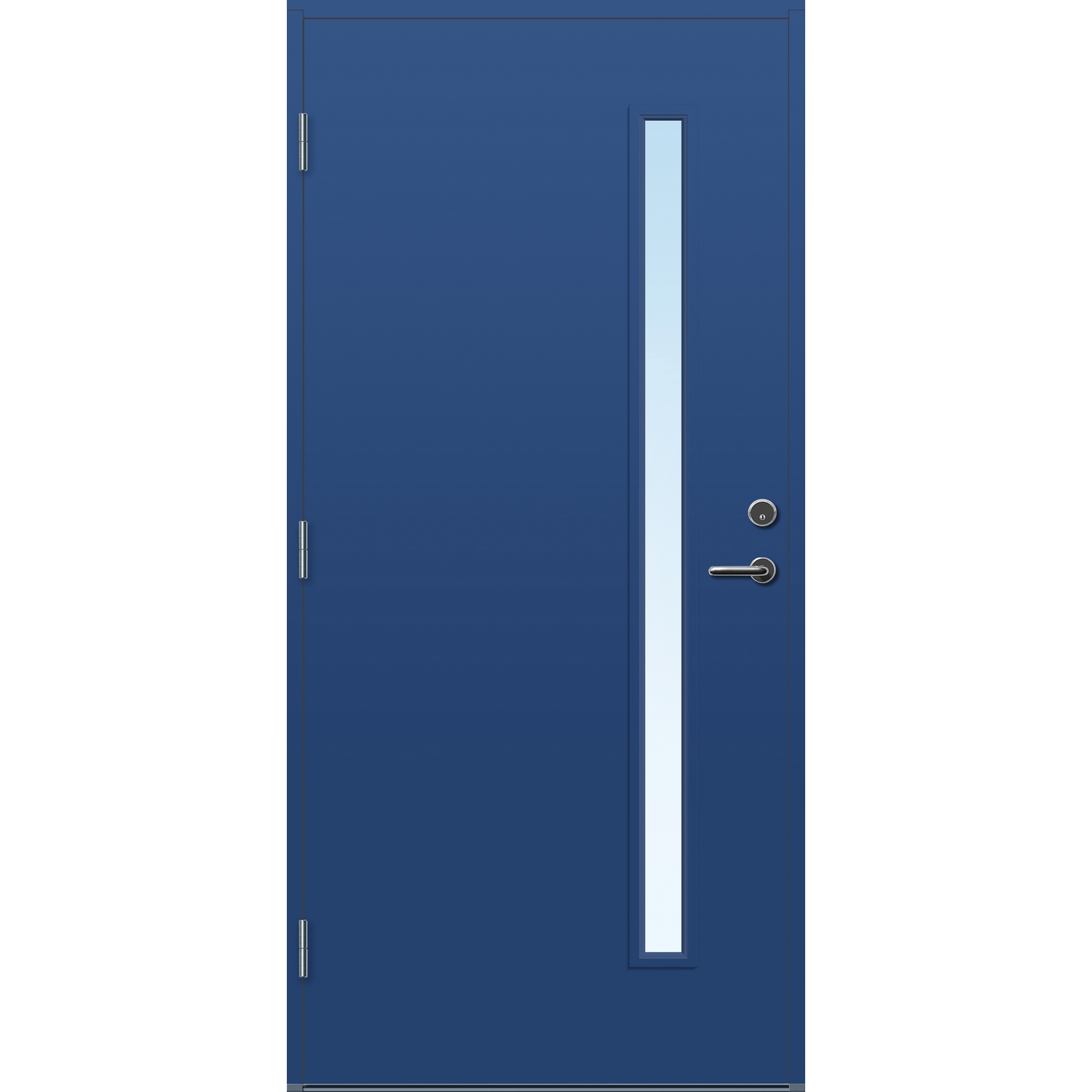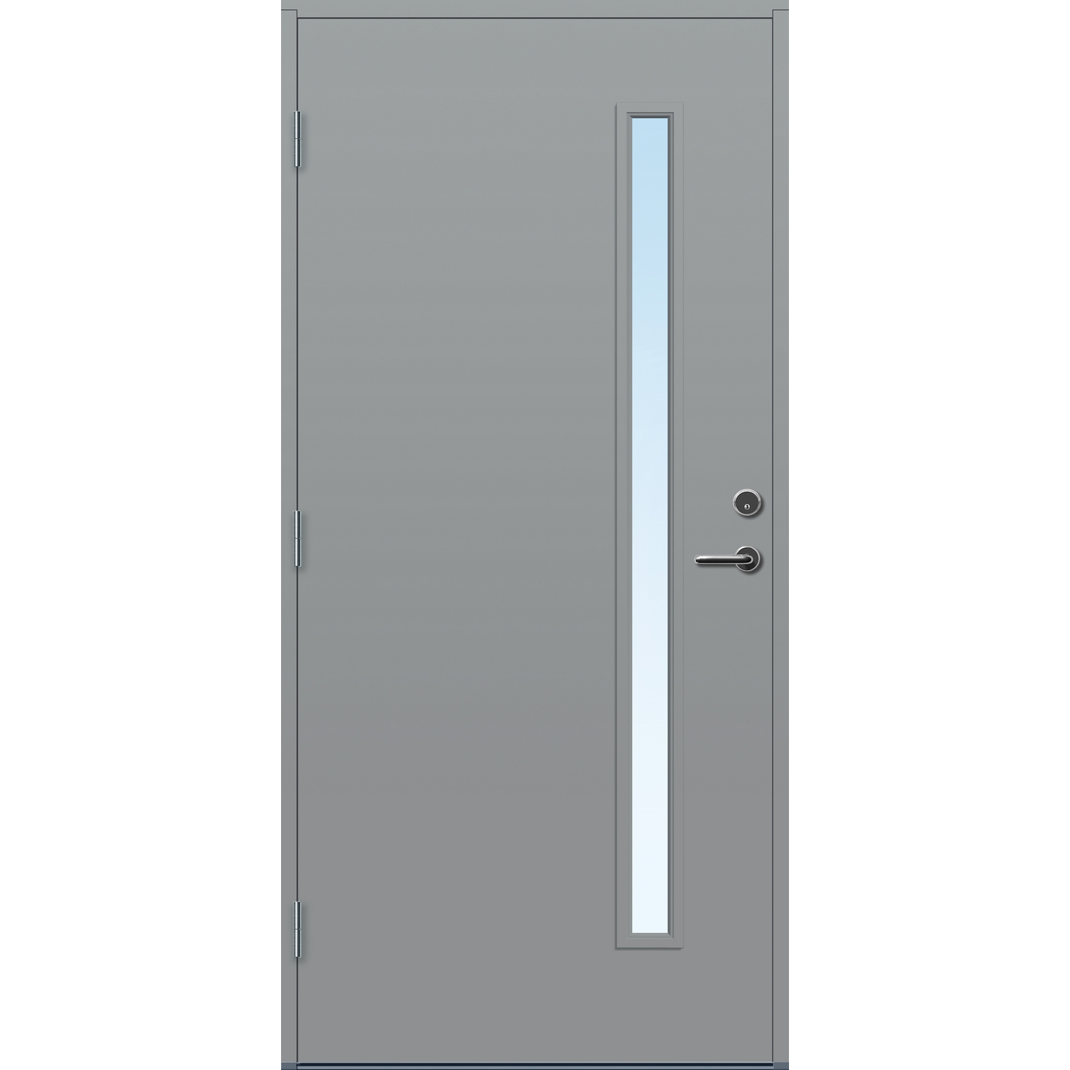 Ytterdører fra Bygg1 med glatt eller sporfrest utside. Dørene har en bladkonstruksjon av furu ramtre med 54 mm freonfritt isolasjonsmateriale. På begge sider er det limt 0,4 millimeter aluminium og 4 millimeter HDF. Både dør og karm er grunnet med 2 strøk 2-komponent syreherdet grunning og 1 strøk vannbasert toppstrøk. Toppstrøk på andre farger enn hvit er også 2-komponent.
