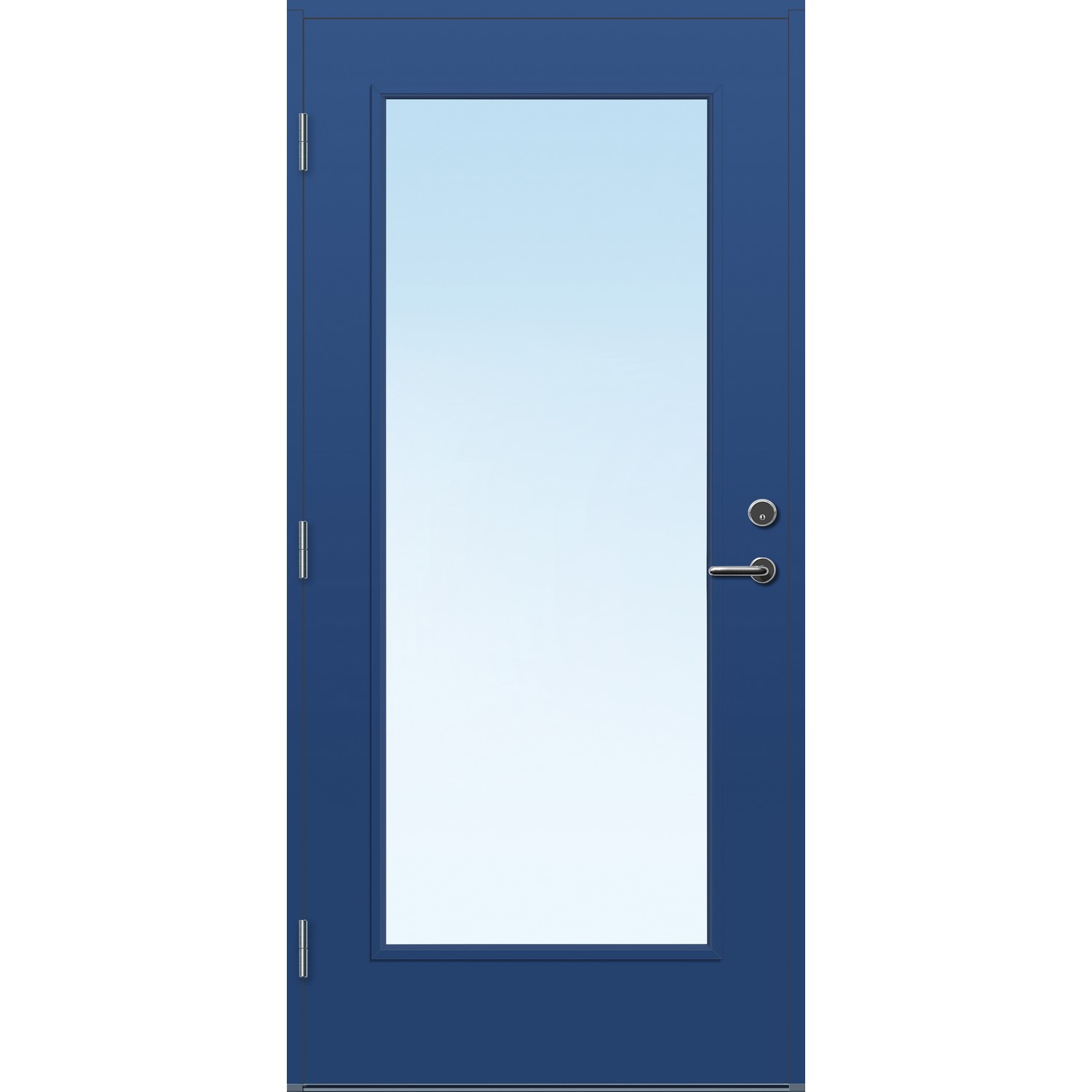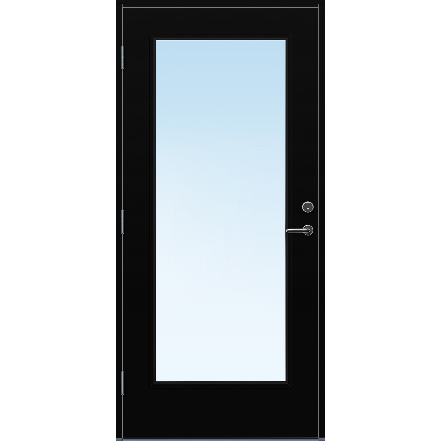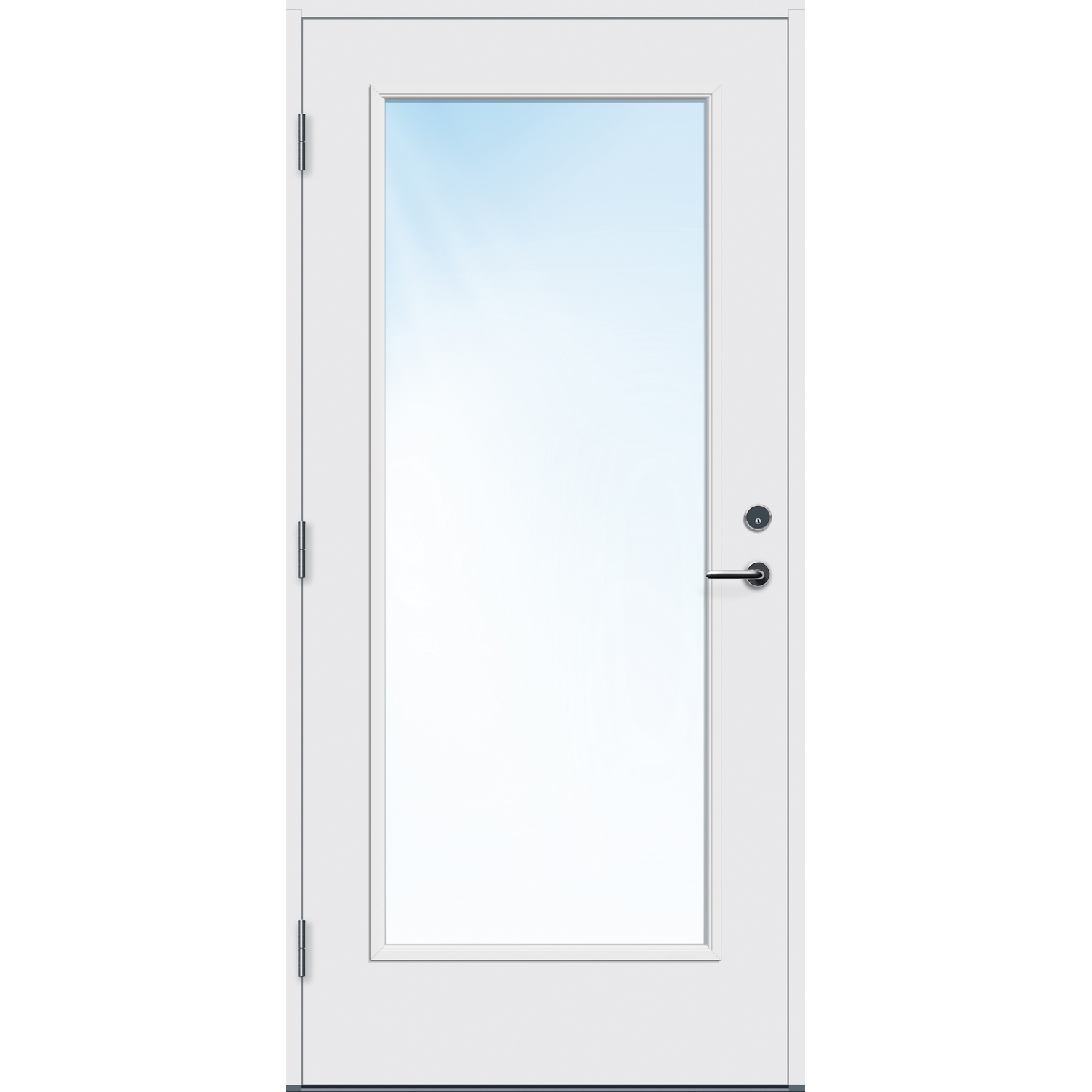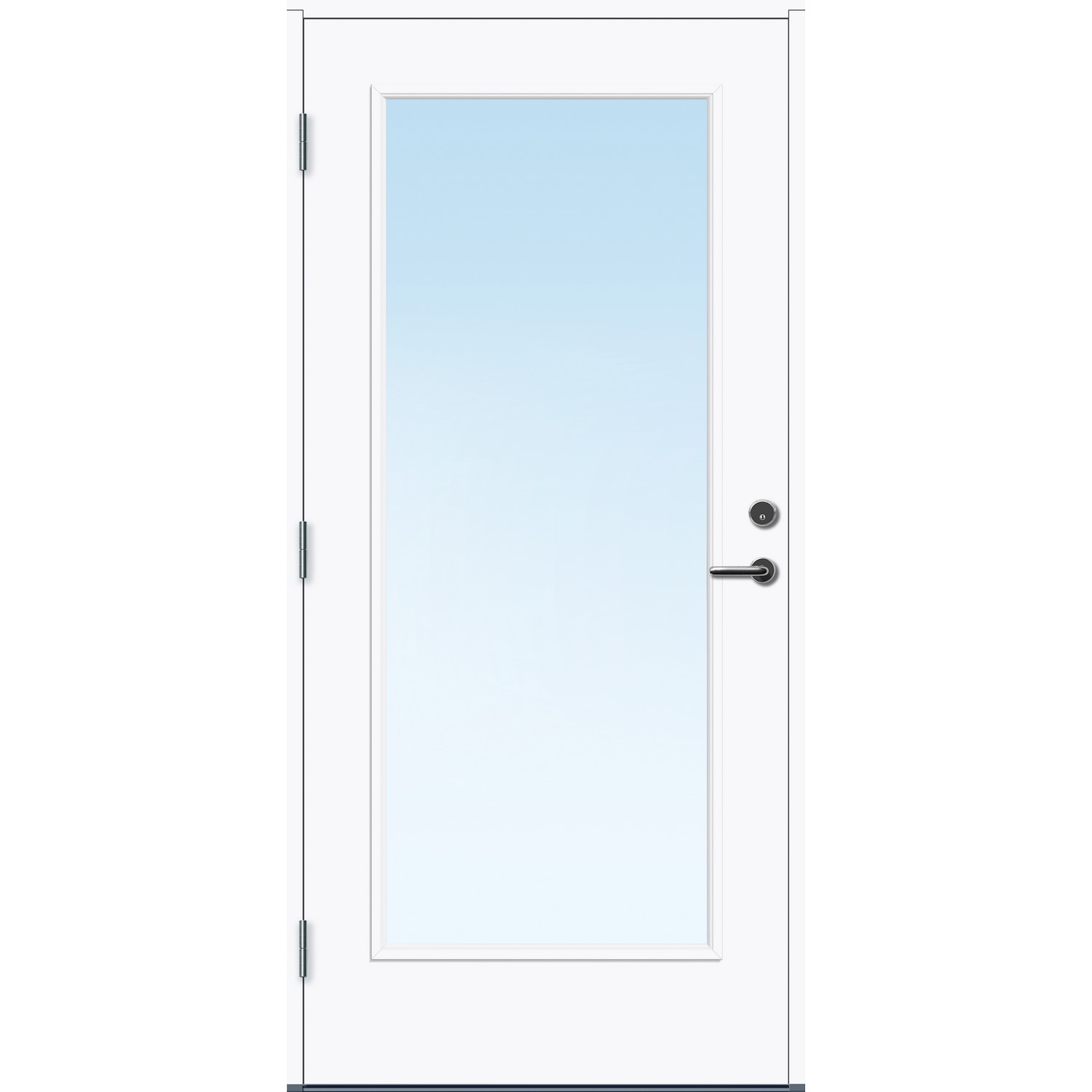 Ytterdører fra Bygg1 med glatt eller sporfrest utside. Dørene har en bladkonstruksjon av furu ramtre med 54 mm freonfritt isolasjonsmateriale. På begge sider er det limt 0,4 millimeter aluminium og 4 millimeter HDF. Både dør og karm er grunnet med 2 strøk 2-komponent syreherdet grunning og 1 strøk vannbasert toppstrøk. Toppstrøk på andre farger enn hvit er også 2-komponent.