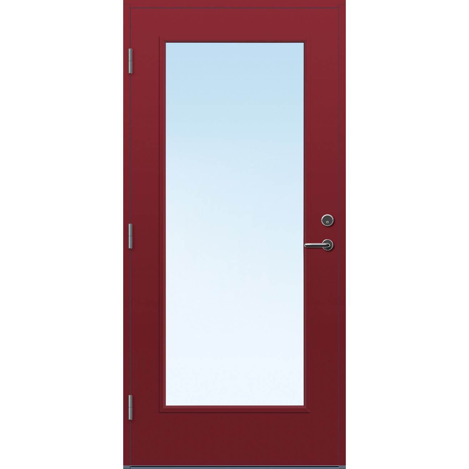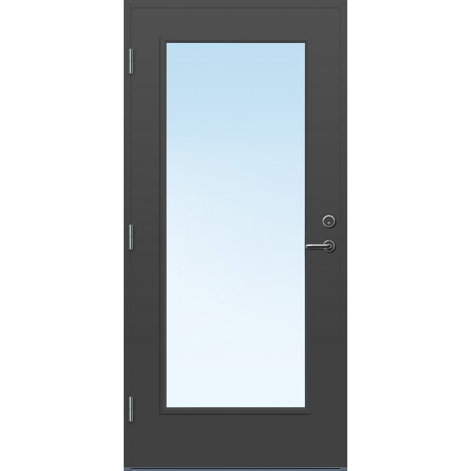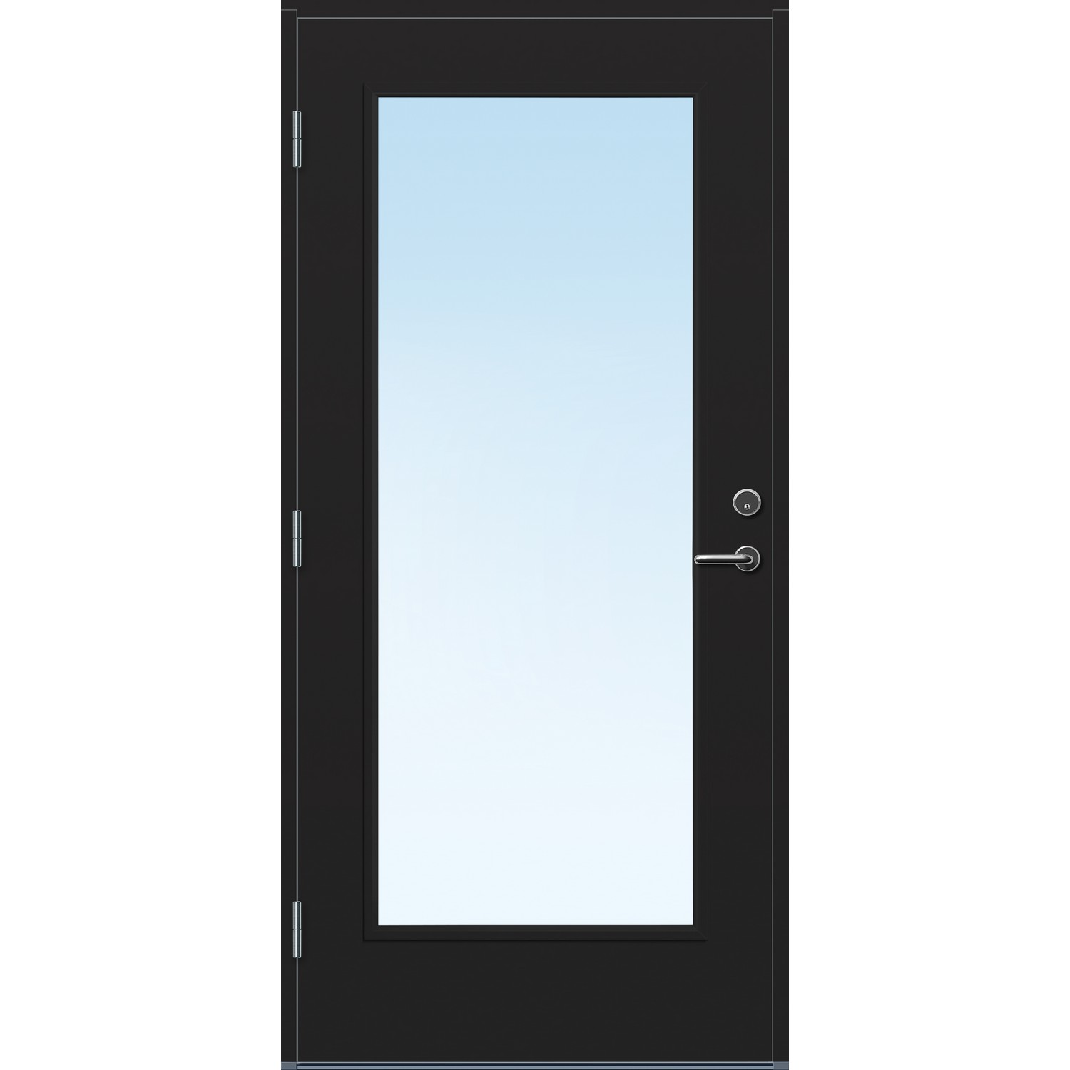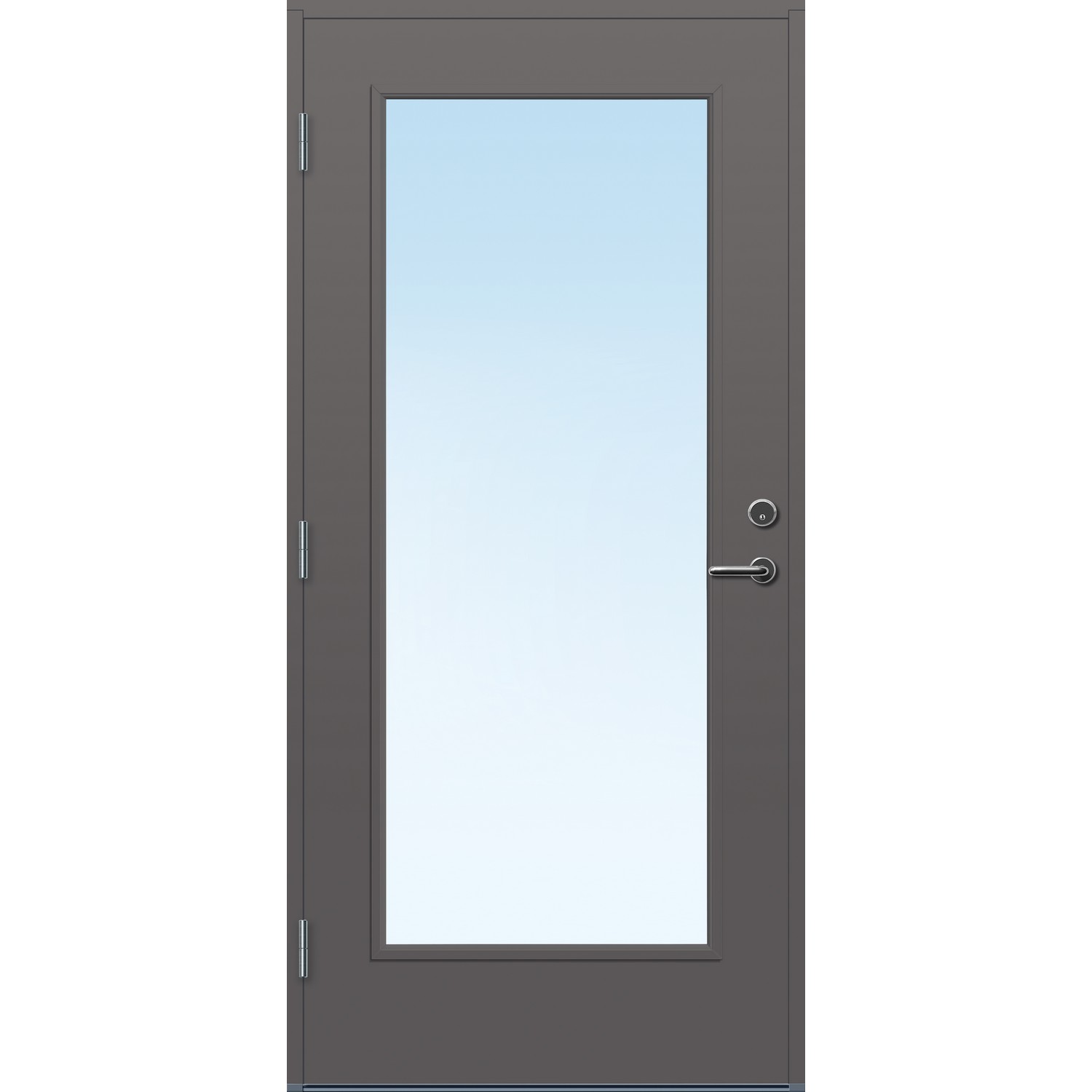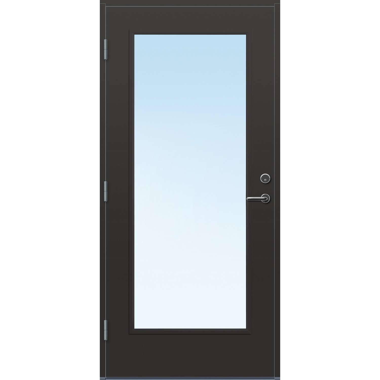 Ytterdører fra Bygg1 med glatt eller sporfrest utside. Dørene har en bladkonstruksjon av furu ramtre med 54 mm freonfritt isolasjonsmateriale. På begge sider er det limt 0,4 millimeter aluminium og 4 millimeter HDF. Både dør og karm er grunnet med 2 strøk 2-komponent syreherdet grunning og 1 strøk vannbasert toppstrøk. Toppstrøk på andre farger enn hvit er også 2-komponent.