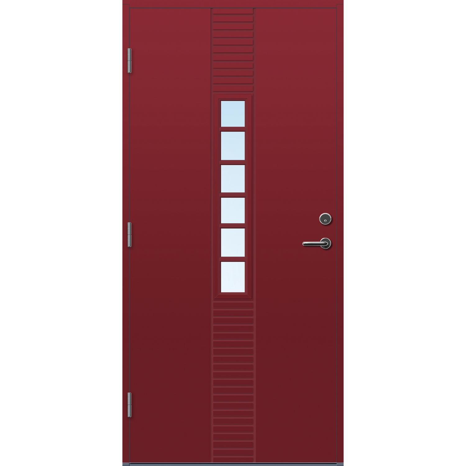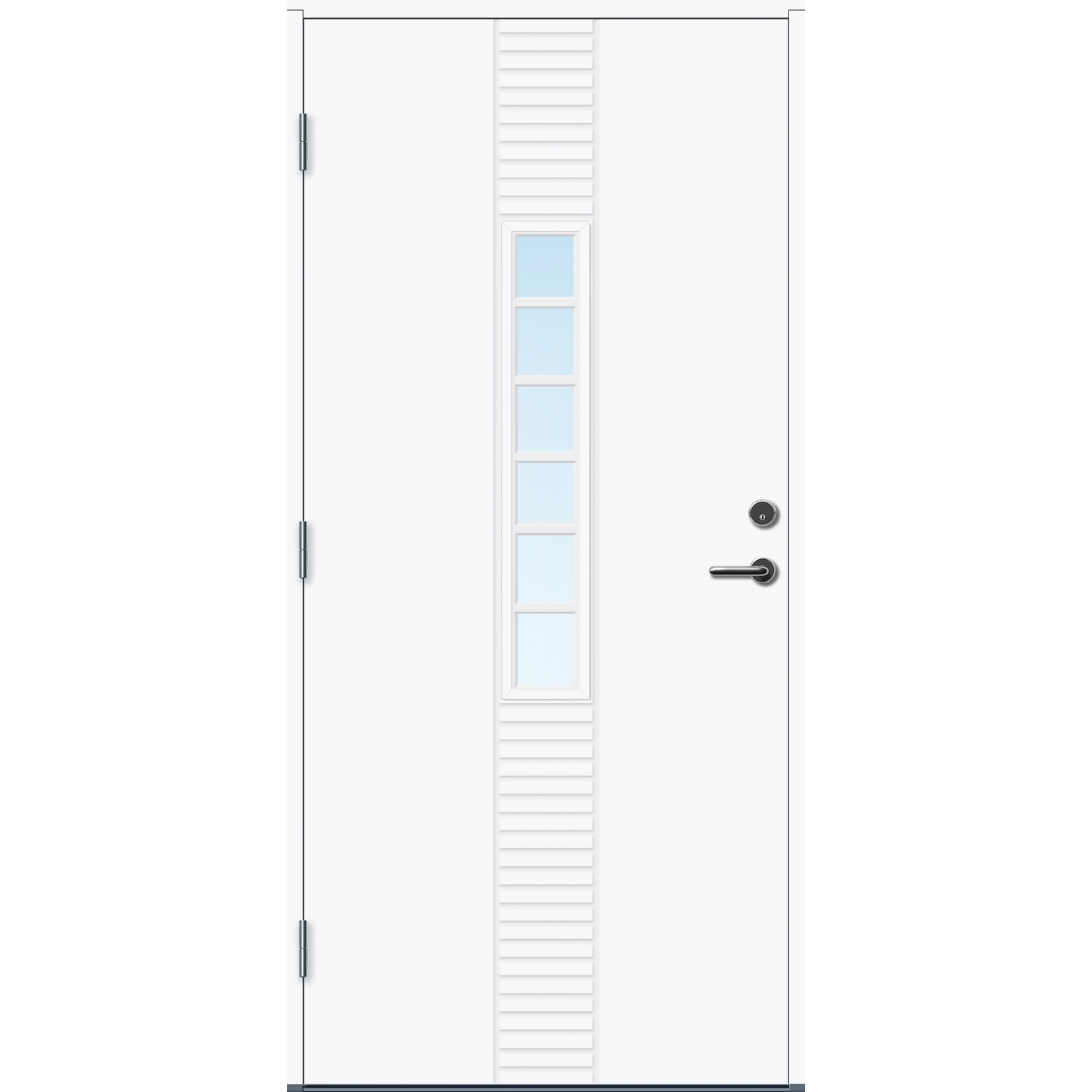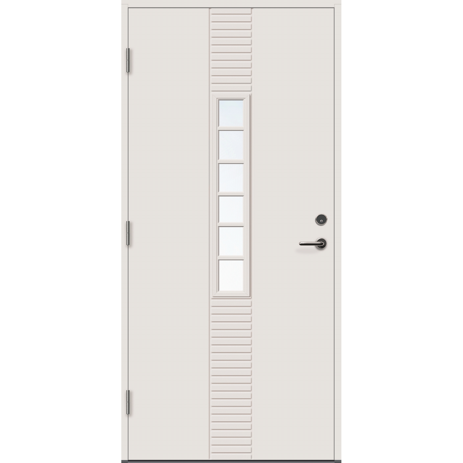 Standard ytterdør for ekstremt klima. Døren har en overflate av kompaktlaminat, som gjør de tåler mer fukt enn standard malte ytterdører. Hvis døren står svært værutsatt eller uten takoverbygg er dette vår anbefaling. Dørene har U-verdi fra 0,77 – 1,0, med 2-lags energisparende isolerglass. Pakningen er festet på dørbladet for å forhindre unødig slitasje.