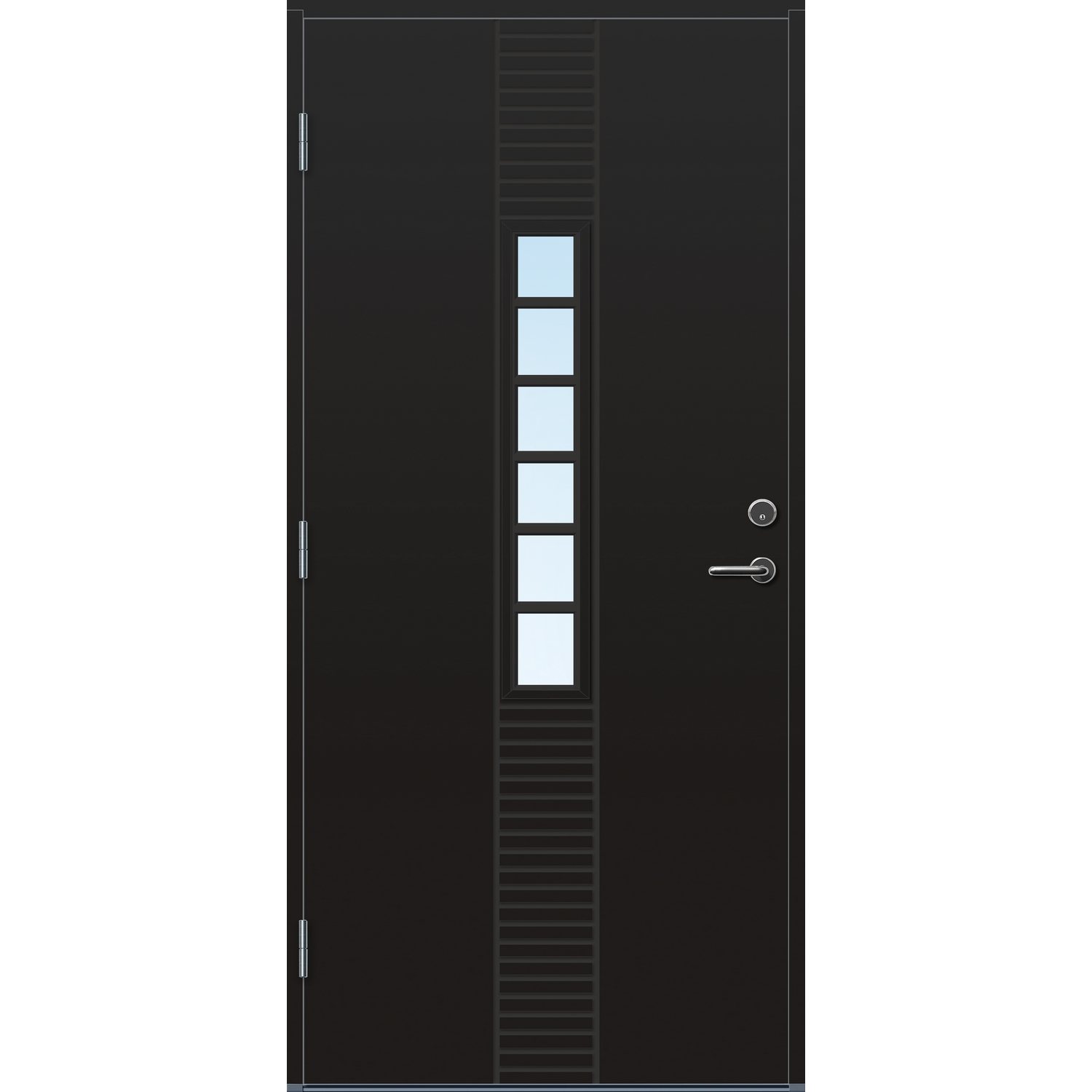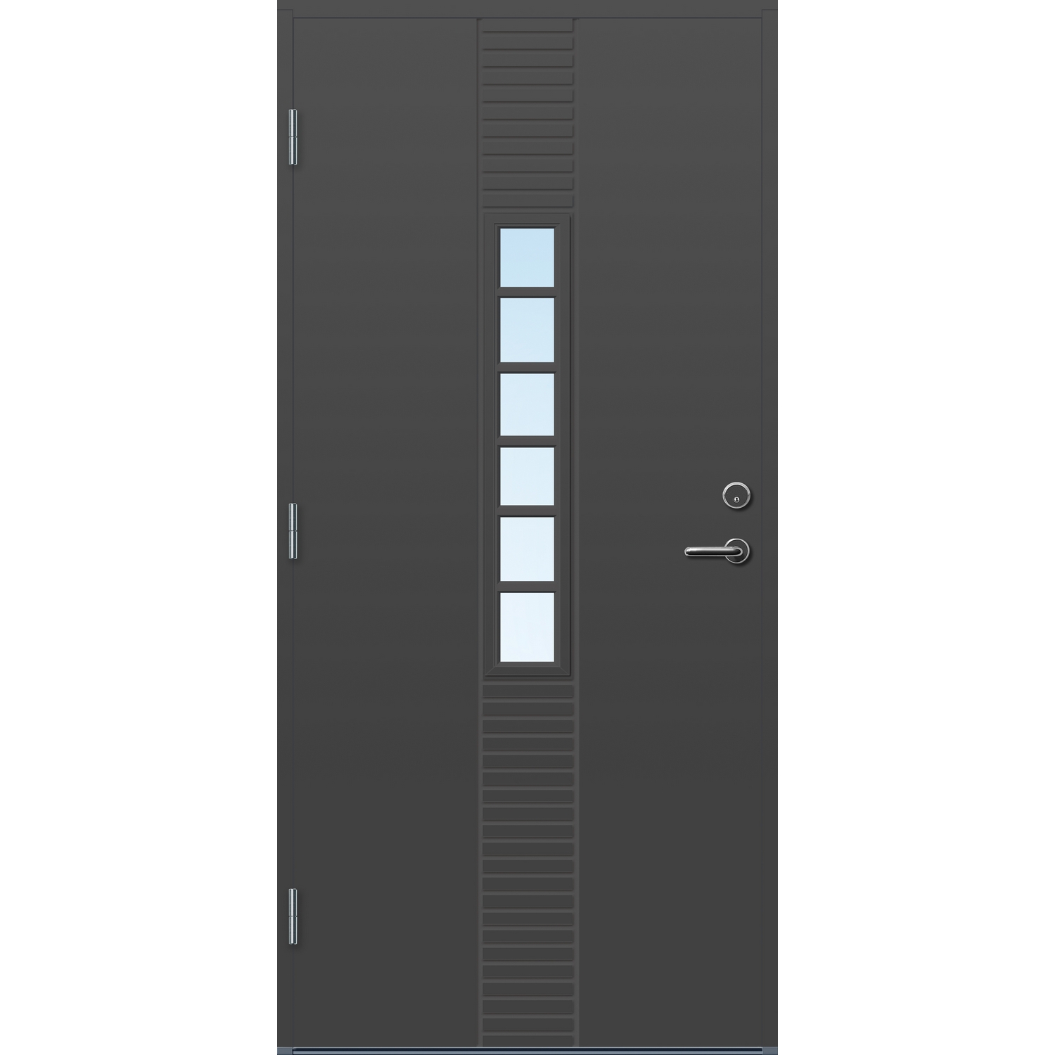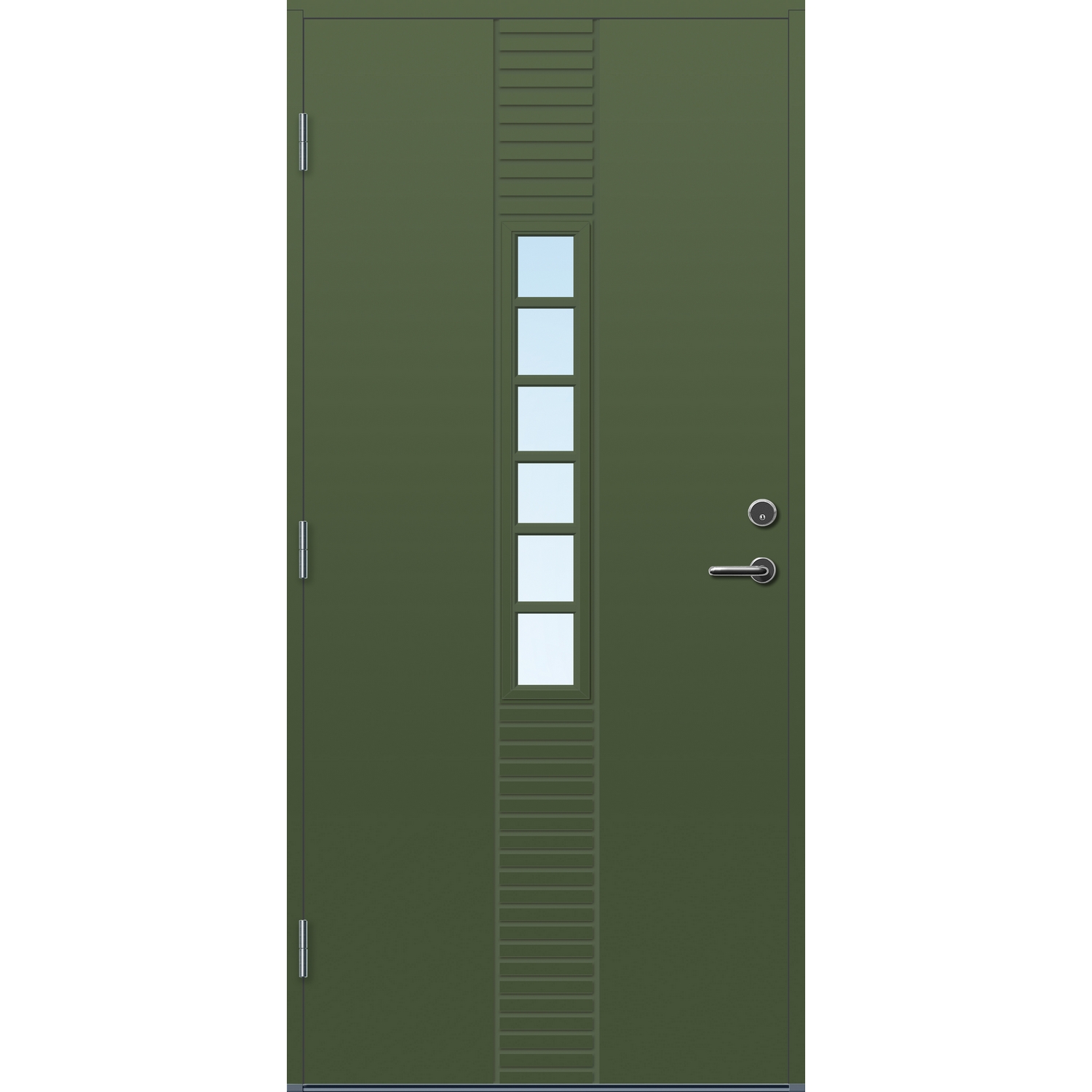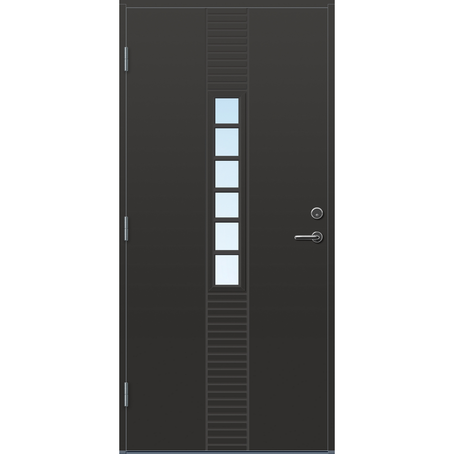 Standard ytterdør for ekstremt klima. Døren har en overflate av kompaktlaminat, som gjør de tåler mer fukt enn standard malte ytterdører. Hvis døren står svært værutsatt eller uten takoverbygg er dette vår anbefaling. Dørene har U-verdi fra 0,77 – 1,0, med 2-lags energisparende isolerglass. Pakningen er festet på dørbladet for å forhindre unødig slitasje.