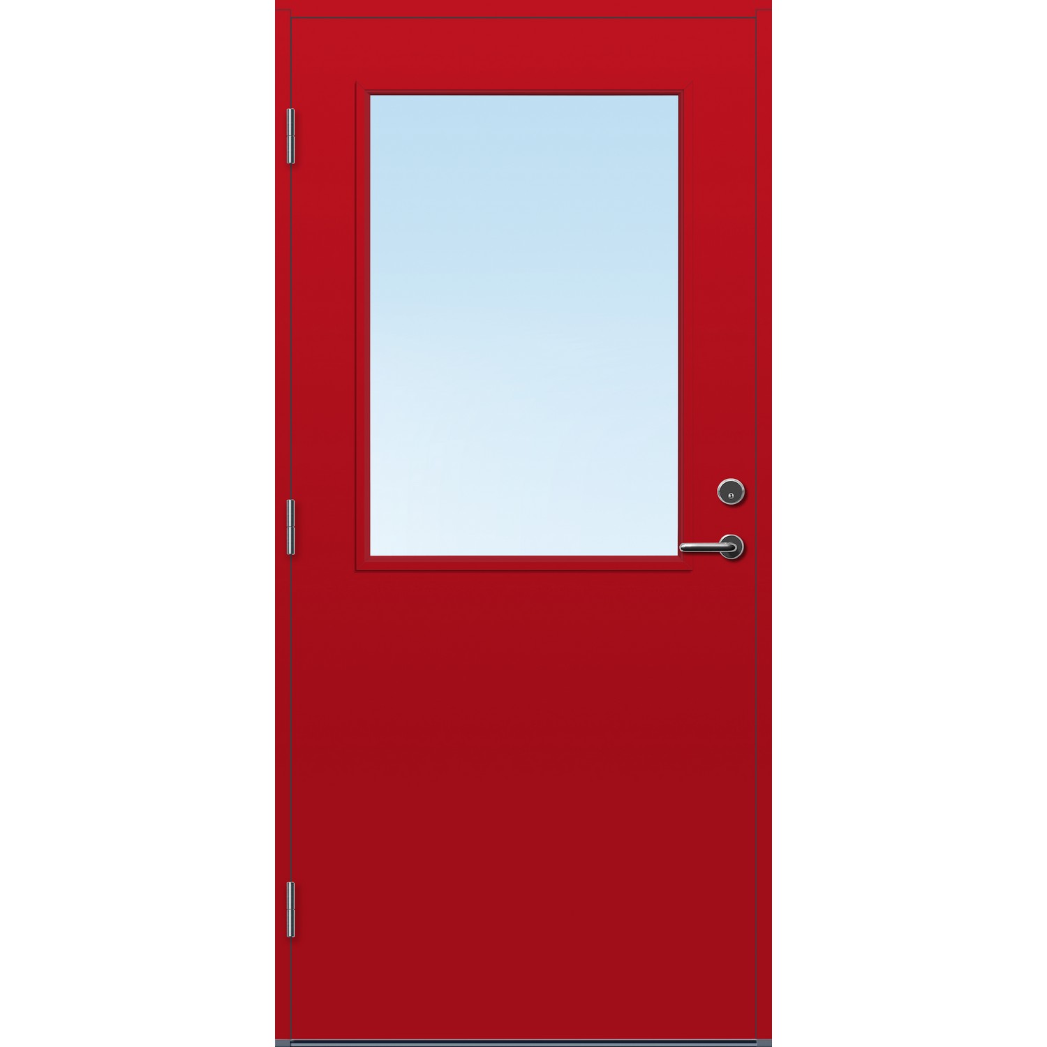 Ytterdører fra Bygg1 med glatt eller sporfrest utside. Dørene har en bladkonstruksjon av furu ramtre med 54 mm freonfritt isolasjonsmateriale. På begge sider er det limt 0,4 millimeter aluminium og 4 millimeter HDF. Både dør og karm er grunnet med 2 strøk 2-komponent syreherdet grunning og 1 strøk vannbasert toppstrøk. Toppstrøk på andre farger enn hvit er også 2-komponent.