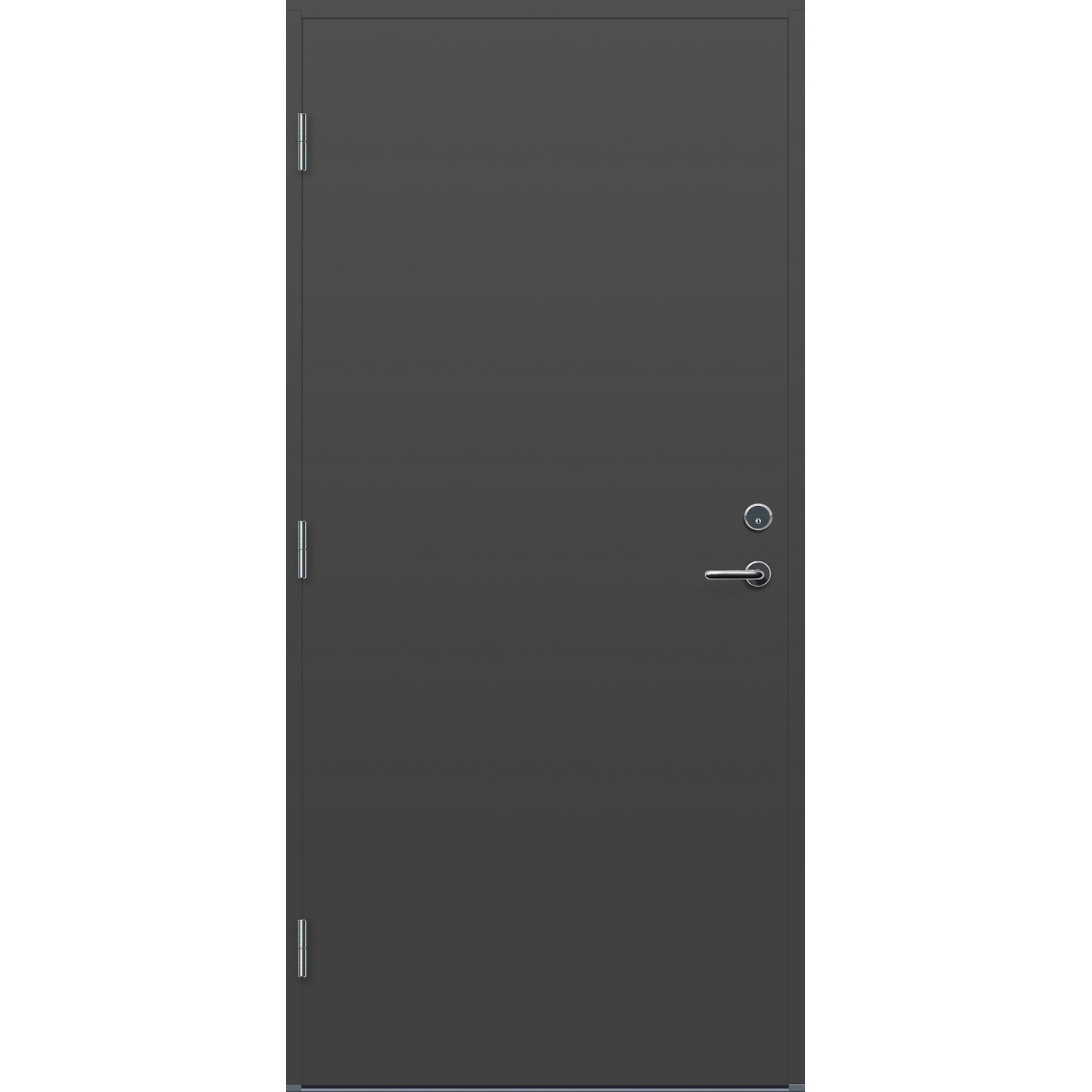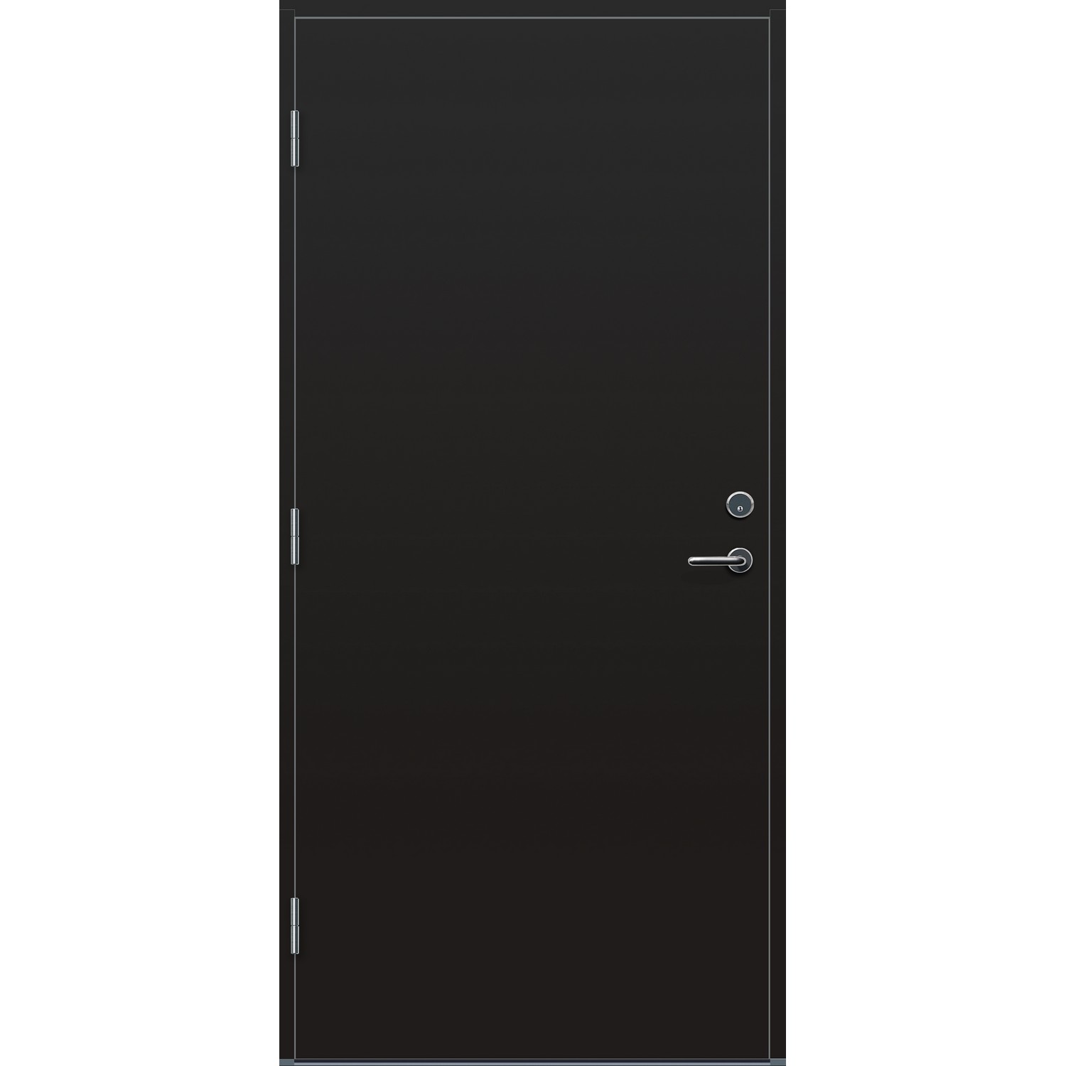 Ytterdør med tidløs slett innside og utside med svært god isolasjonsevne i høy kvalitet. Med fire strøk maling på utsatte steder er døren behandlet for å tåle vårt nordiske klima. Laminert ramtre av furu og overflate av HDF. Kvistfri furukarm 44x105mm med terskel av eik og aluminium. Forsikringsgodkjent låssystem og tre hengsler. Standard fargekode er NCS S 0502-Y, andre farger på bestilling. U-verdi 0,67.