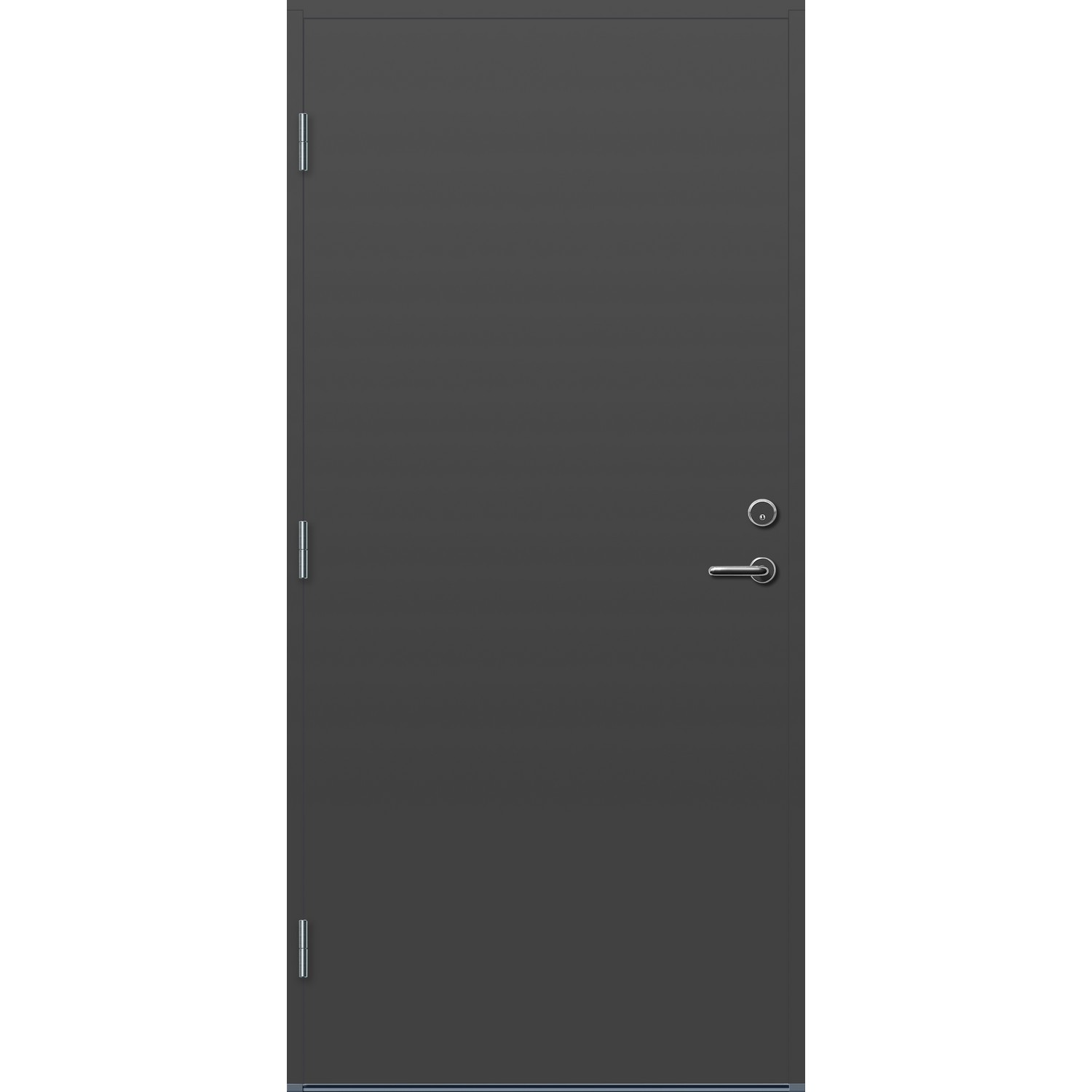 Ytterdører fra Bygg1 med glatt eller sporfrest utside. Dørene har en bladkonstruksjon av furu ramtre med 54 mm freonfritt isolasjonsmateriale. På begge sider er det limt 0,4 millimeter aluminium og 4 millimeter HDF. Både dør og karm er grunnet med 2 strøk 2-komponent syreherdet grunning og 1 strøk vannbasert toppstrøk. Toppstrøk på andre farger enn hvit er også 2-komponent.