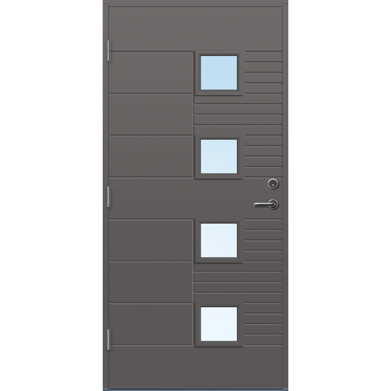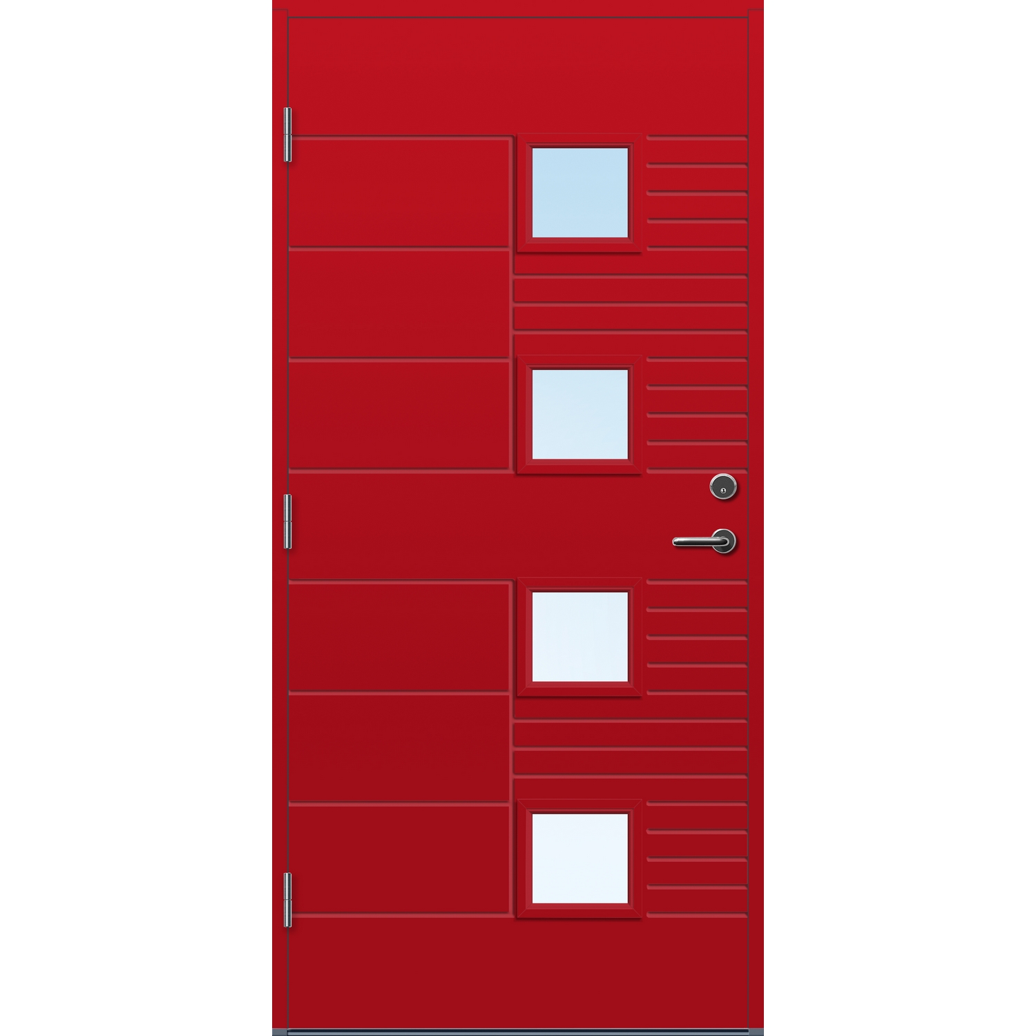 Inngangspartiet og ytterdøren er huset sin velkomst. Personlig smak og arkitektur har betydning når du skal velge dører til ditt hus. Dette er en serie ytterdører fra Bygg1 som er funksjonelle og har høy kvalitet. Med hele fire strøk maling på utsatte steder, er dørene behandlet for å tåle vårt nordiske klima. Dørene har U-verdi fra 0,77 – 1,4, med 2-lags energisparende isolerglass. Pakningen er festet på dørbladet for å forhindre unødig slitasje.