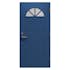 Ytterdør Gilje Halden er en klassisk dør med innfrest dekor inn- og utvendig og et halvmåneformet vindu med katedralglass.