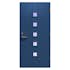 Ytterdør Gilje Zeus er en moderne dør med sporfrest dekor og fem små firktantede glassfelt i klarglass.