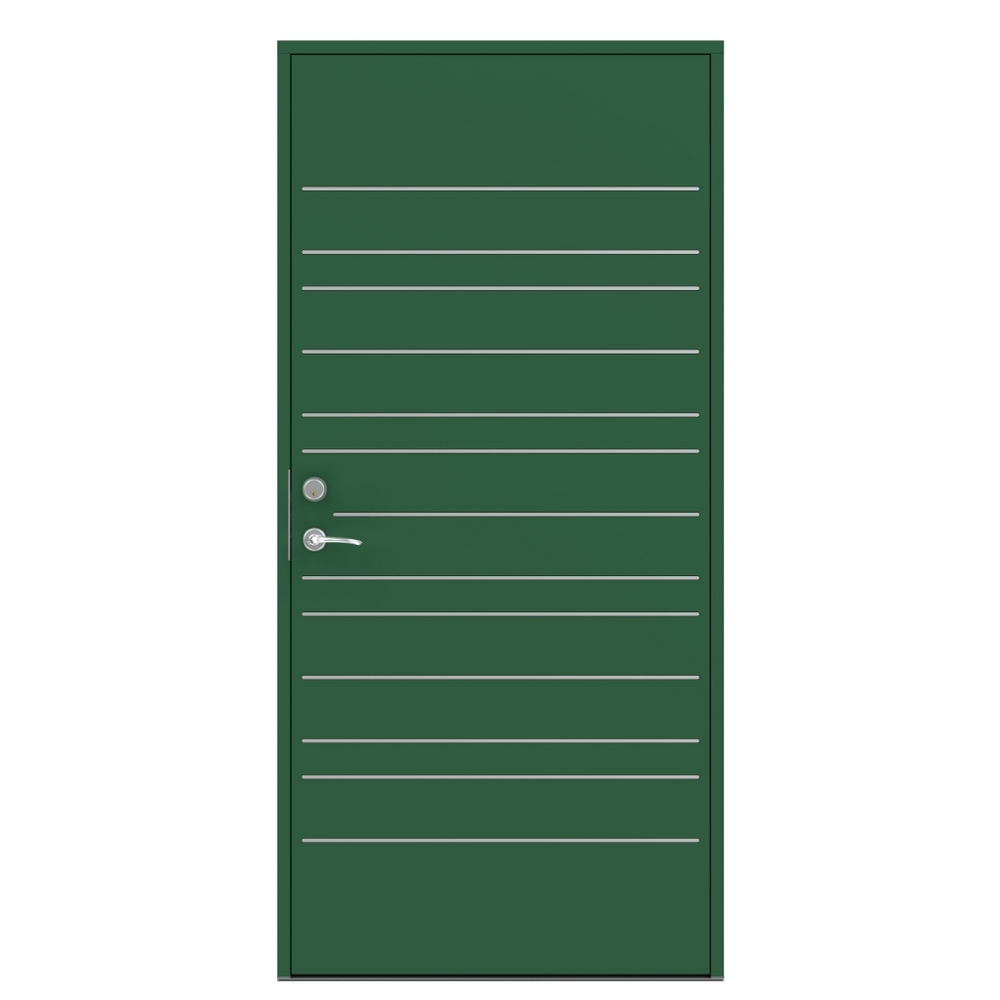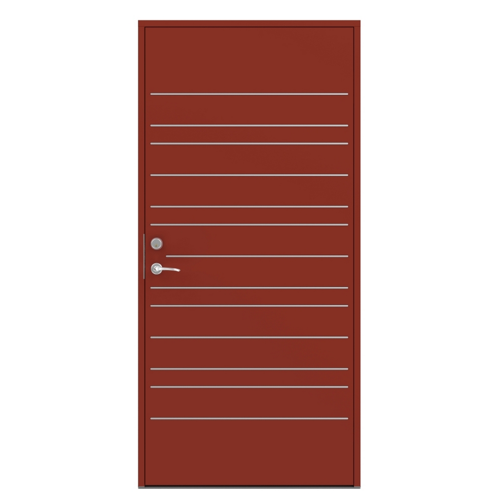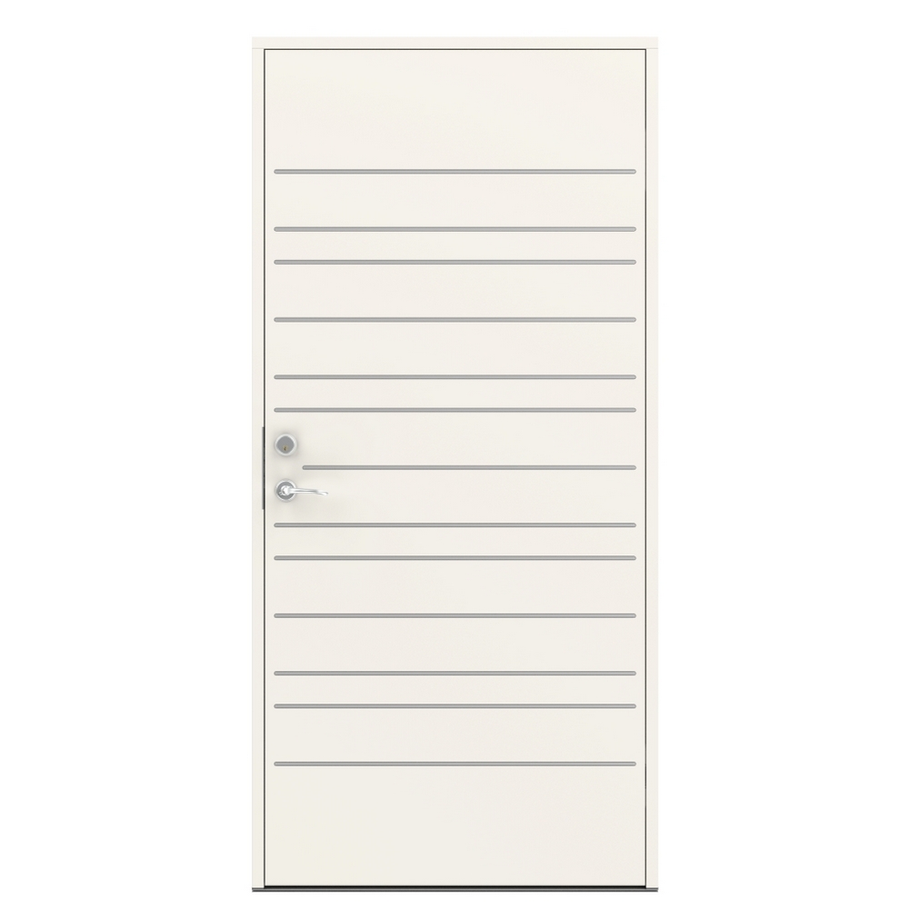 Ytterdør Swedoor Lea er en eksklusiv designytterdør med rene linjer, og er en tett utgave av den populære modellen Leon med glass. Alle ytterdører i Advance-line serien leveres som standard med låskasse Assa 2500, denne gir deg ekstra god sikkerhet. Før avlåsing skal dørvrider løftes oppover, dette krever derfor at du velger en vrider med dobbel returfjær.