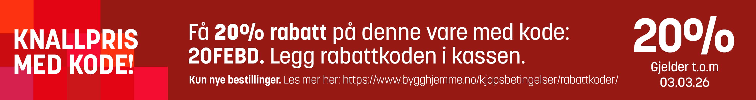20% MED KODE: 20FEBD