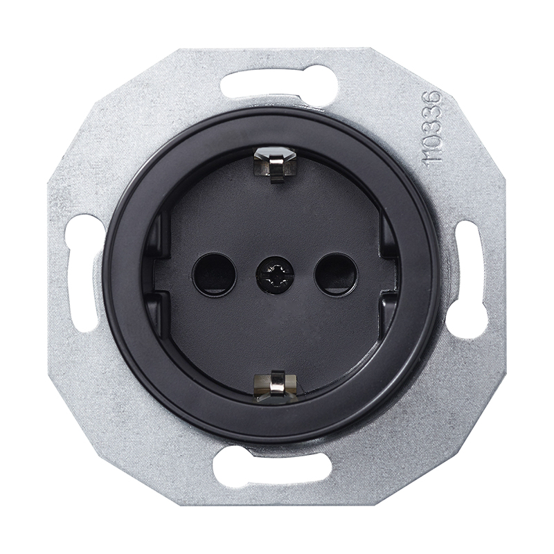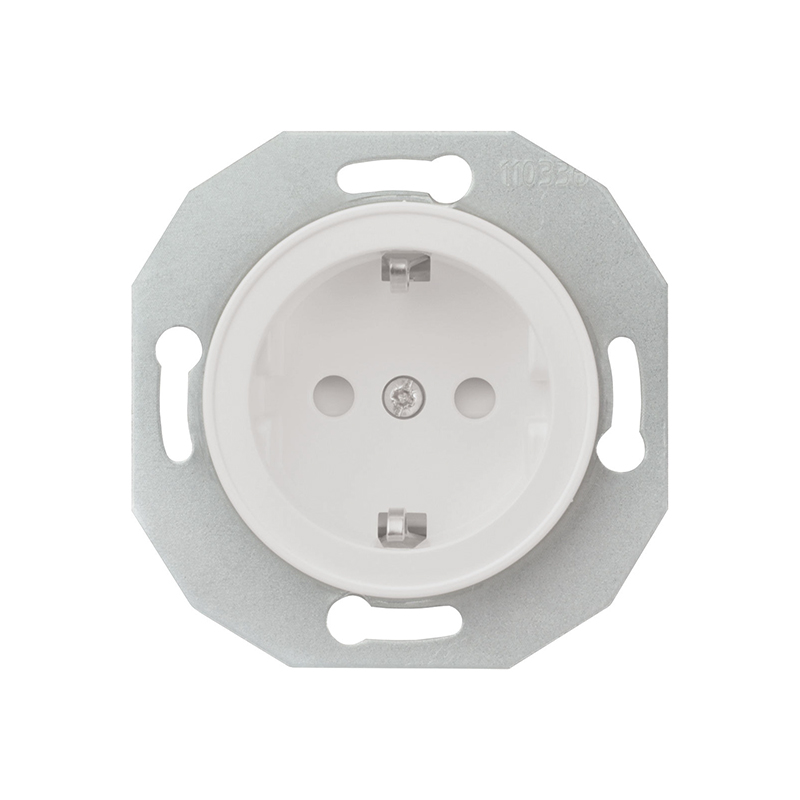 Renova Stikkontakt 1-veis jordet 16A 230V for innfelt IP20 montering i apparatboks inkludert festeklør. For utenpåliggende montering brukes boks E18 311 96/97. Hurtigtilkobling, kompletteres med valgfri Renova ramme.