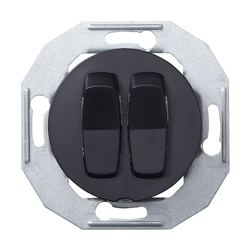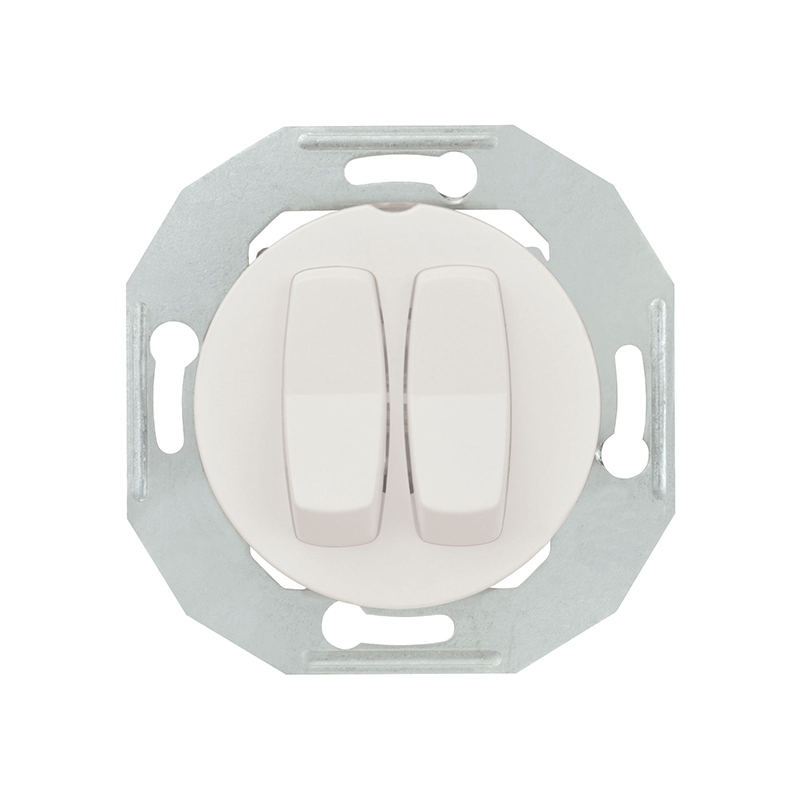 Renova vippebryter 16A for innfelt IP20-montering i apparatboks c/c 60 mm eller utvendig i påbyggingsboks 22 mm. Hurtigtilkobling hvis ikke annet er angitt. Snapfesting av vippe med festplate. Bryterne har to nøytrale overkoblingsklemmer i tillegg til dobbel-trapp (kobling 6+6). Leveres med klør. Kompletteres med valgfri Renova-ramme.