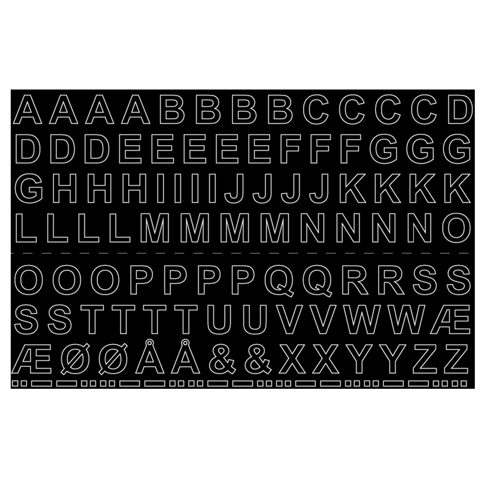 - 2 stk Q, R, U, V, W, Æ, Ø, Å, &, X, Y, Z