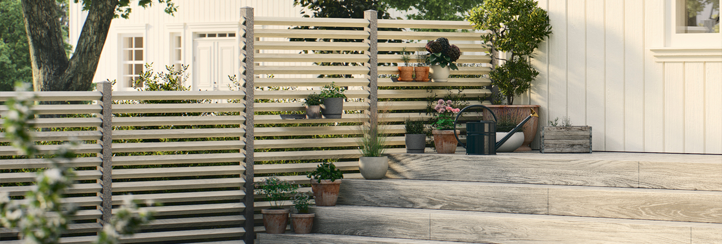 Om det er ville dyr eller bikkja til naboen du vil holde ute, eller om du vil hindre innsyn til terrassen der du ligger og soler deg, har vi det du trenger til innhegning, med både gjerder, skjermer, og alt du trenger av beslag og festekroker for å få dem på plass.