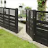 De små hullene i gjerdet gir en følelse av åpenhet, samtidig som kombinasjonen av smale lameller og bredere stolper skaper et mer privat rom hvor man likevel kan følge med på aktiviteter på den andre siden.