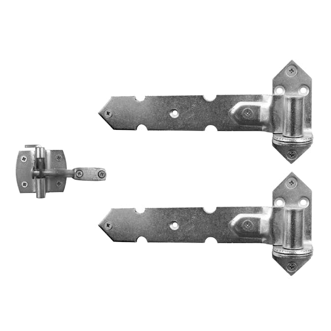 Komplett sett med 2 hengsler og låsbeslag for port.