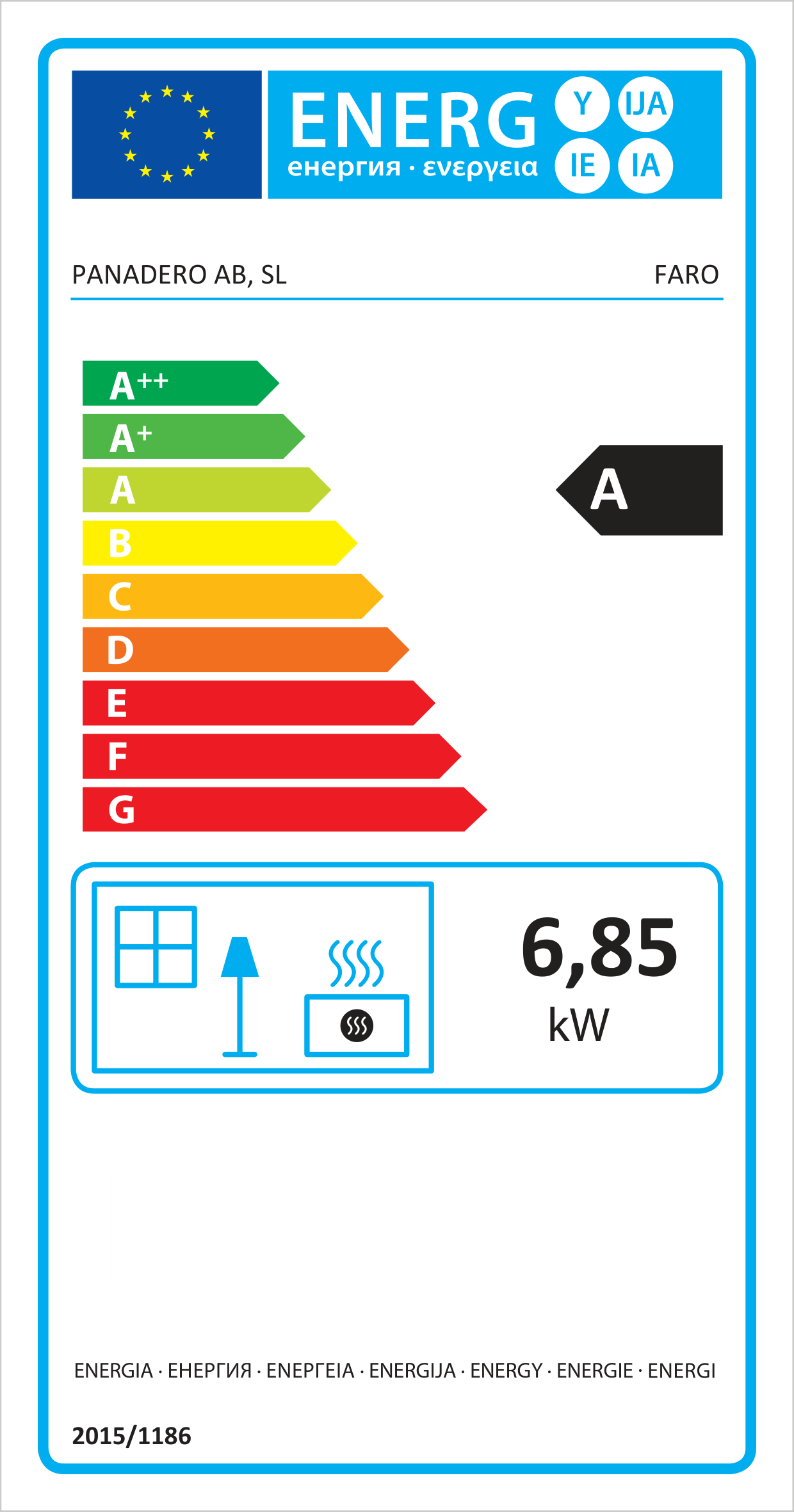 Faro Panadero kamin er tilpasset for hjørner. Designet er ideell for alle typer rom, 826x675x445 mm. Den har en varmevolum på 210 m³ og en varmeeffekt på 6,85 KW. Den tilbyr muligheten til å lagre vedkubber opp til 60 cm i sitt vedlager, noe som tilfører funksjonalitet med et snev av eleganse. Støpejernsgrill og dør. Rent glassystem for maksimal innsyn i peisen og flammene. Trippelforbrenning og dobbel stålkropp. Et klart innsyn i peisen og flammene garanteres takket være Panaderos' rene glassystem.