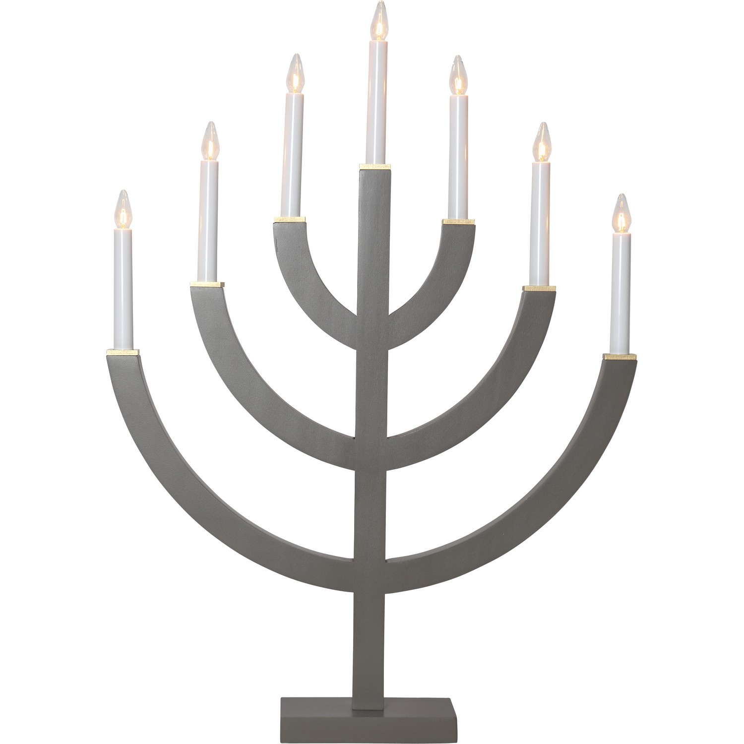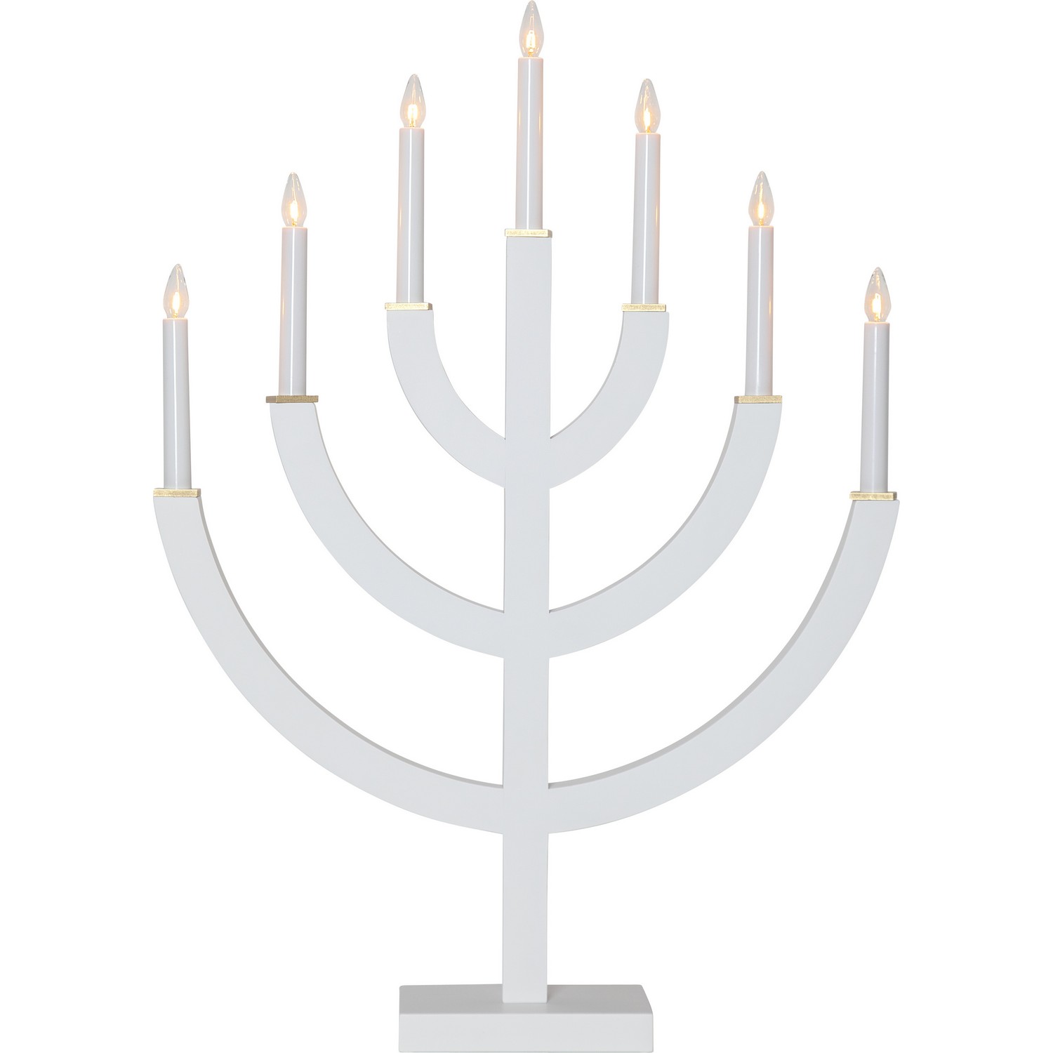 Sjarmerende adventslysestake laget av tre med malte trebrikker i gull som dekorasjon. Lysestaken er både moderne og tradisjonell, og passer utmerket i et vindu eller på en kommode. Julen blir noe helt spesielt med den stemningsfulle Anno som dekorasjon.