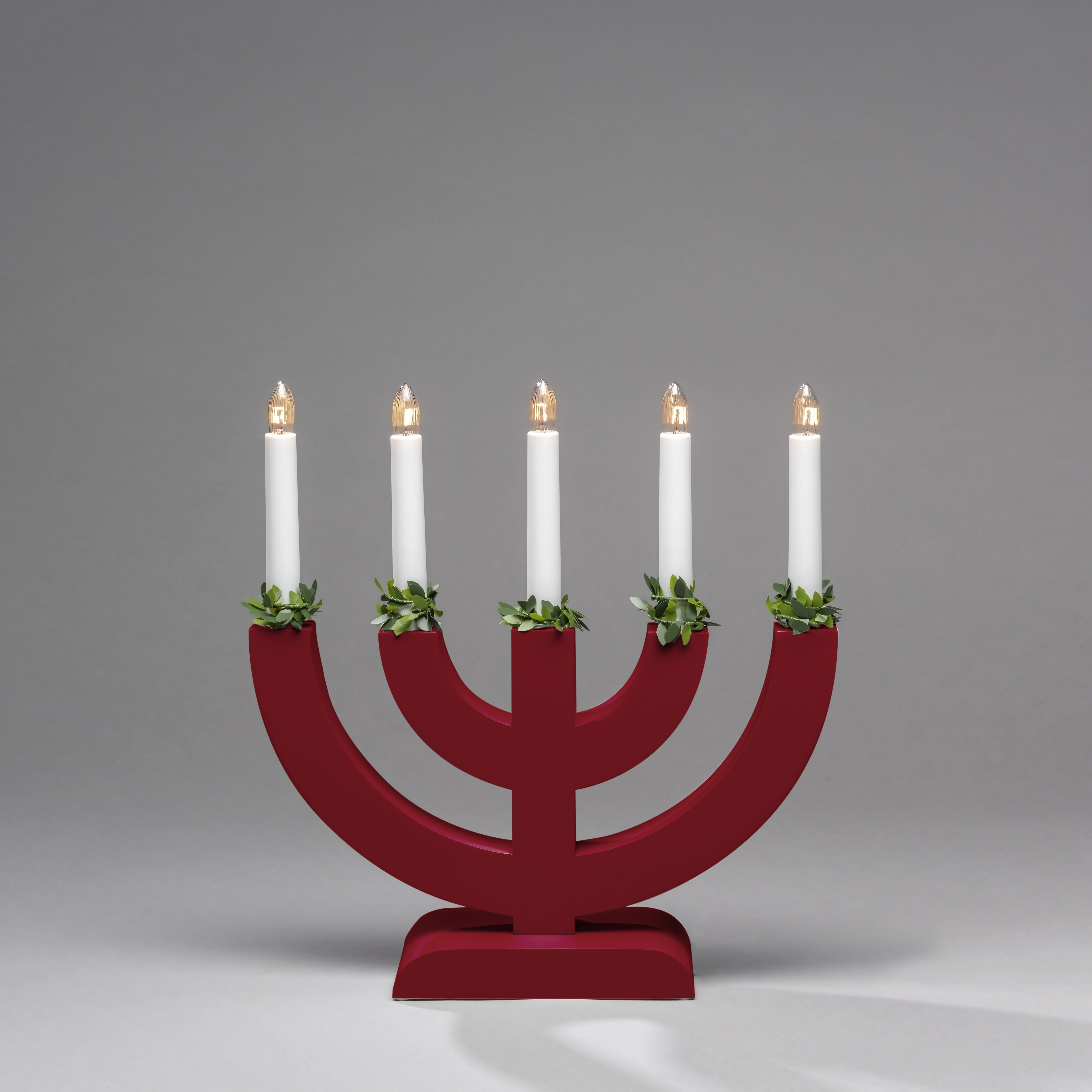 Lysestake fra Gnosjö Konstsmide med 5 lys og grønne dekorasjoner.
