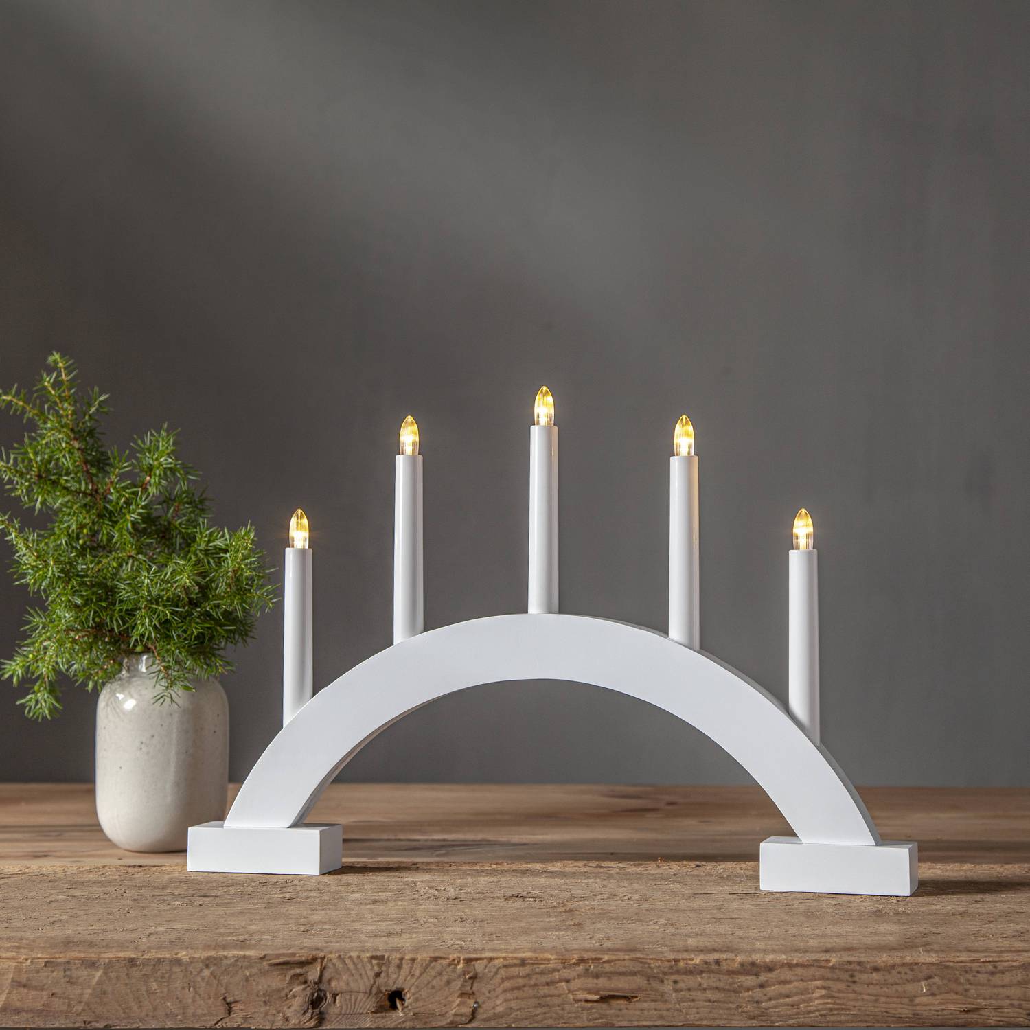 Batteridrevet, buet adventsstake laget av tre. Lysestaken er liten og nett, og derfor enkel å plassere både i vinduet og på en skjenk. LED-lysene lyser vakkert og skaper julestemning i hjemmet. Dette produktet er FSC®-merket.