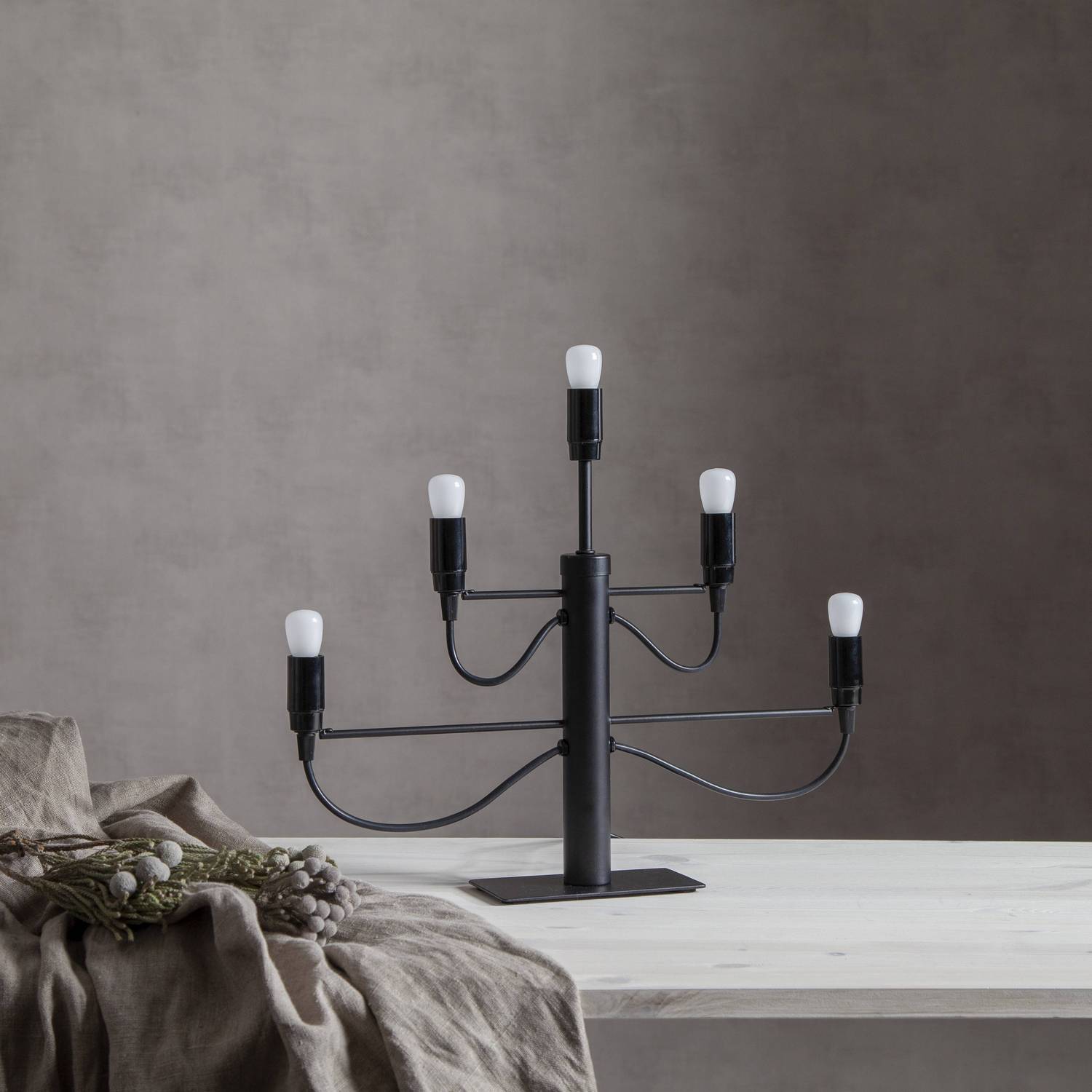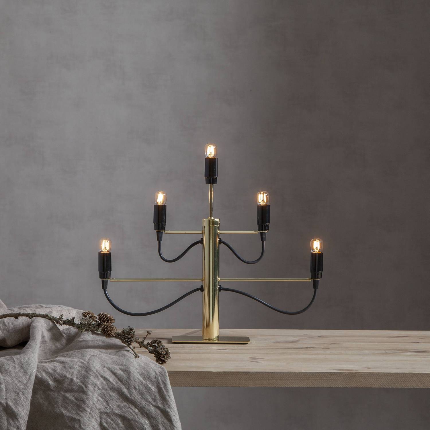 Stilren og moderne metall lysestake i messingfarge, med plass for 5 lyskilder. Gir hjemmet ditt en moderne touch.