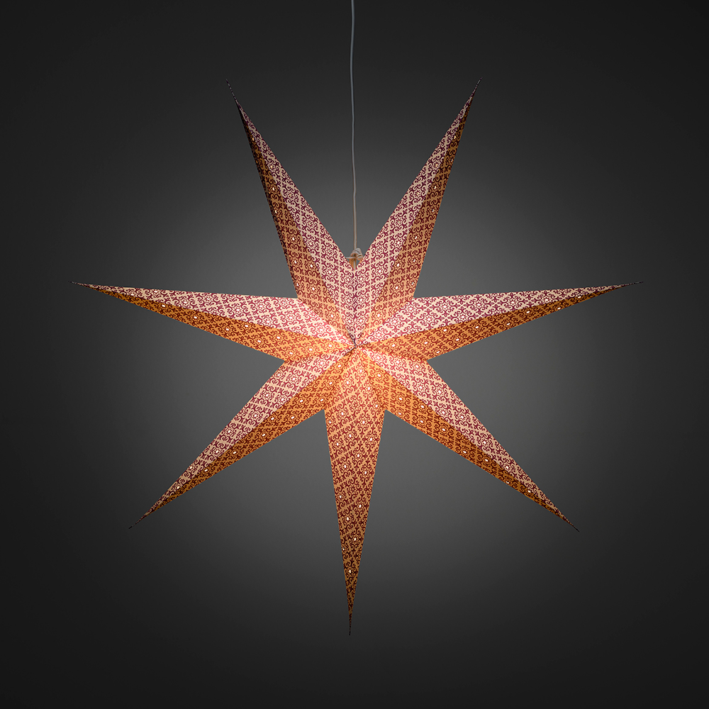 Hengende papirstjerne fra Gnosjö Konstsmide, måler 78x78cm. Inkluderer ledningssett og 5 m tilkoblingsledning.