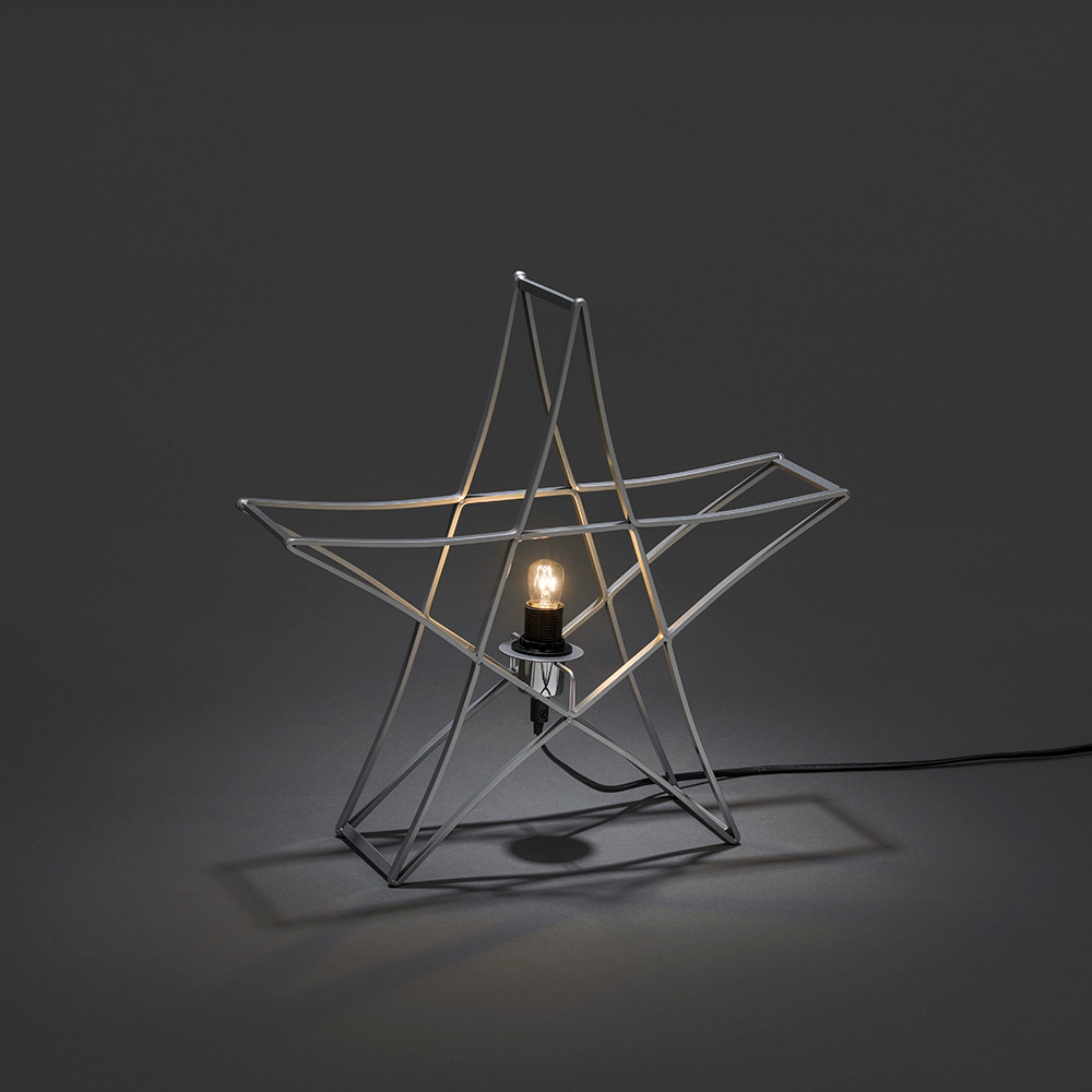 Stående metallstjerne fra Gnosjö Konstsmide, måler 40x40cm. Tilkoblingskabelen er en 5 m lang E14 sort kabel.