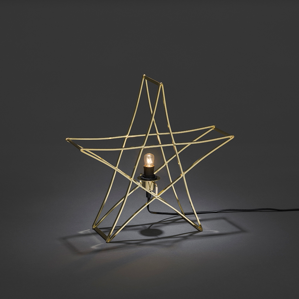Stående metallstjerne fra Gnosjö Konstsmide, måler 40x40cm. Tilkoblingskabelen er en 5 m lang E14 sort kabel.