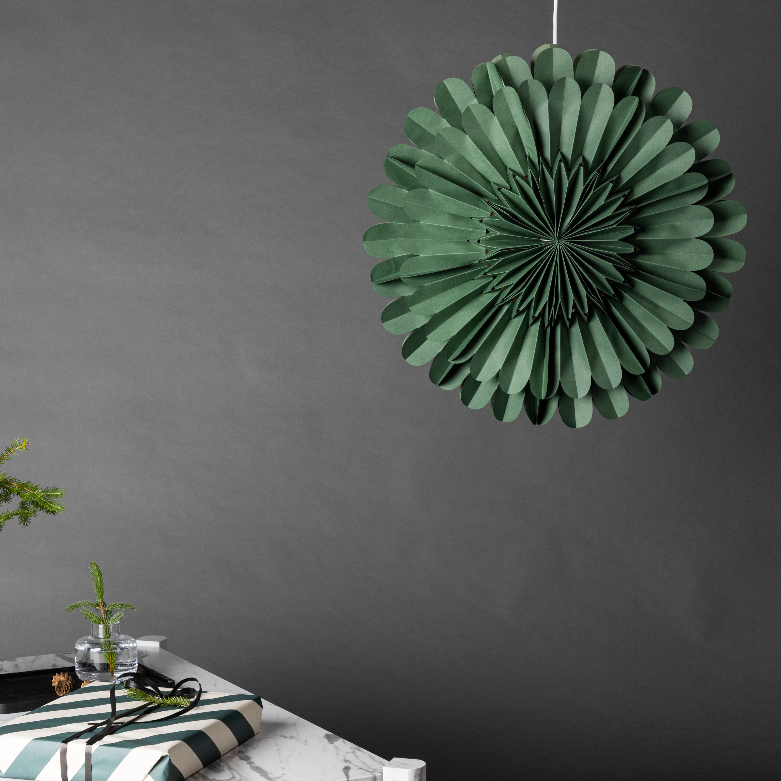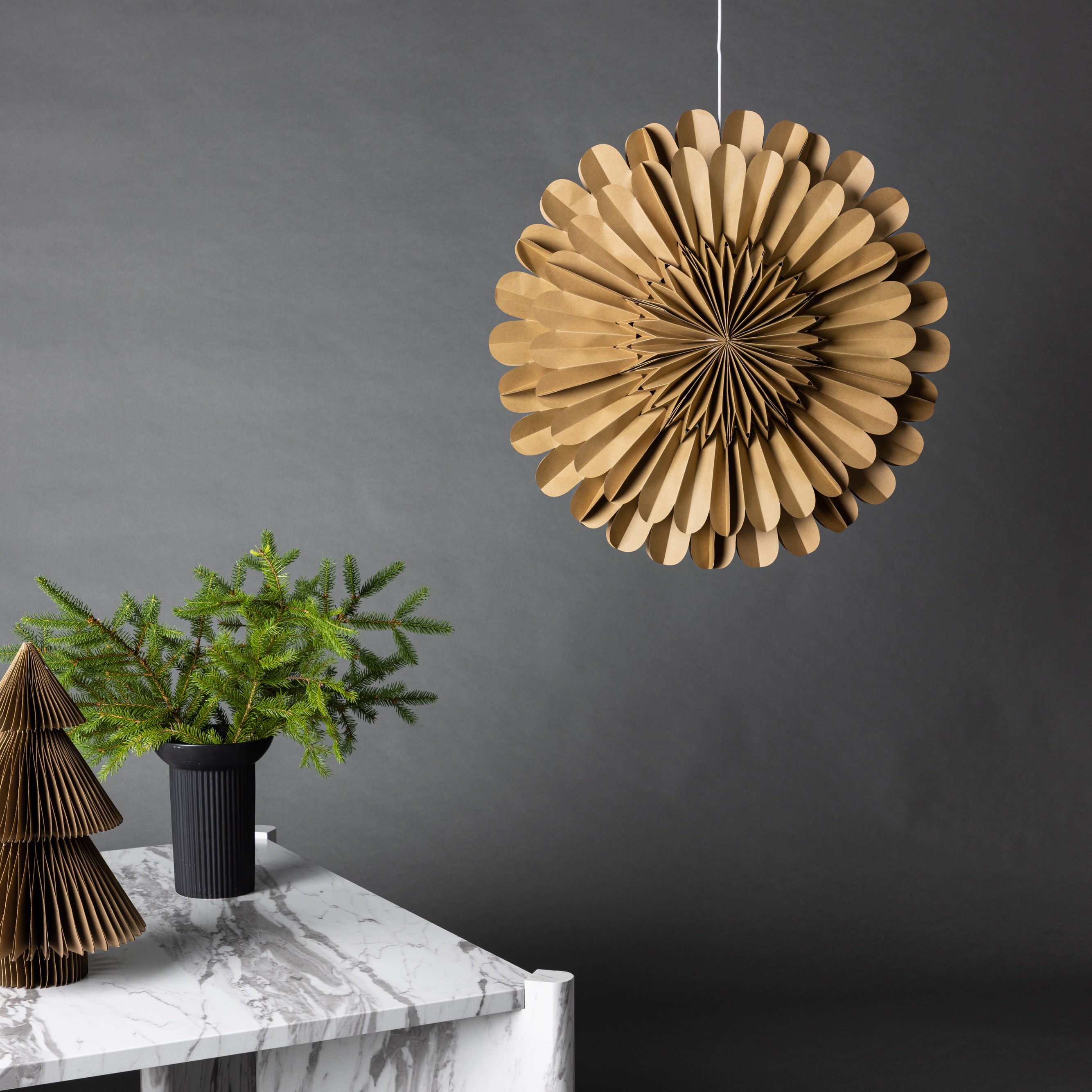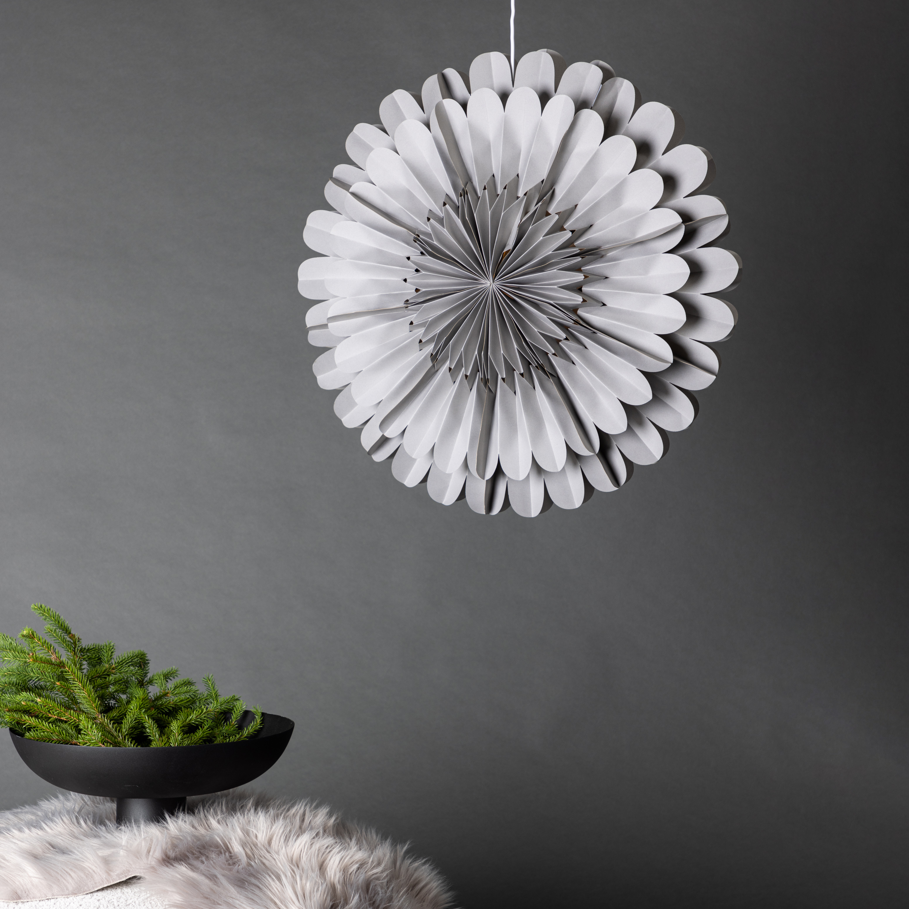 Vakker adventsstjerne som henger i en hvit ledning. Uansett om det er under høstens mørke dager eller under julens høytidelige stemning, vil papirstjernen Järvsön skape en fantastisk atmosfære.