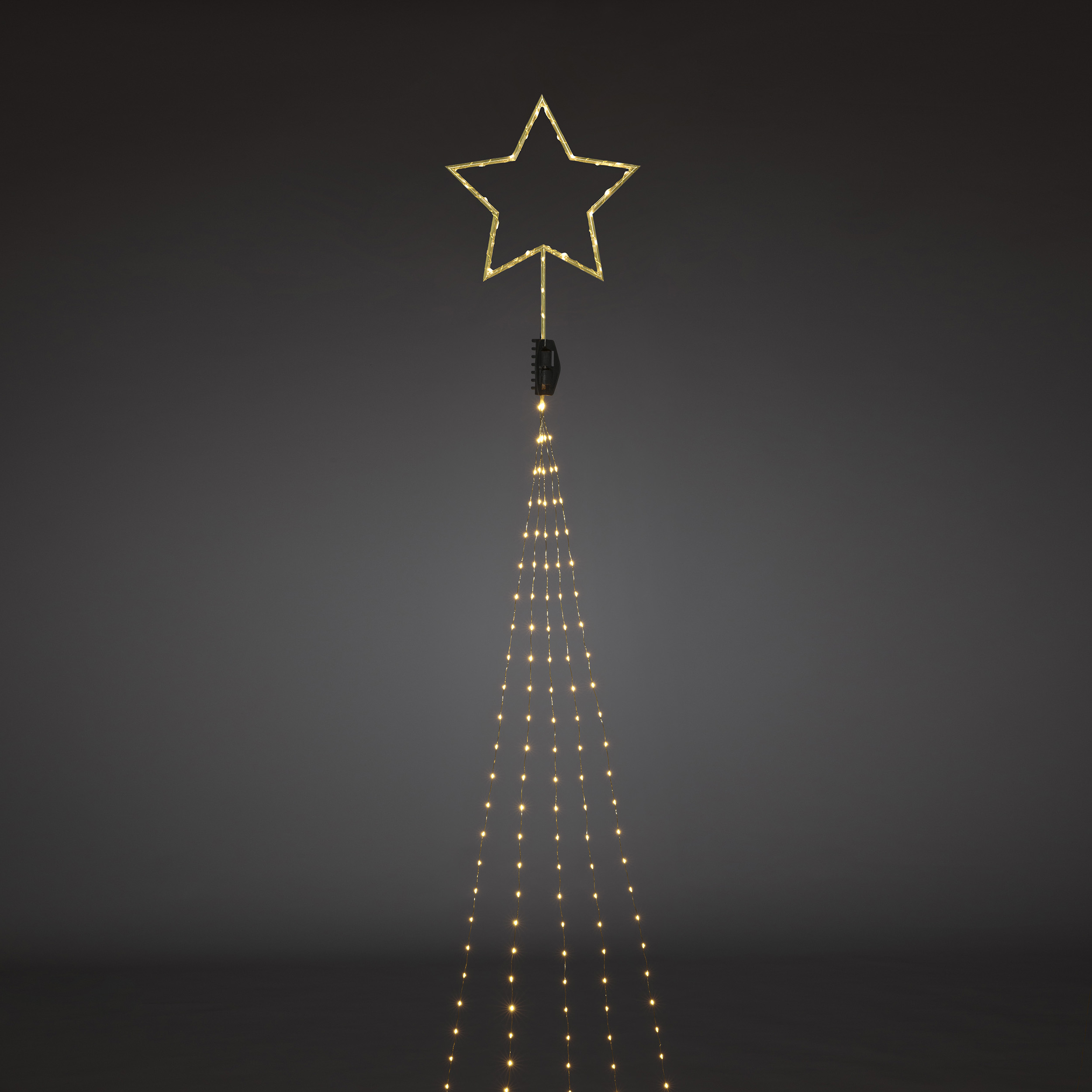 Juletrelys fra Gnosjö Konstsmide, komplett med toppstjerne. Belysningen består av fem meter kjede med 274 amberfargede LED-lys.