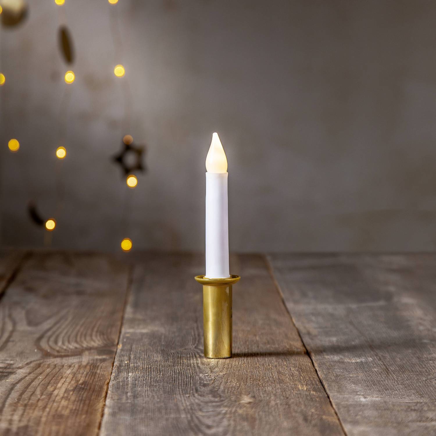 Vakkert Lucialys som er perfekt for Luci-feiringen! Lyset har en gyllen bunn og en varm gul flamme. Lucialyset er 17cm høyt, og drives med 1 AA-batteri.