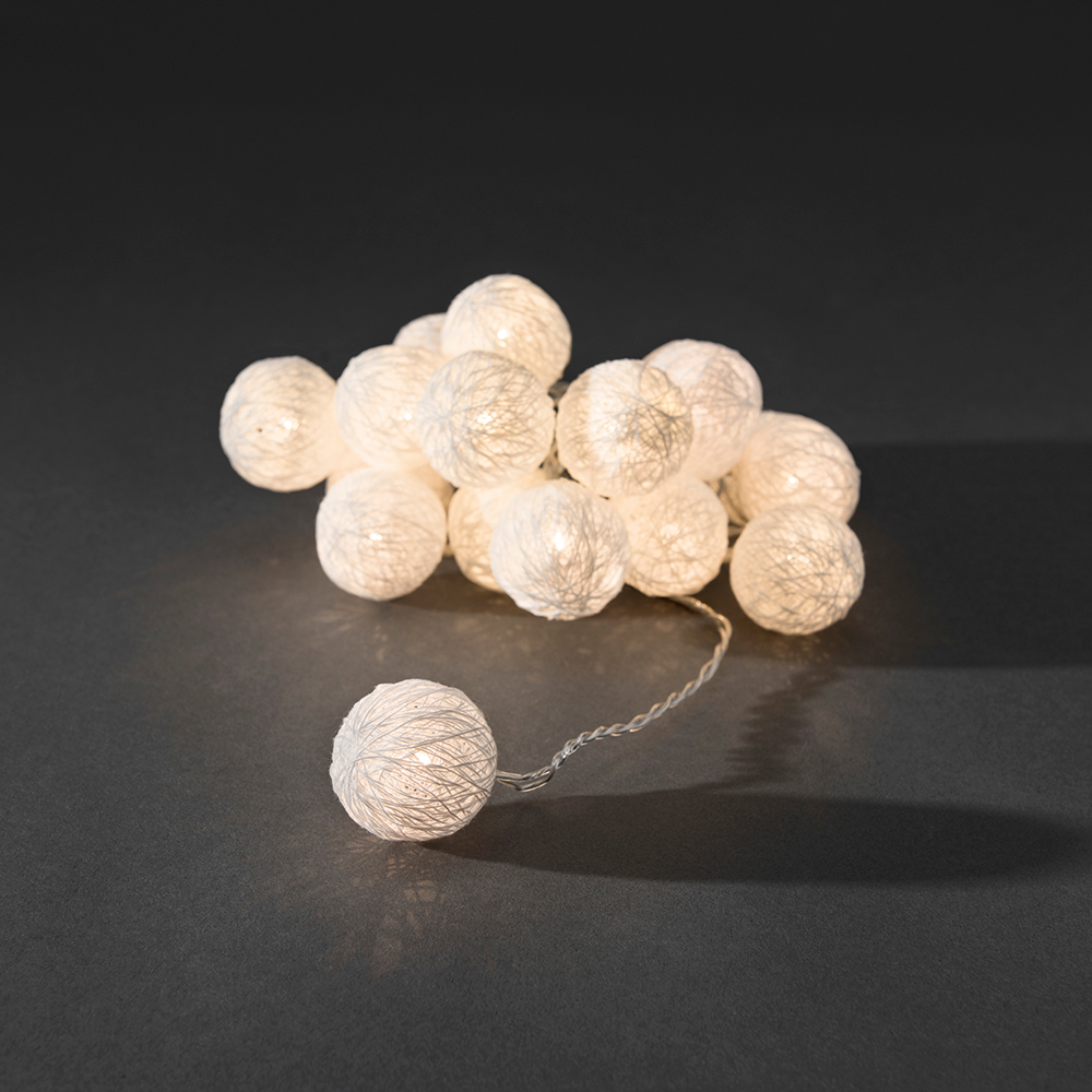 Lyslenken fra Gnosjö Konstsmide med 16 garnballer med LED-belysning. Lenken er 6 m lang og har en 3 m tilkoblingsledning til den første lampen. Ballene er 3,5x3,5 cm.