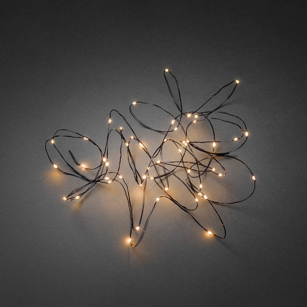 Lyslenke fra Gnosjö Konstsmide med 50 stk mikro-LED. Lenken er 4,9 m lang, hvorav 5 m tilkoblingskabel.