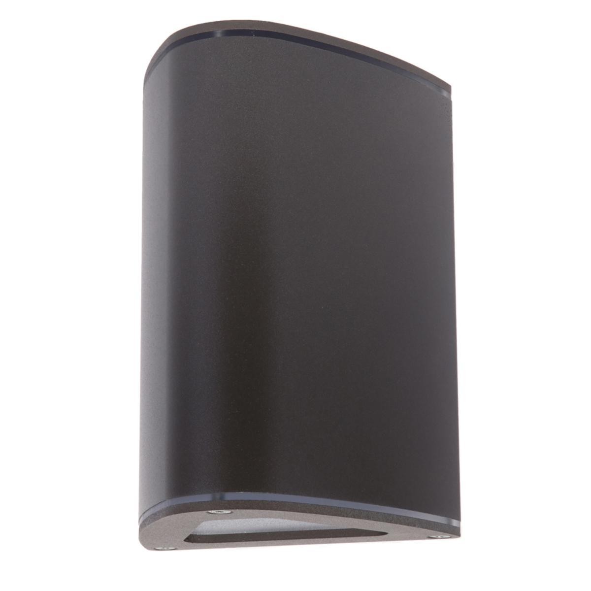 Klimanøytral veggarmatur i sprøytestøpt aluminium med ned- og opplysning. Utstyrt med GU10-sokkel. Armaturen har hurtigkoblingsterminal og doble knockouts for overflatekabel og viderekobling. Egnet for fasader, innganger, loftsganger osv.