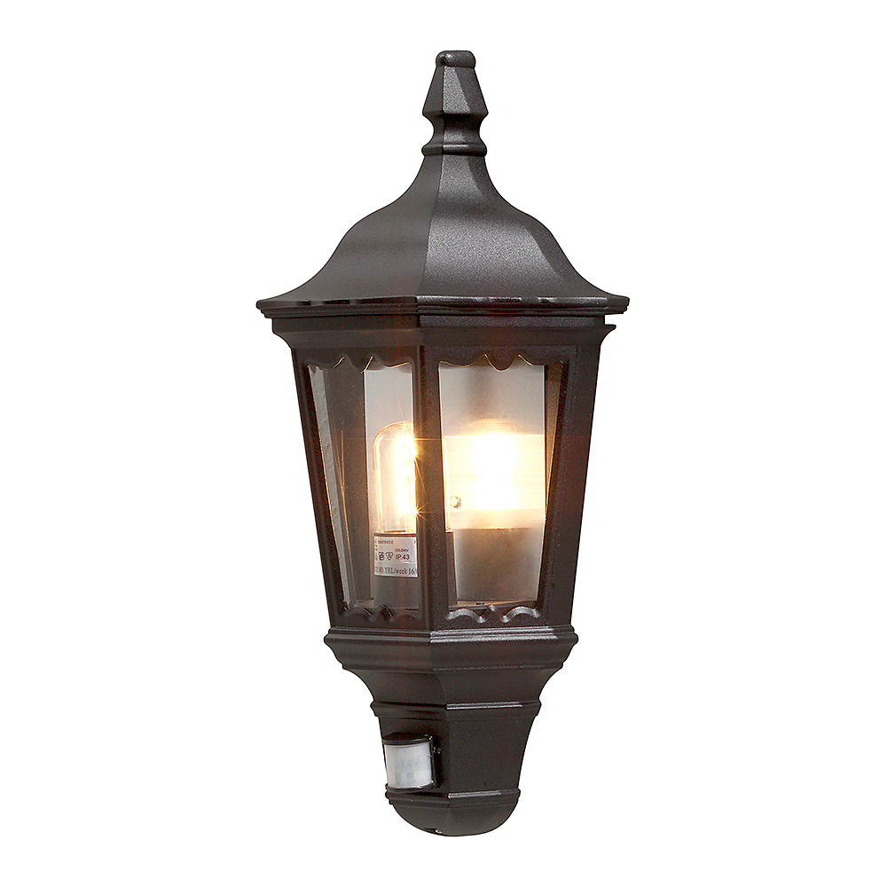 Veggplafond Gnosjö Konstsmide Firenze E27 Bevegelsessensor er en elegant fasadebelysning i form av en klassisk lykt med bevegelsessensor. Den har klart glass og leveres uten lyspære.