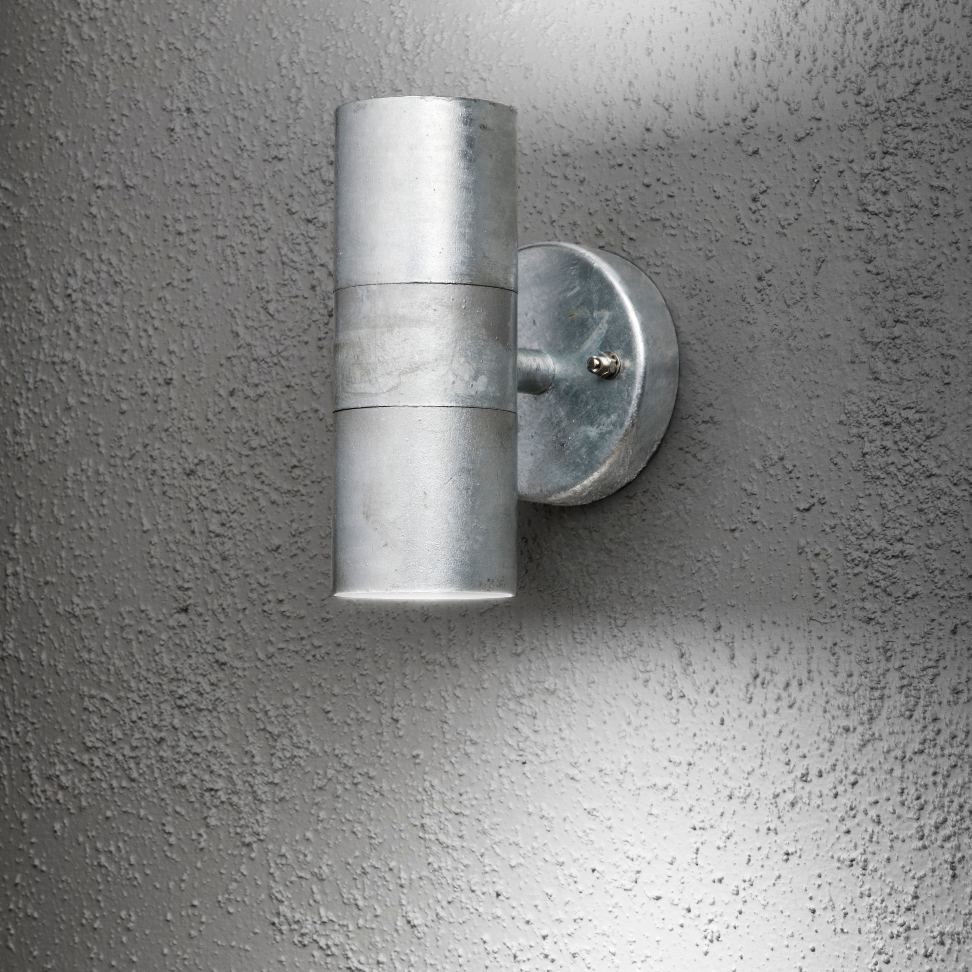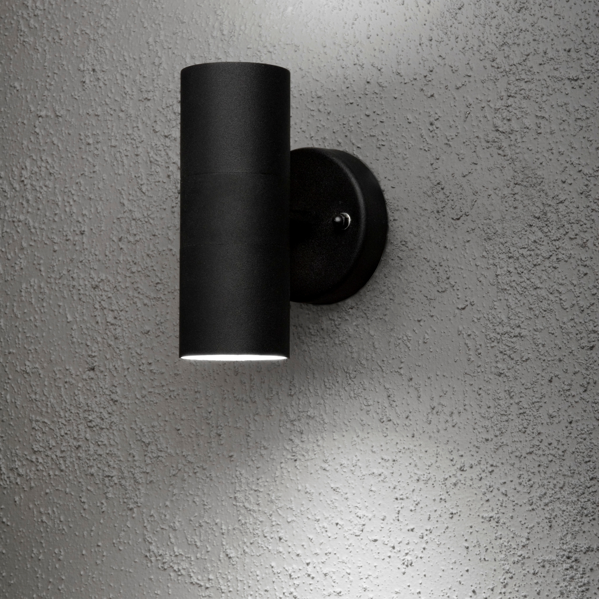 Vegglampe Gnosjö Konstsmide Modena Opp/Ned GU10 er en stilren fasadebelysning som lyser både oppover og nedover, noe som skaper vakre skygger på veggen. Den leveres uten lyspære.