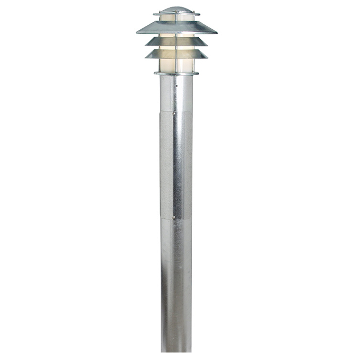 Pollararmatur med roterende symmetrisk lysbilde. Armaturen er utstyrt med LED-enheten Philips Fortimo Disk 800lm. Pollaren har koblingsluke og er tilpasset for direktemontering i betongfundament 108/700. Beregnet for utendørs bruk (IP44) og passer for bruk i både privat og offentlig miljø.