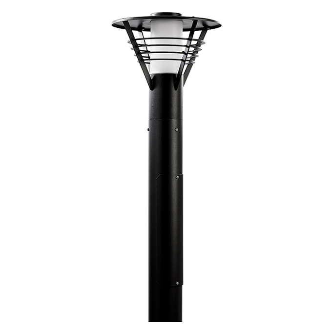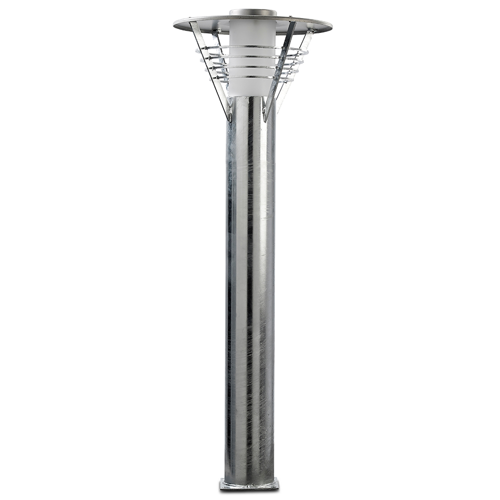 Pollararmatur med roterende symmetrisk lysbilde. Armaturen er utstyrt med LED-enheten Philips Fortimo Disk 800lm, 3000K. Pollaren har koblingsluke og er tilpasset for direkte montering i betongfundament 108/700. Beregnet for utendørs bruk (IP44) og passer for bruk både i privat og offentlig miljø.